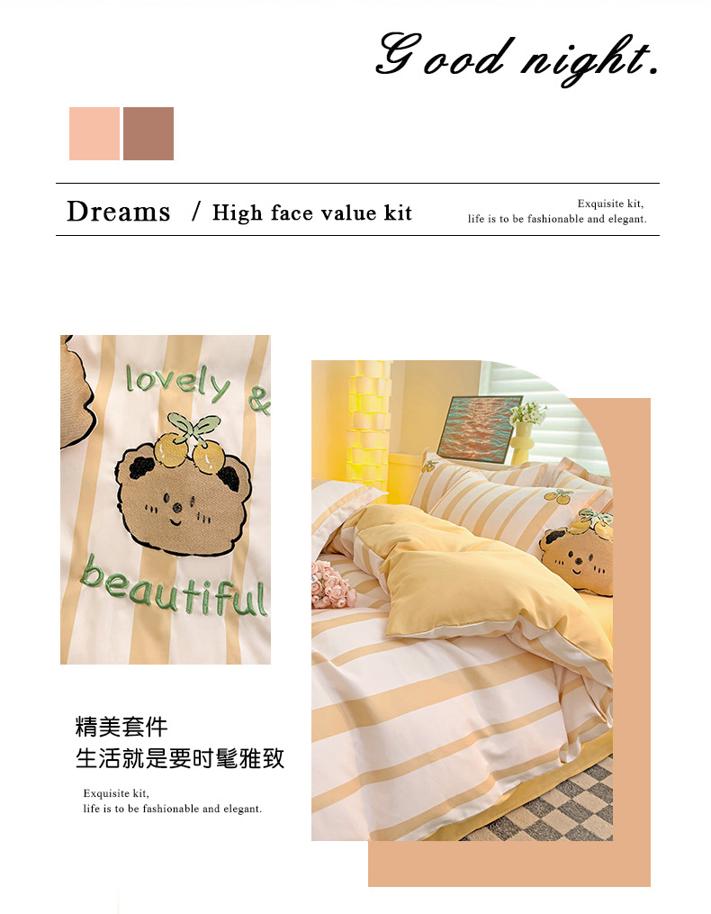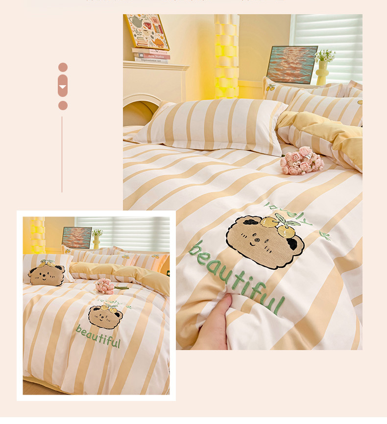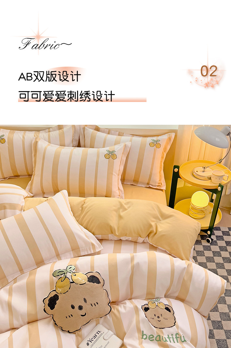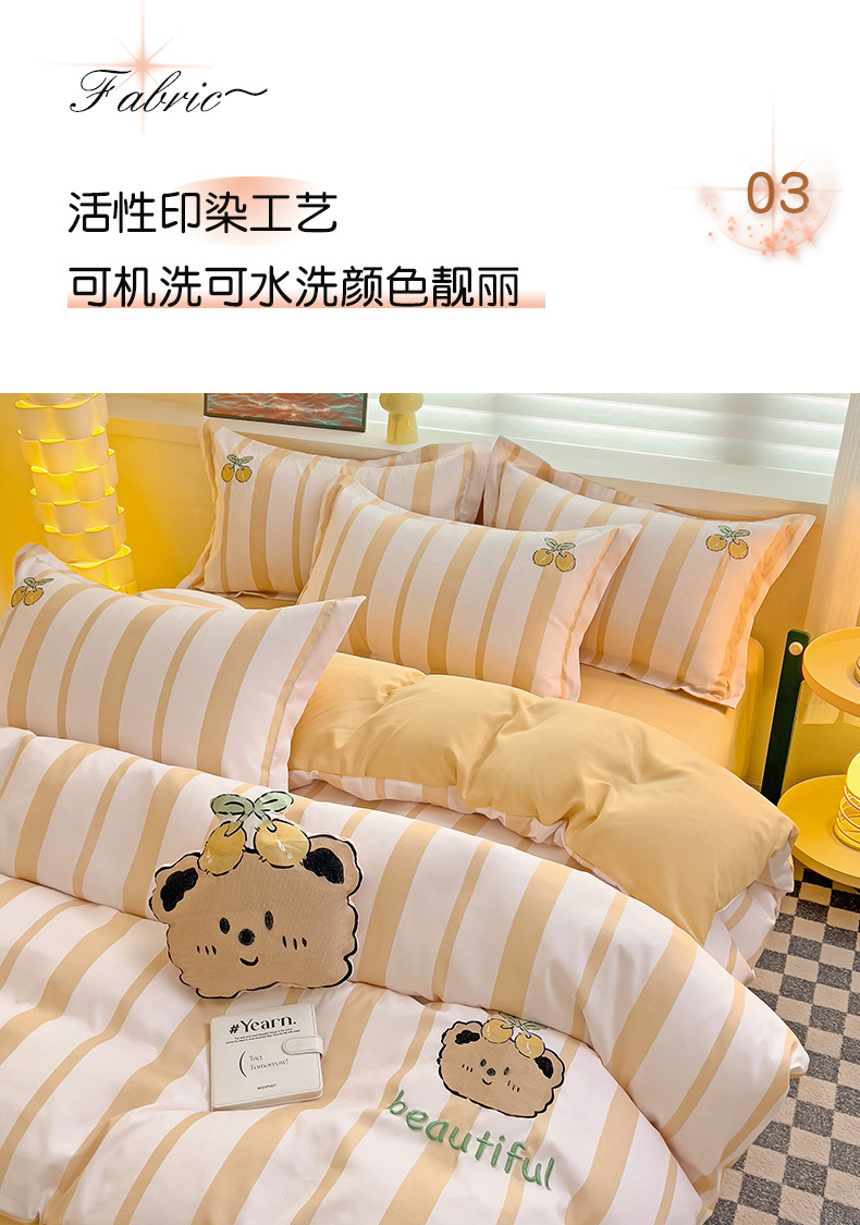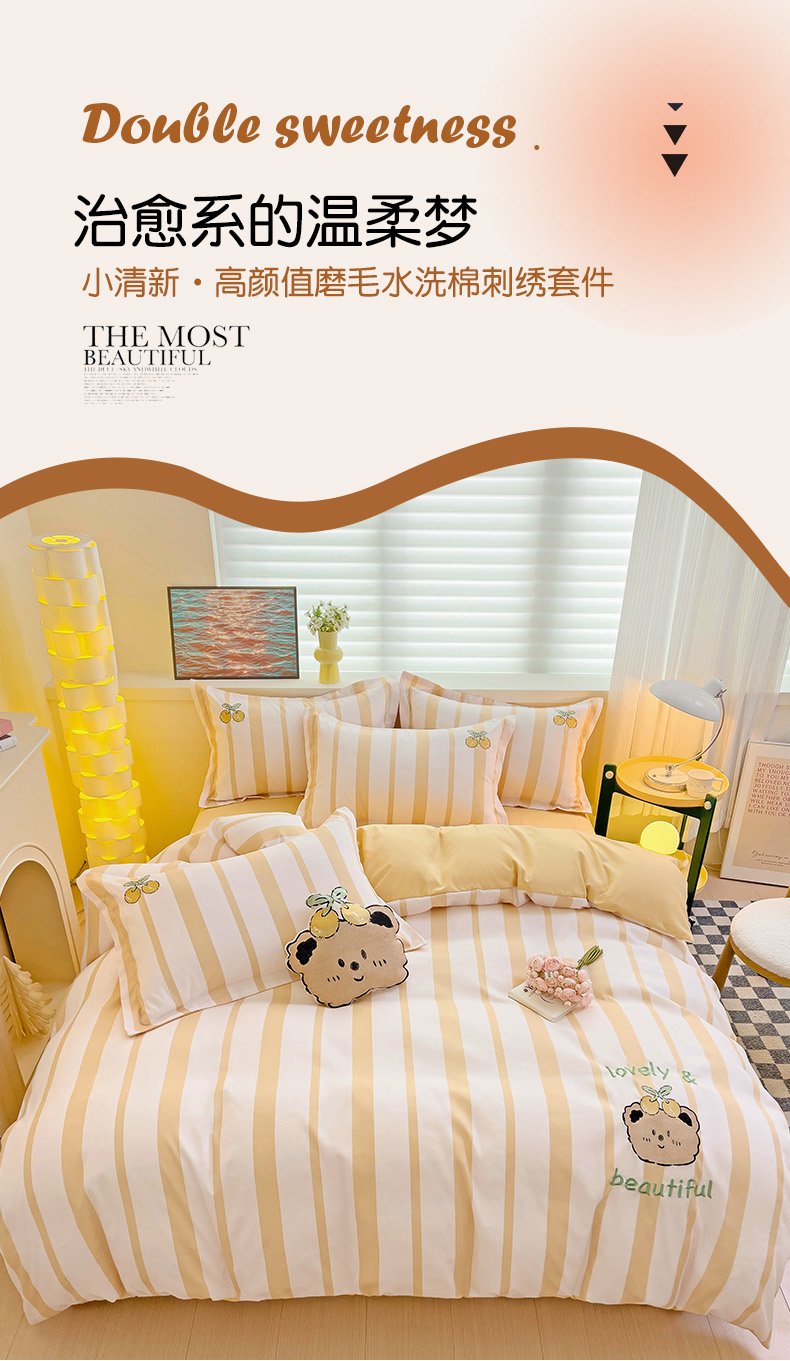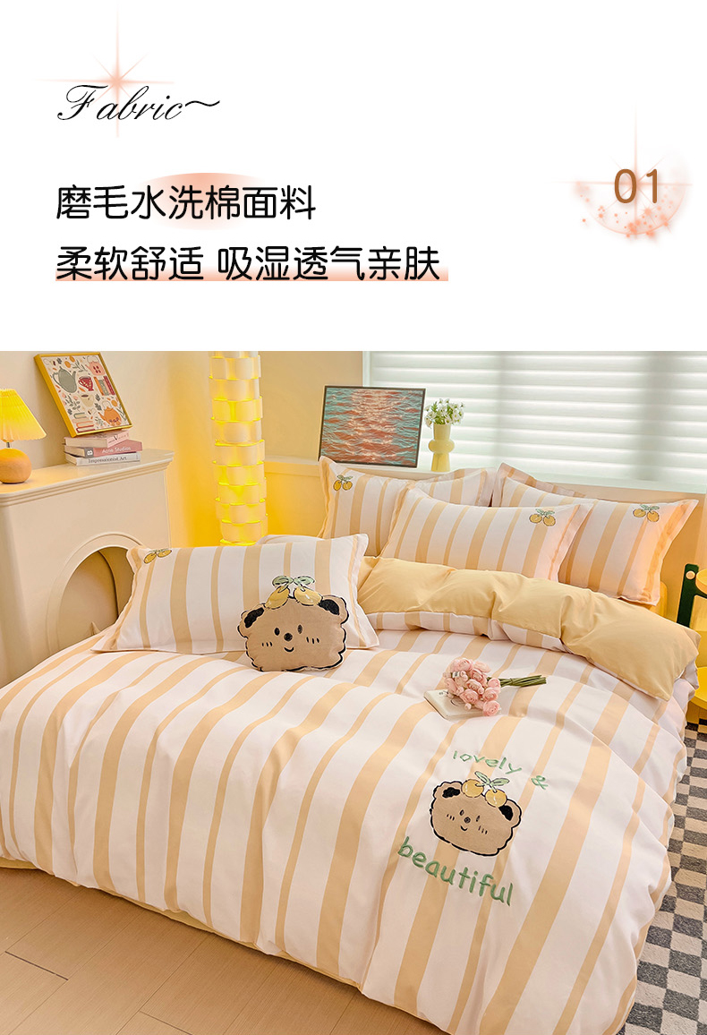 当前位置: 91家纺网 > 商品网购 > 床品套件 > 四件套 > 普通磨毛四件套 > 娜娜 2024新款磨毛水洗棉刺绣四件套 樱桃小熊-黄