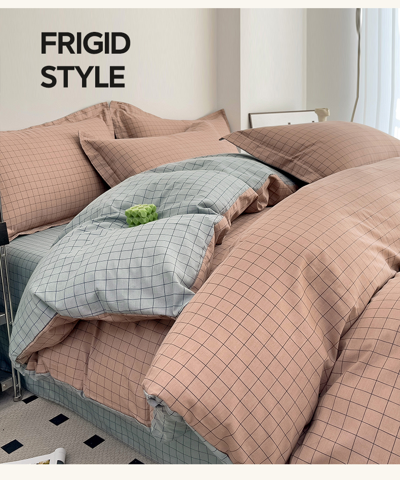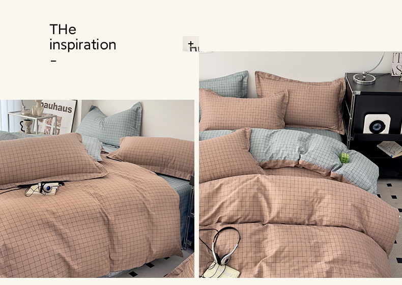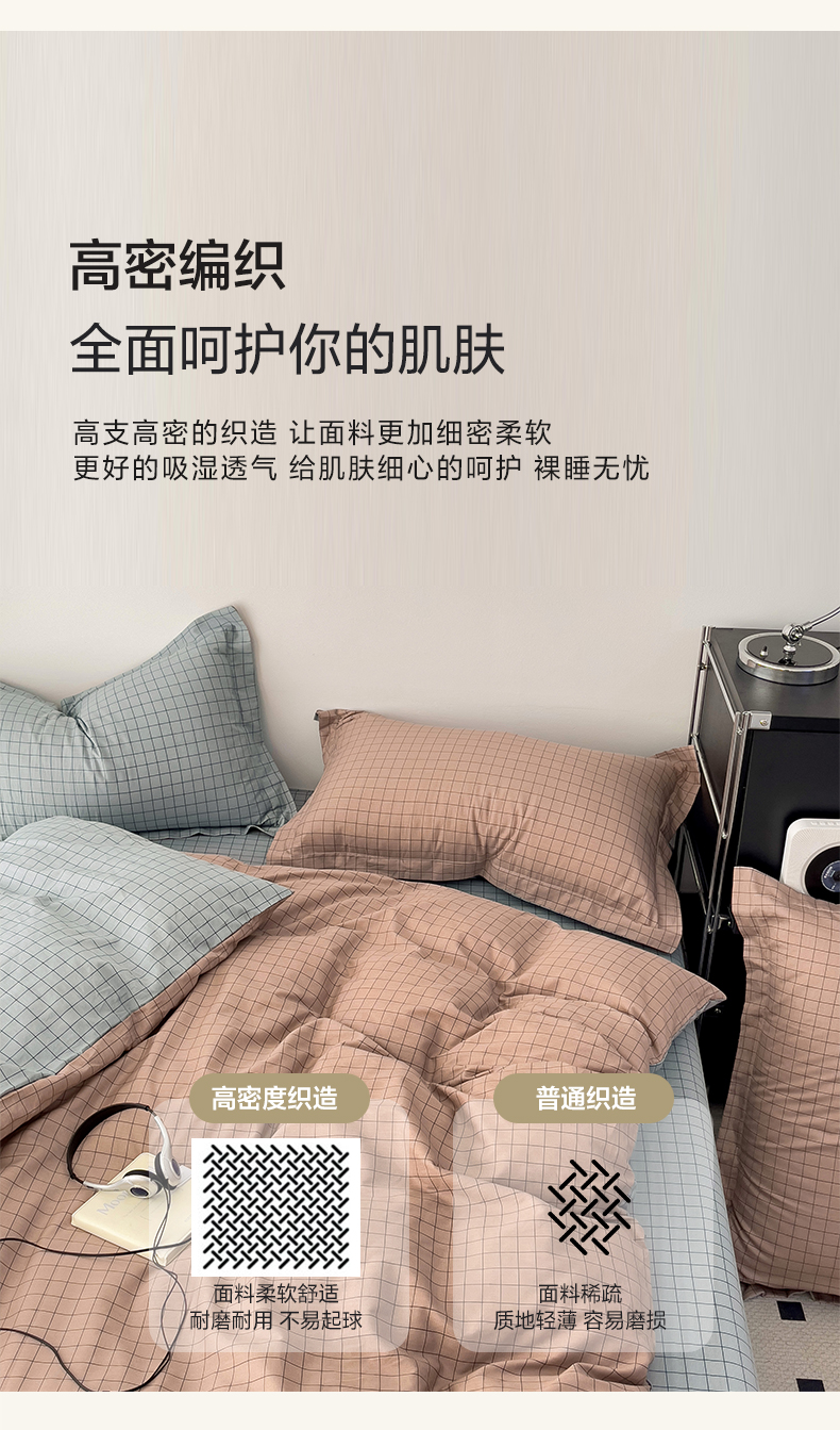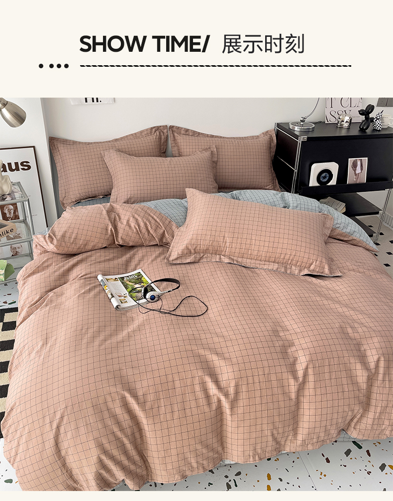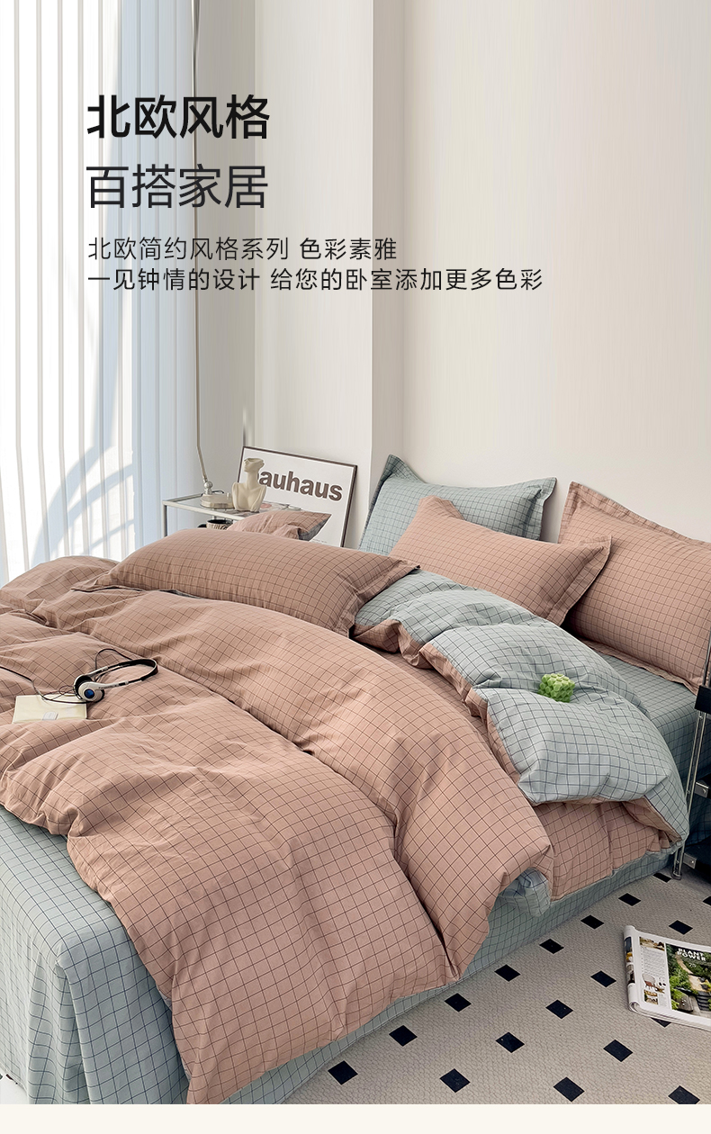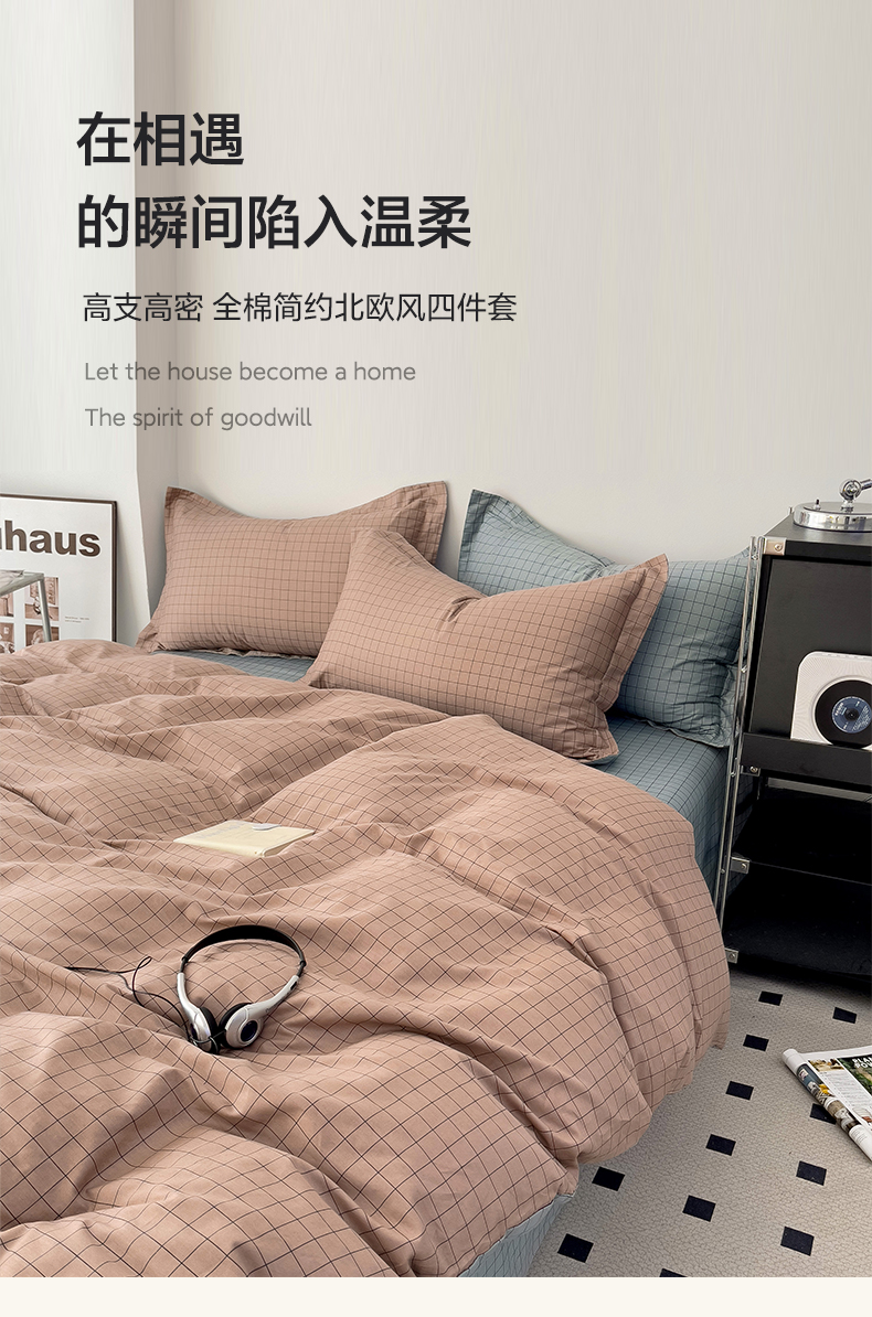 盛馨家纺 2024新款全棉高支高密精梳棉北欧绅士风四件套纯棉床笠格子条纹三件套 淑女阁