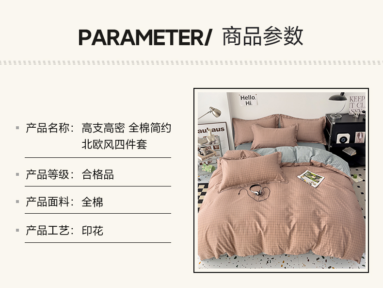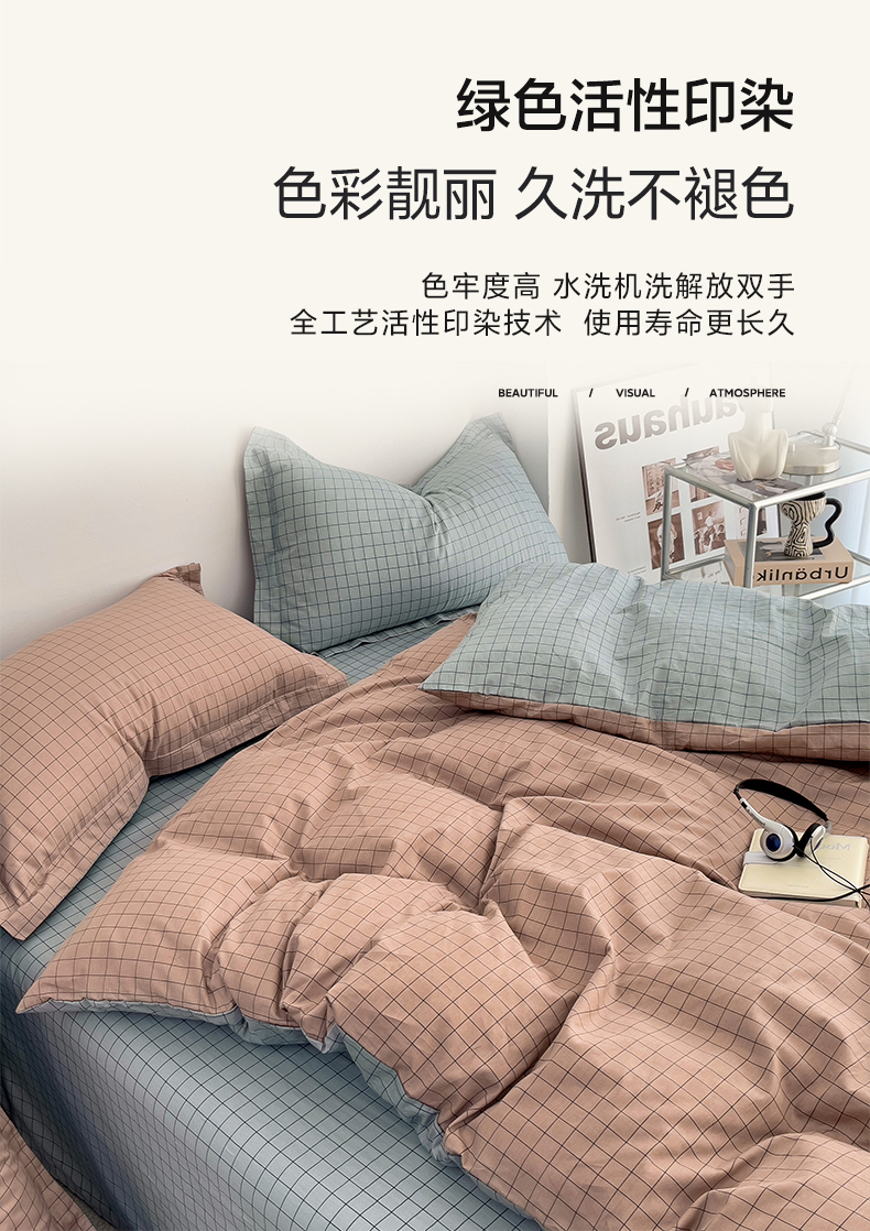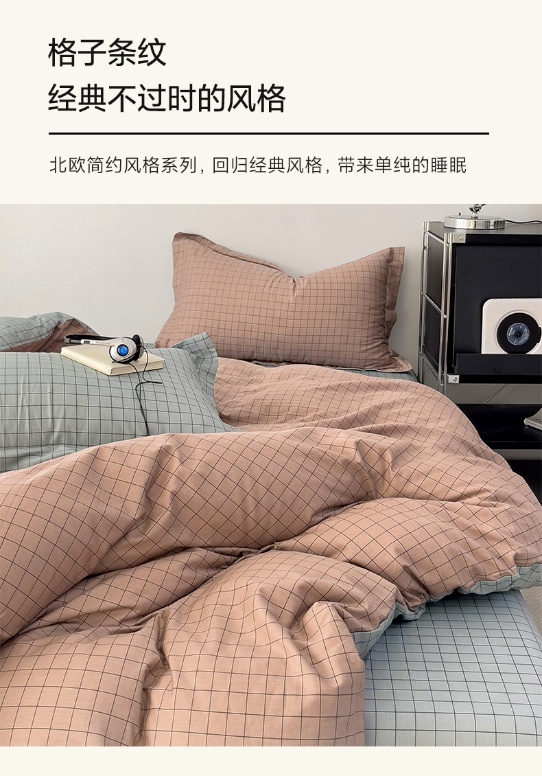 商品名称:盛馨家纺 2024新款全棉高支高密精梳棉北欧绅士风四件套纯棉床笠格子条纹三件套 淑女阁