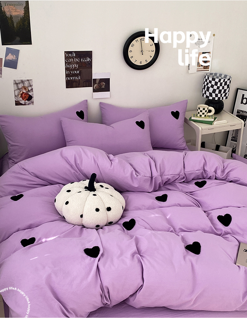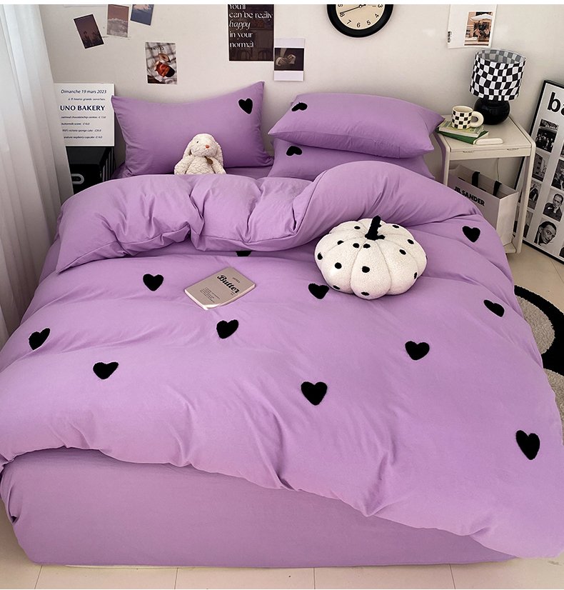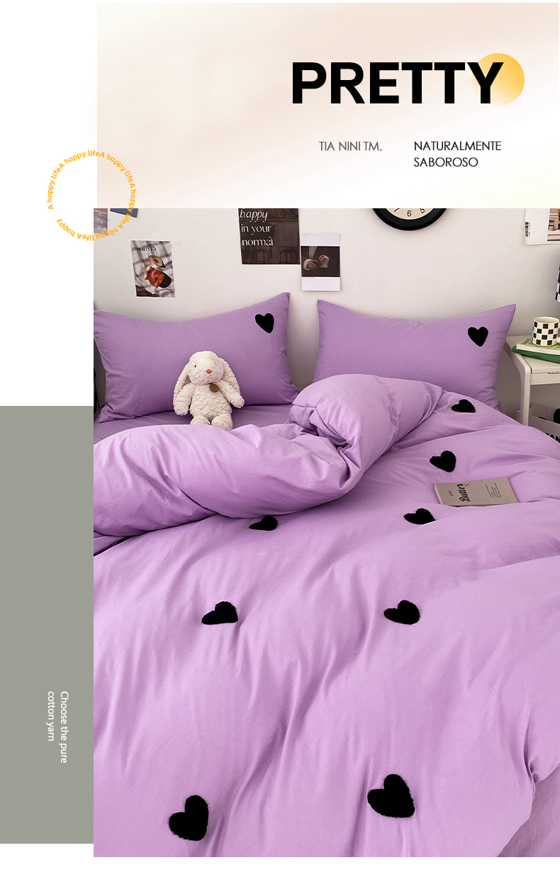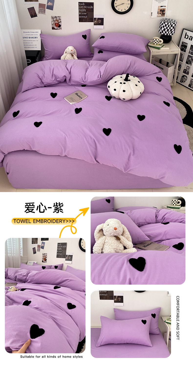 N先生 2025新款超柔水洗棉毛巾绣四件套极简风系列 爱心-紫