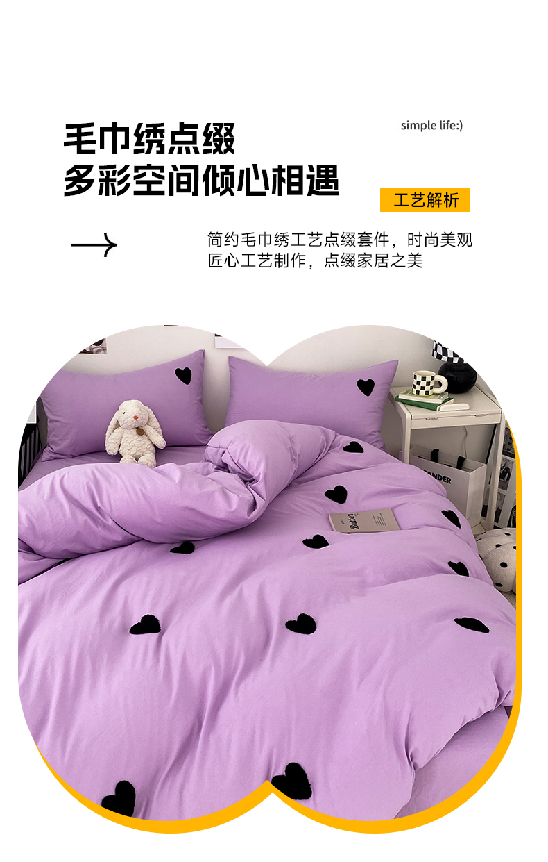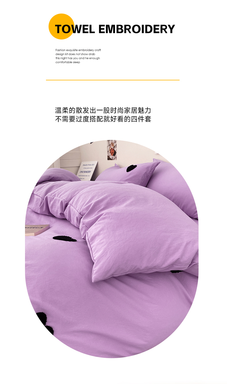 商品名称:N先生 2025新款超柔水洗棉毛巾绣四件套极简风系列 爱心-紫