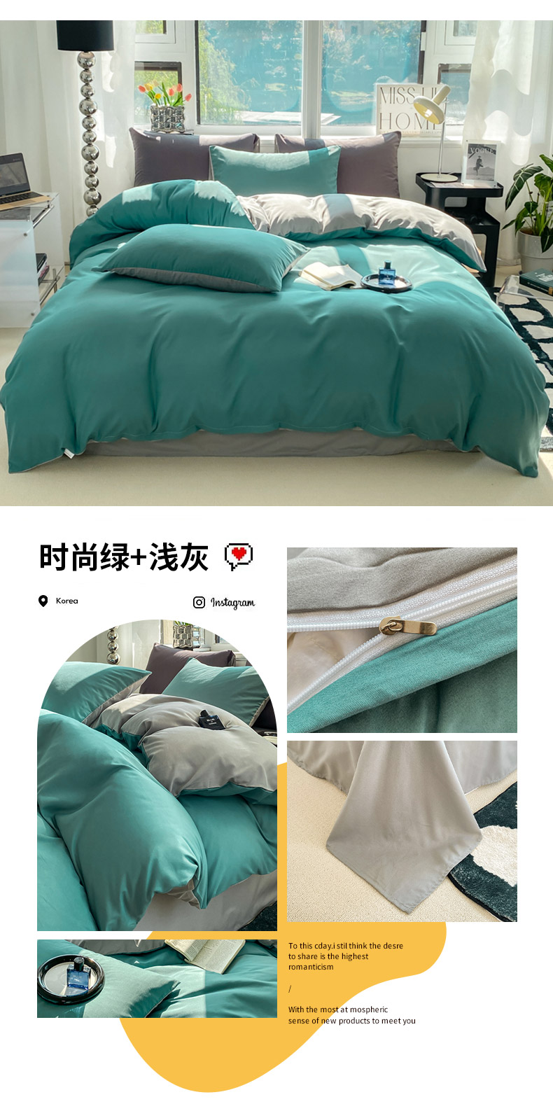 当前位置: 91家纺网 > 商品网购 > 床品套件 > 四件套 > 化纤普通四件套 > 芷凡家纺 2024新款亲肤棉纯色双拼四件套 时尚绿+浅灰