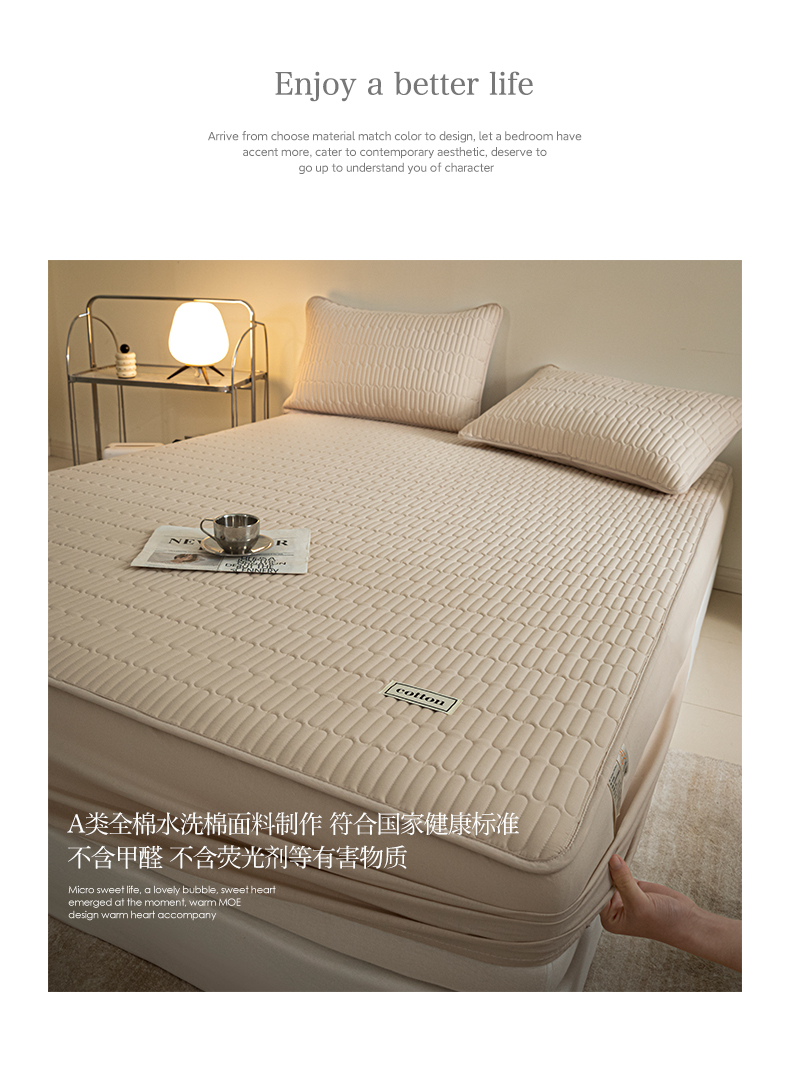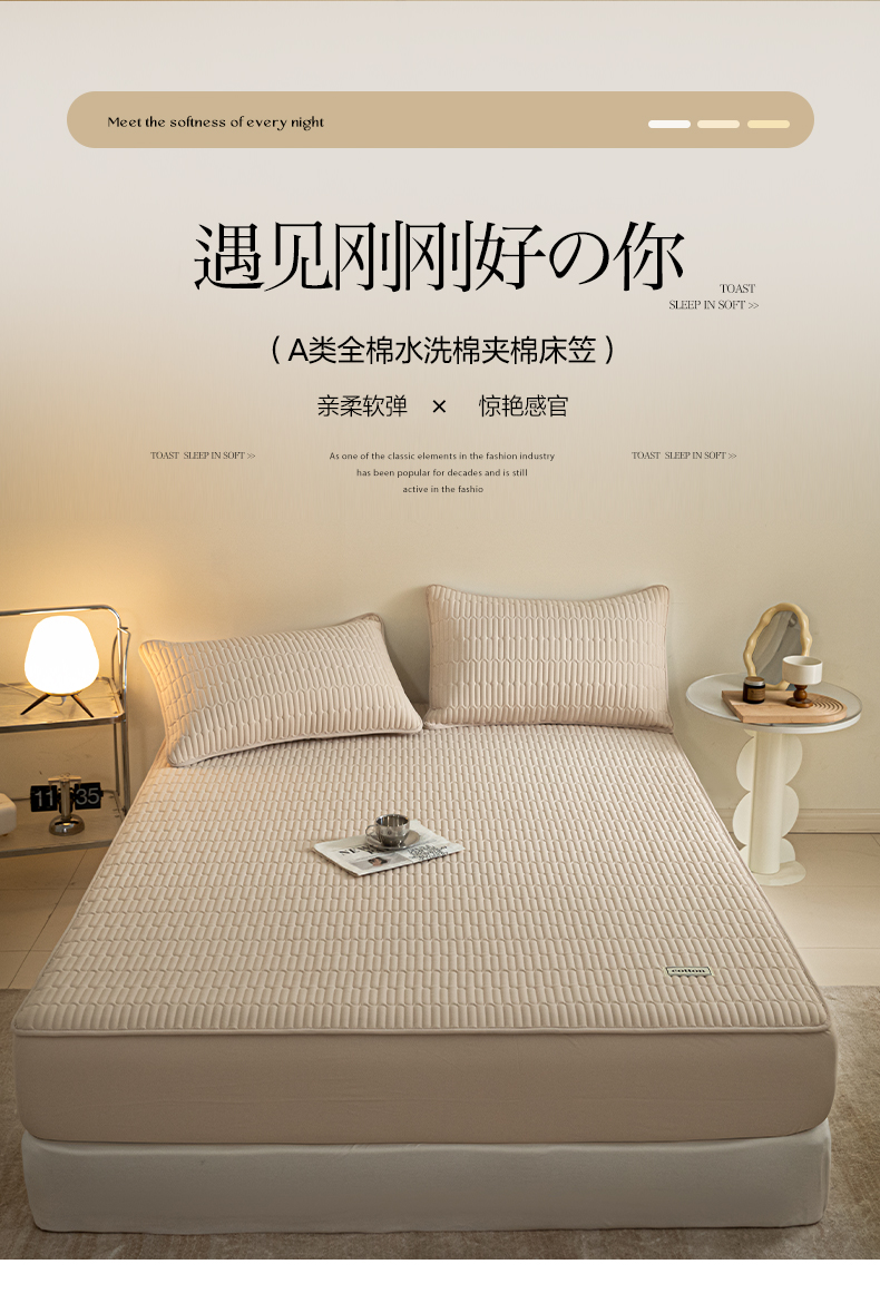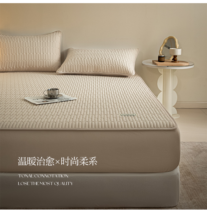 • 91家纺网 家纺一手货源 找家纺 芬晴家纺 2024新款纯棉水洗棉纯色夹棉床笠 漫游-浅卡