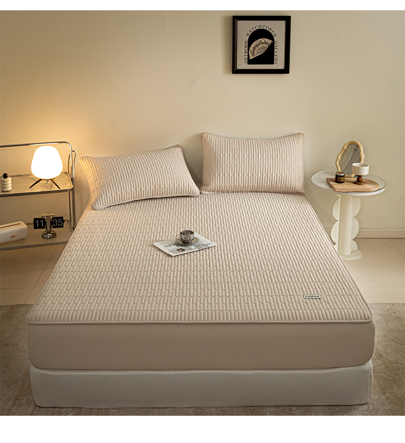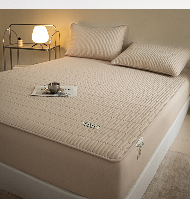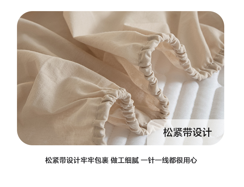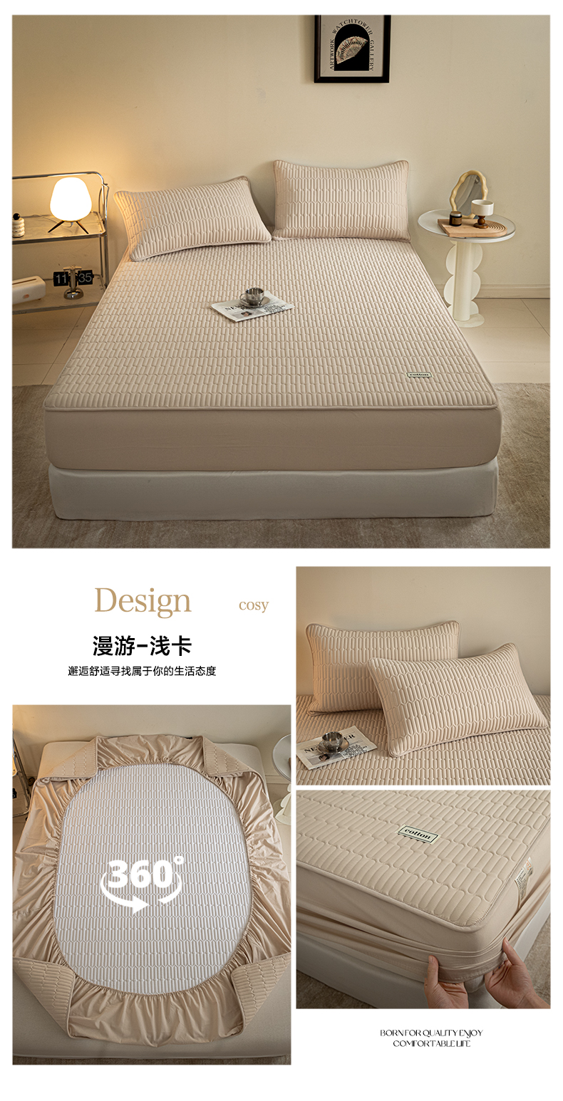 芬晴家纺 2024新款纯棉水洗棉纯色夹棉床笠 漫游-浅卡