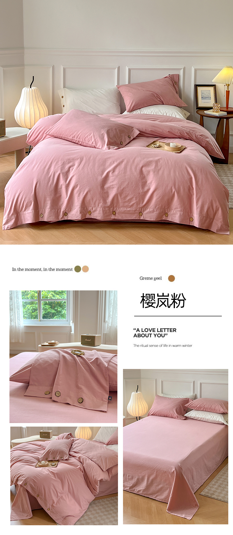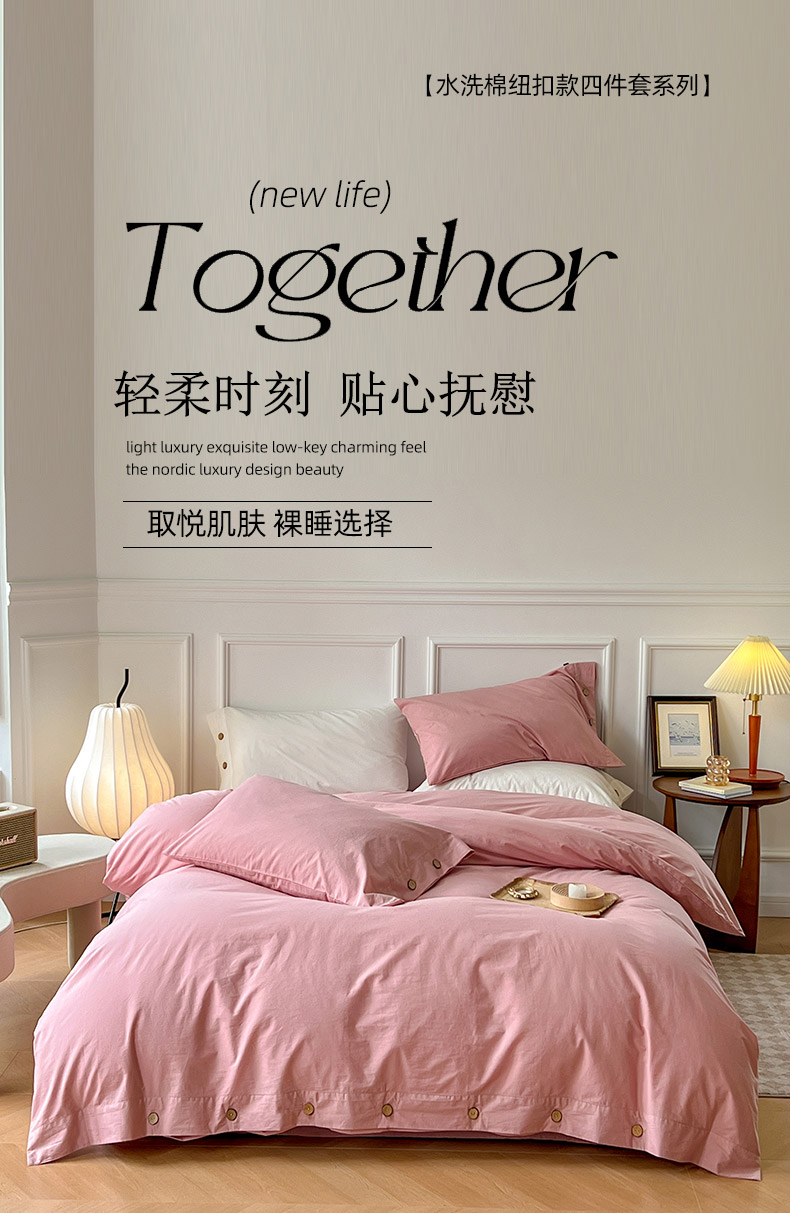 当前位置: 91家纺网 > 商品网购 > 床品套件 > 四件套 > 水洗棉四件套 > yyds网供 2024新款纽扣款无印风四件套非全棉纯棉日式水洗棉三件套轻奢INS风(含买家秀) 樱岚粉-无印风纽扣款