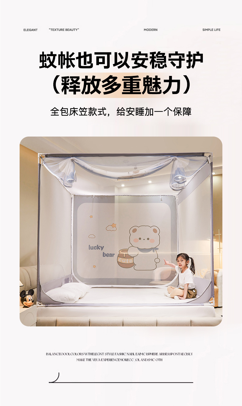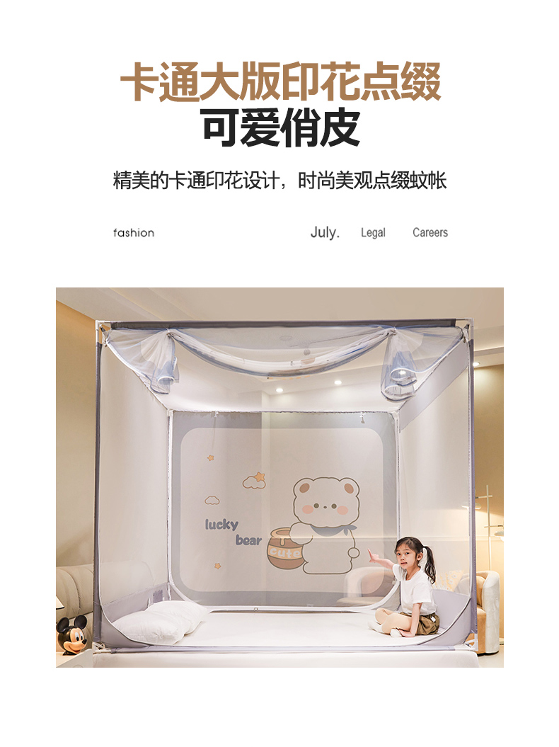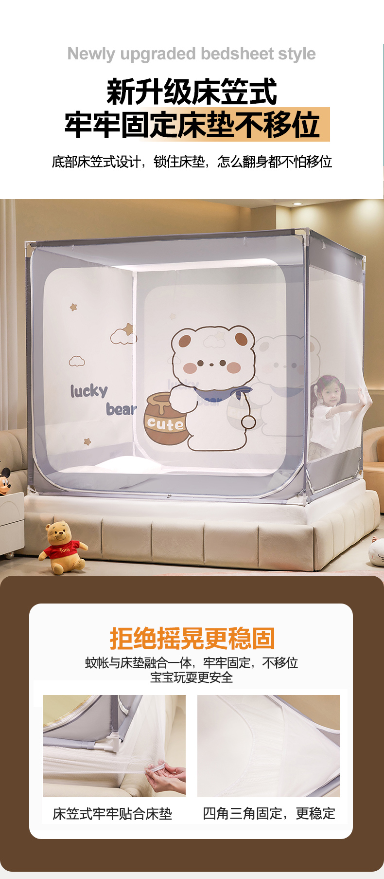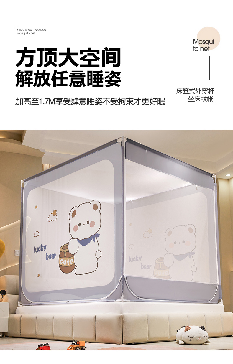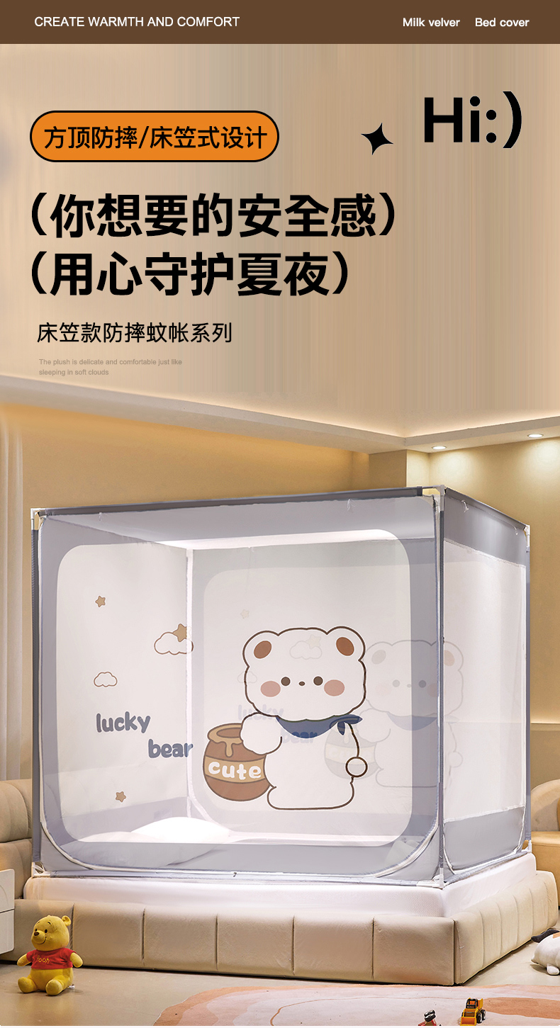 商品名称:(总)青竹苑 2024新款方顶帐纱印花床笠式防摔坐床蚊帐