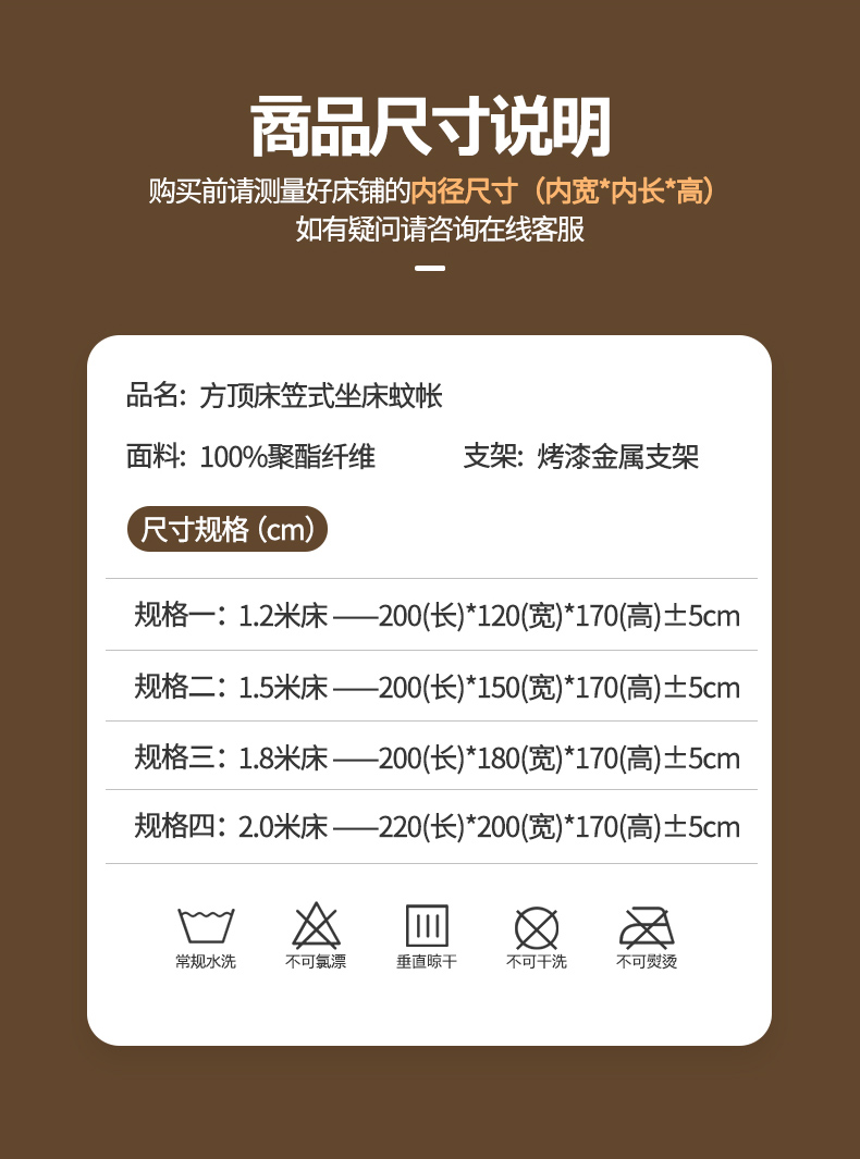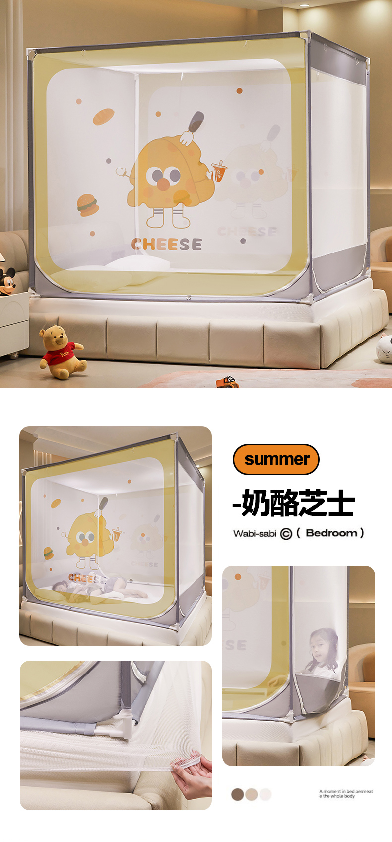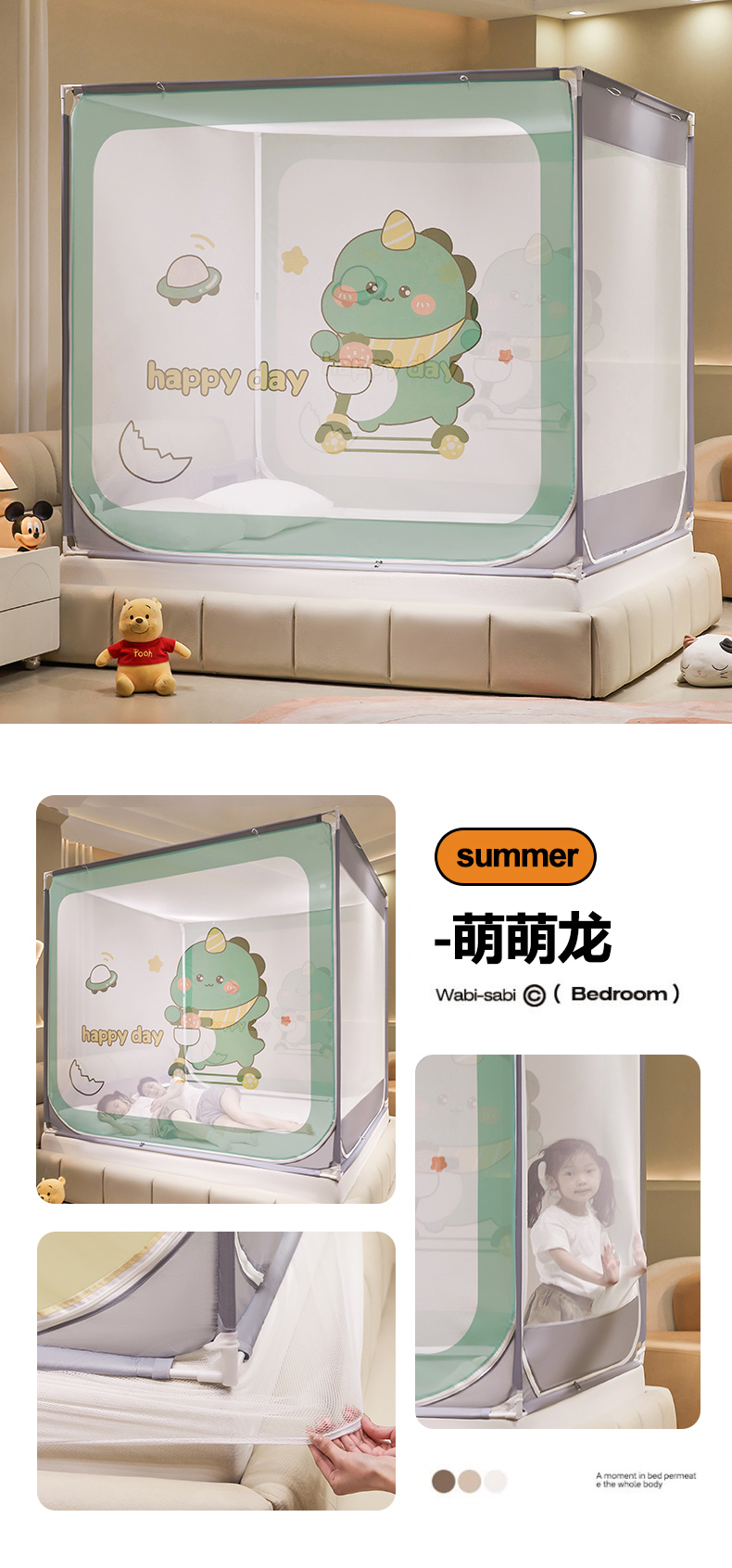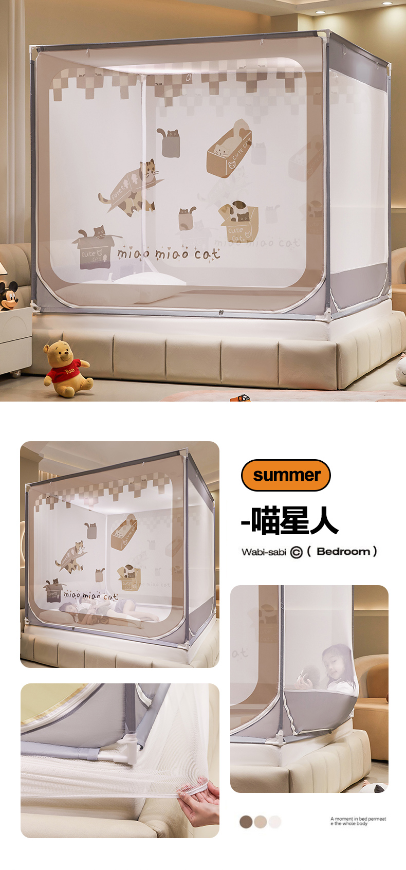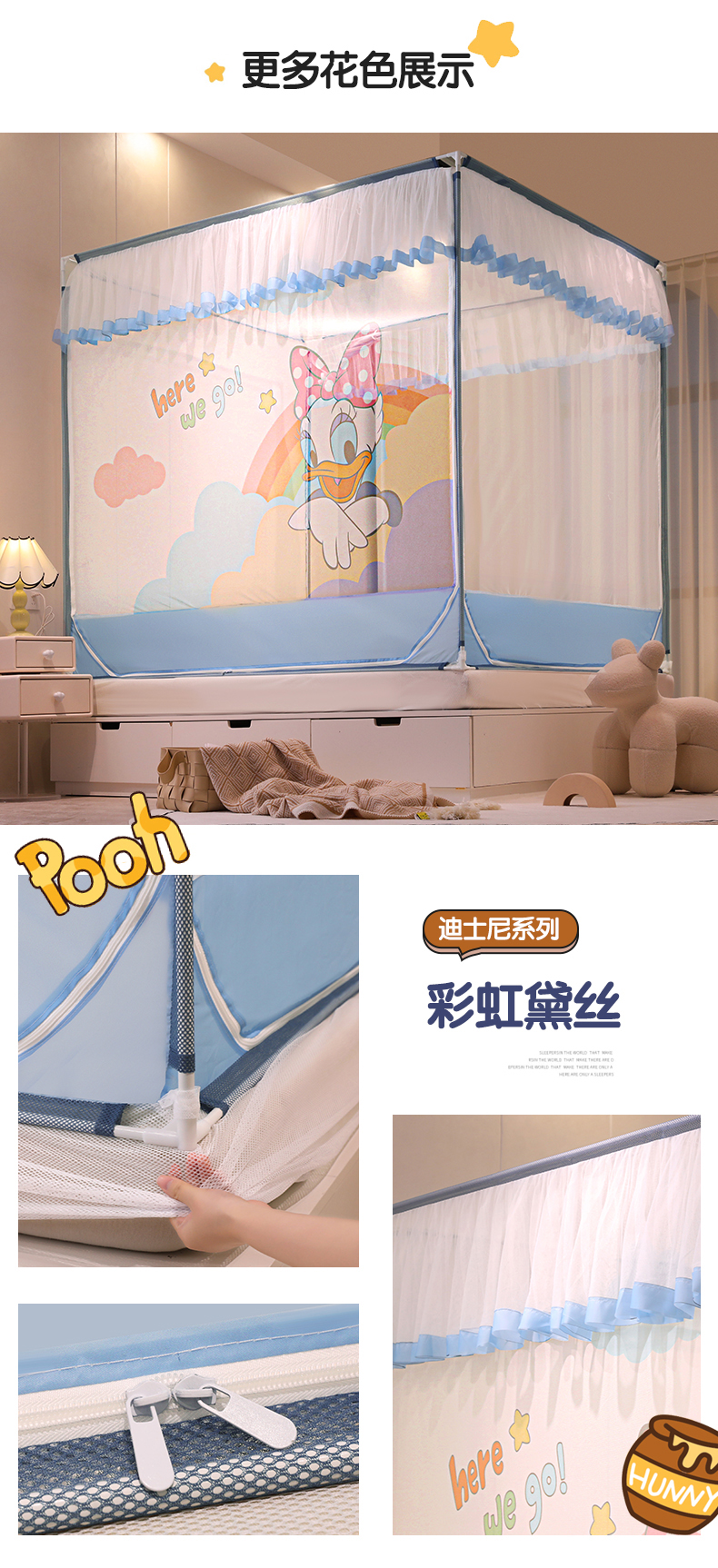 商品名称:(总)青竹苑 2024新款方顶帐纱印花床笠式防摔坐床蚊帐