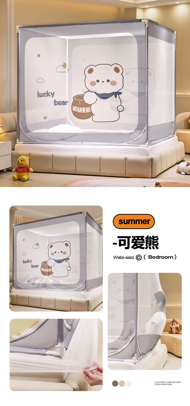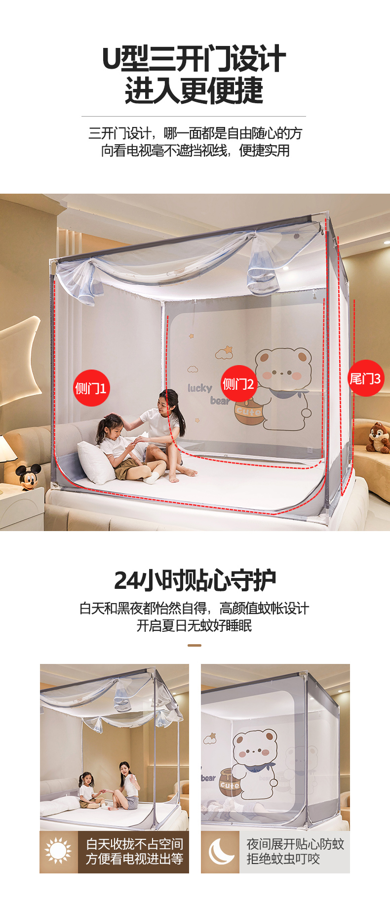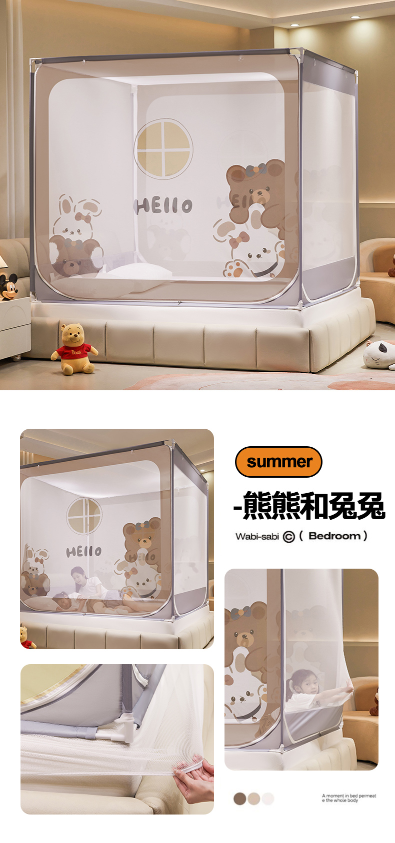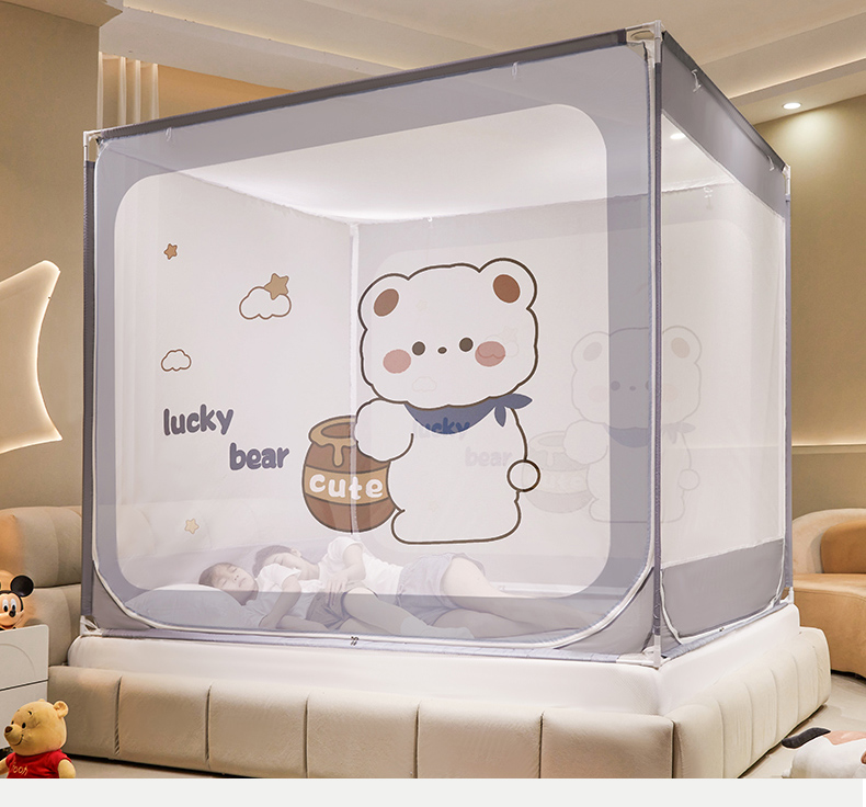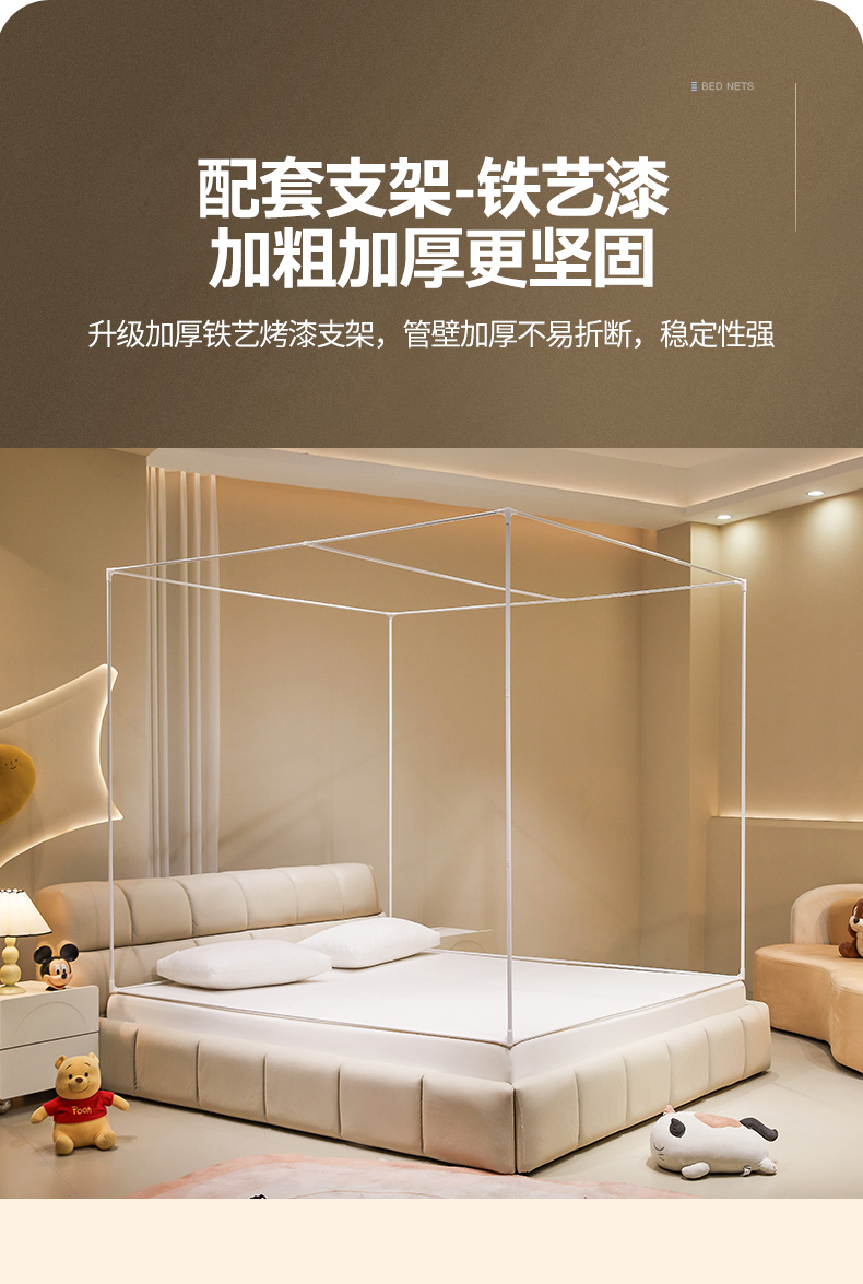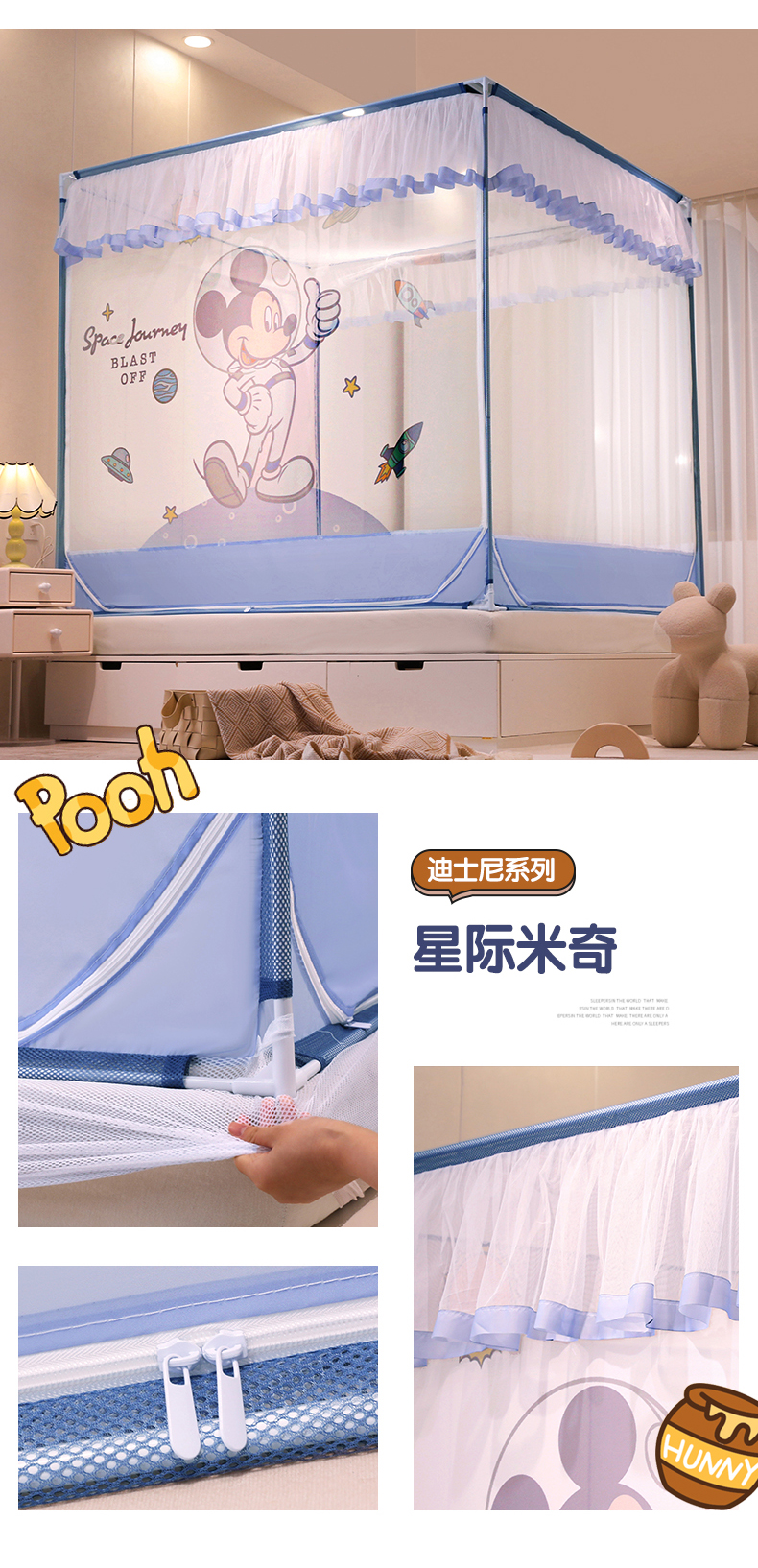 商品名称:(总)青竹苑 2024新款方顶帐纱印花床笠式防摔坐床蚊帐