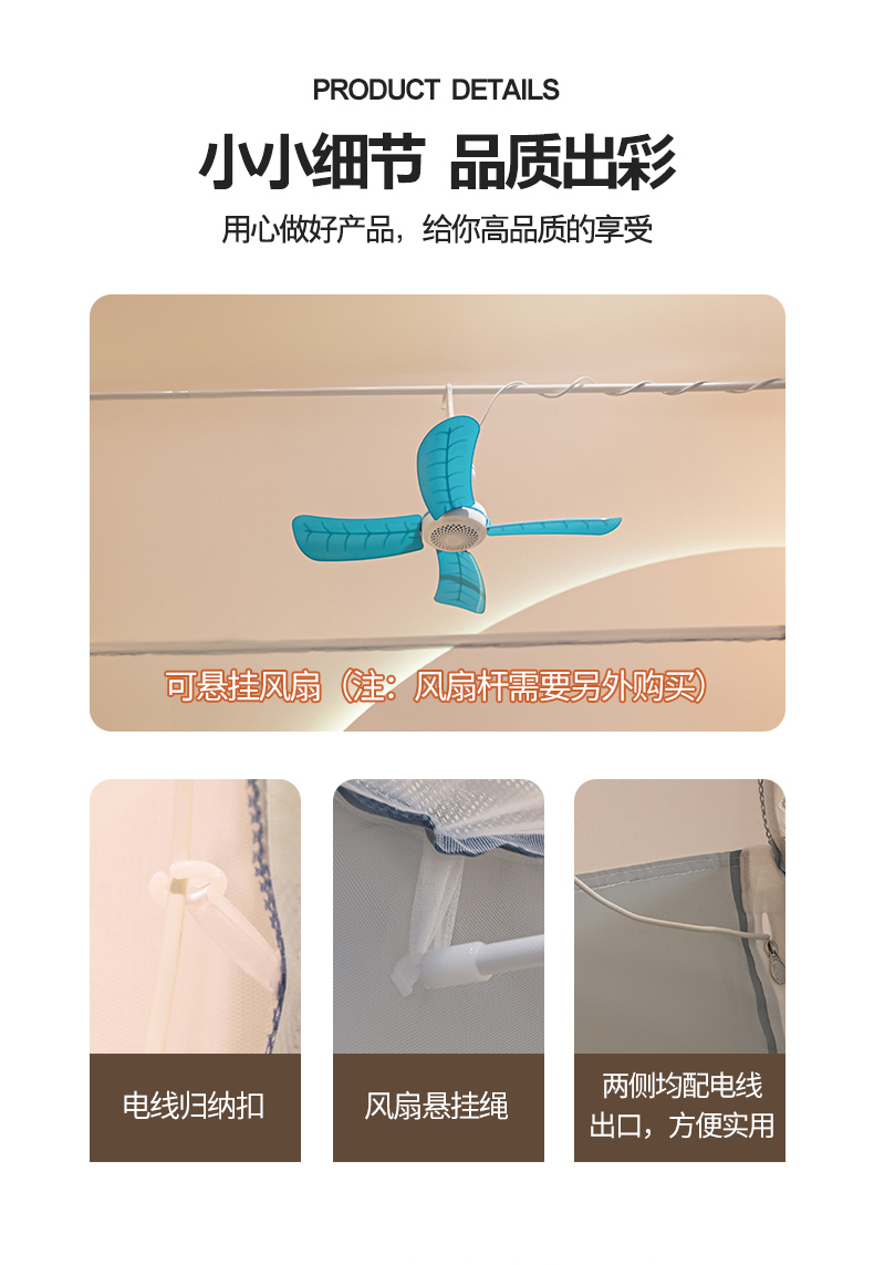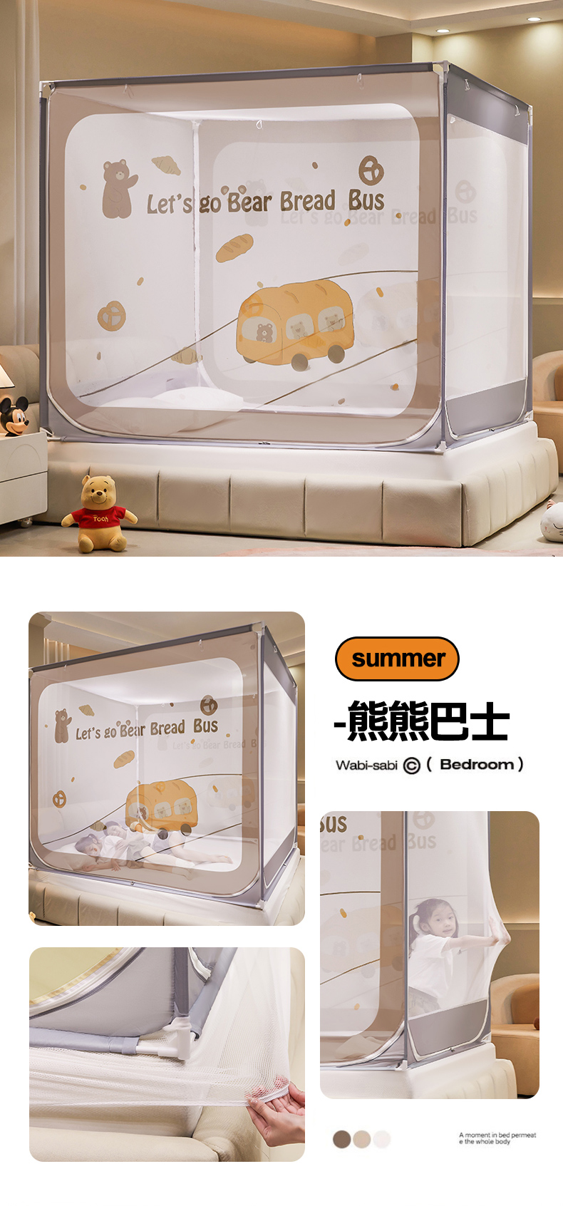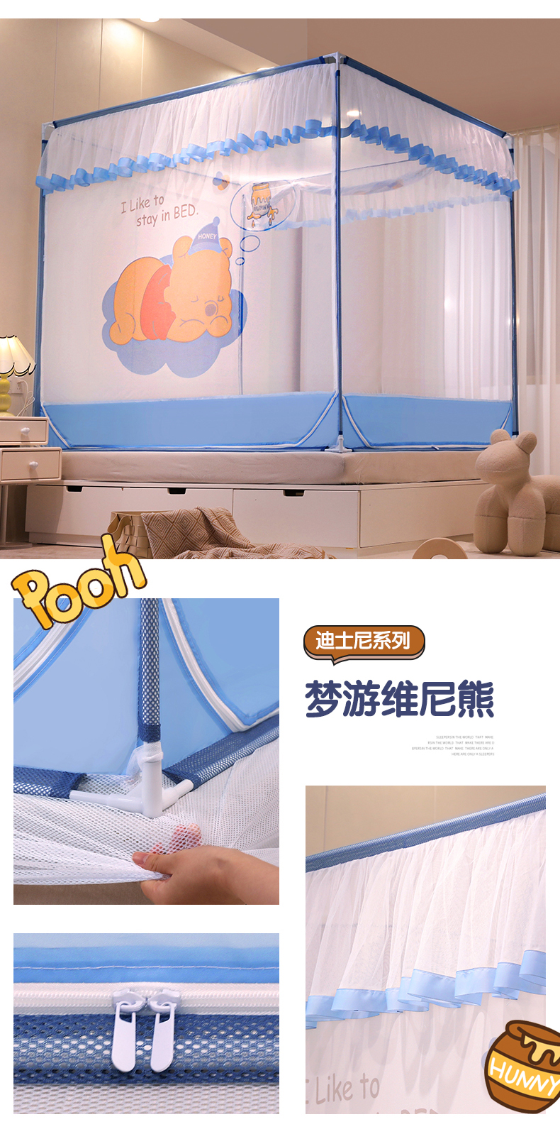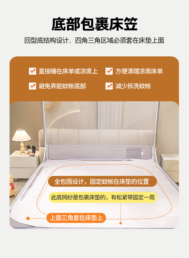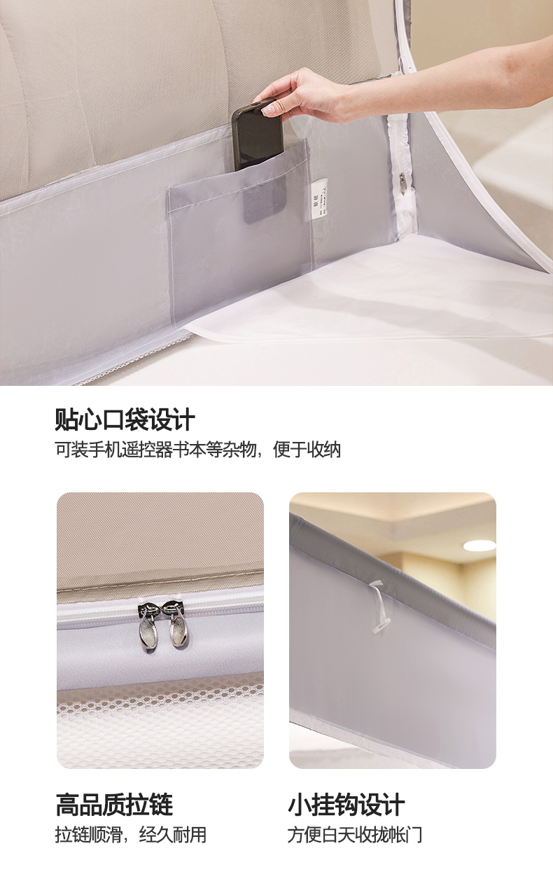 商品名称:(总)青竹苑 2024新款方顶帐纱印花床笠式防摔坐床蚊帐
