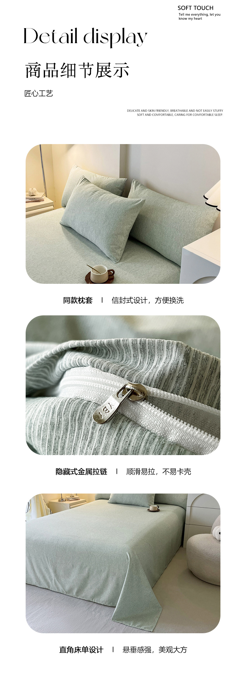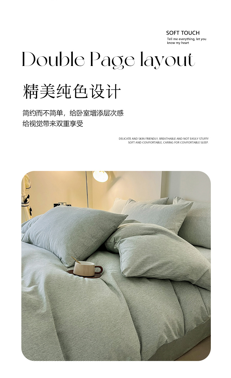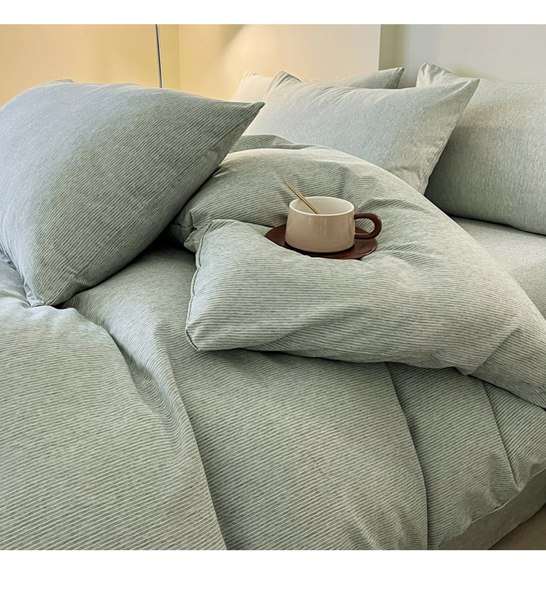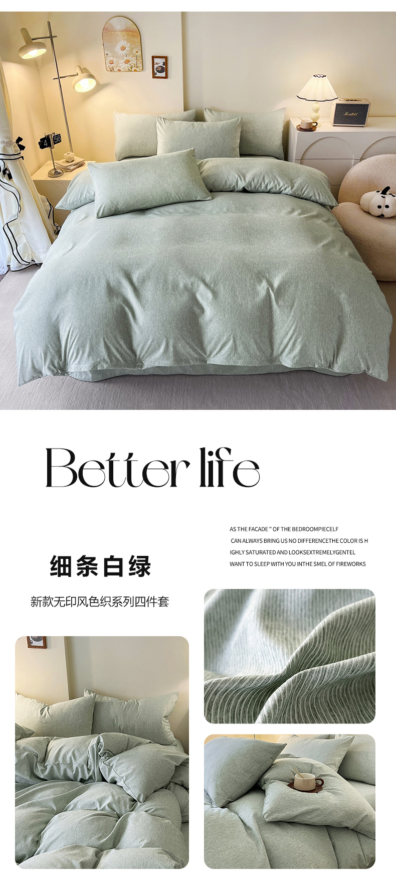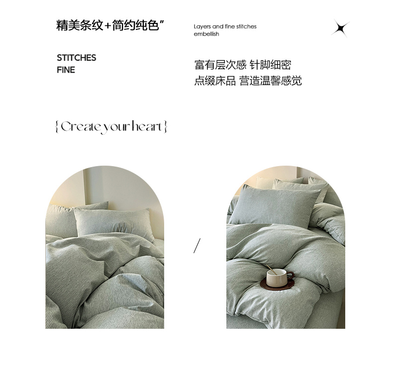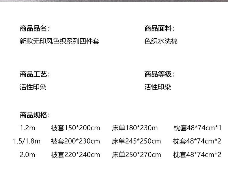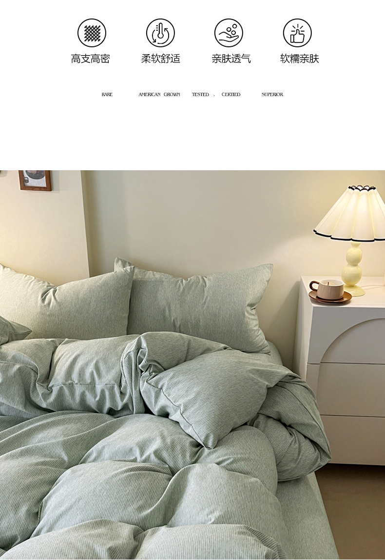 商品名称:一比一 2024新款无印风色织系列四件套 细条白绿
