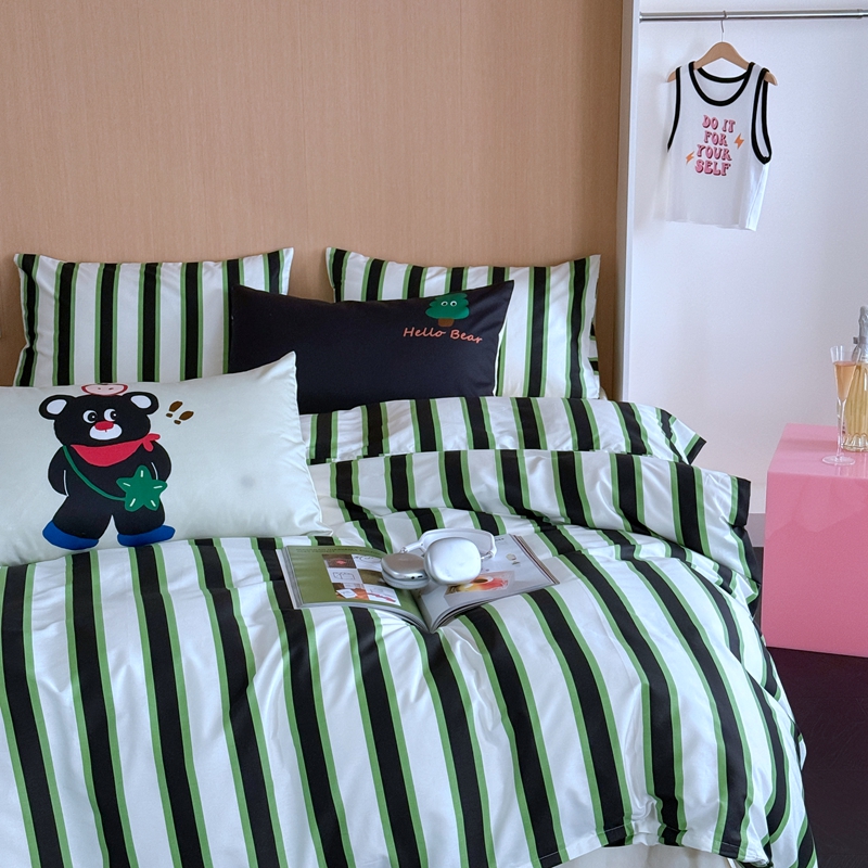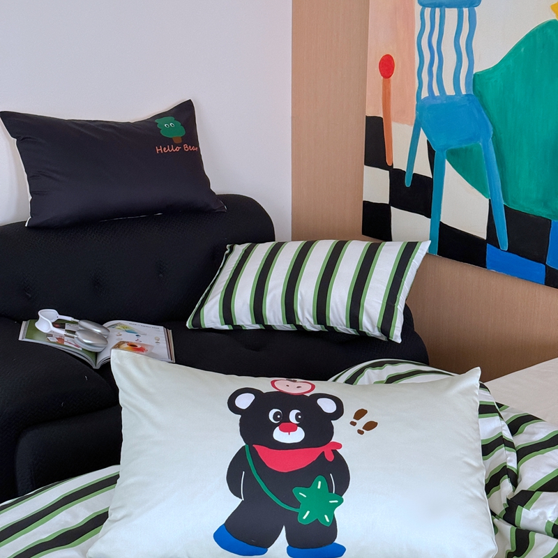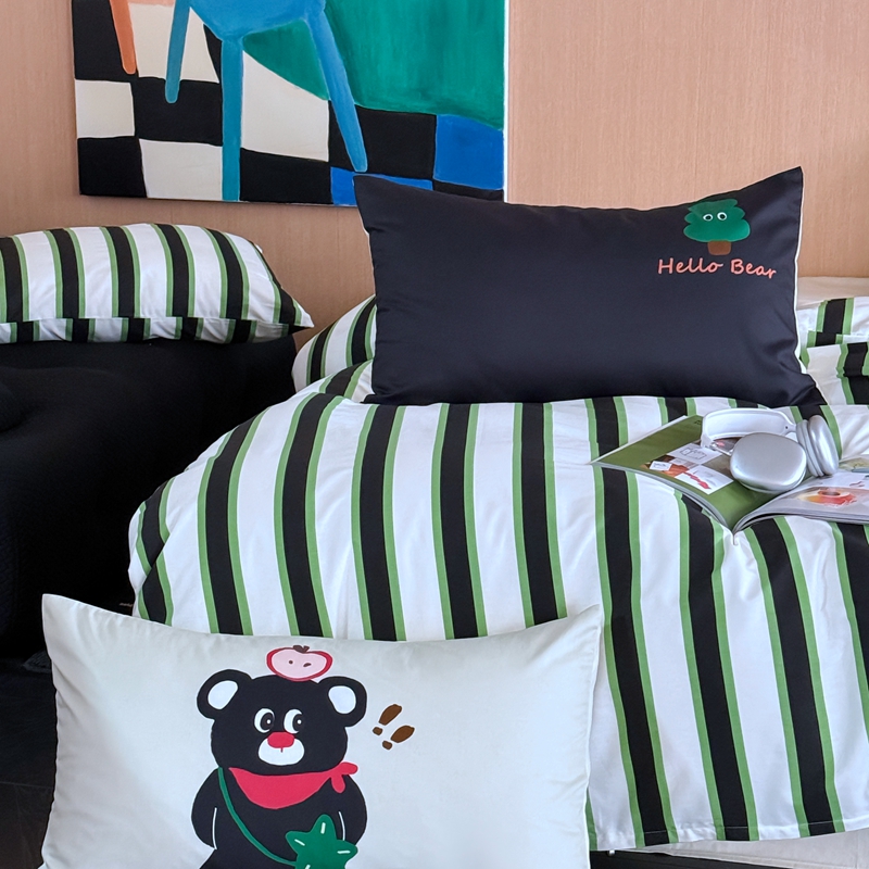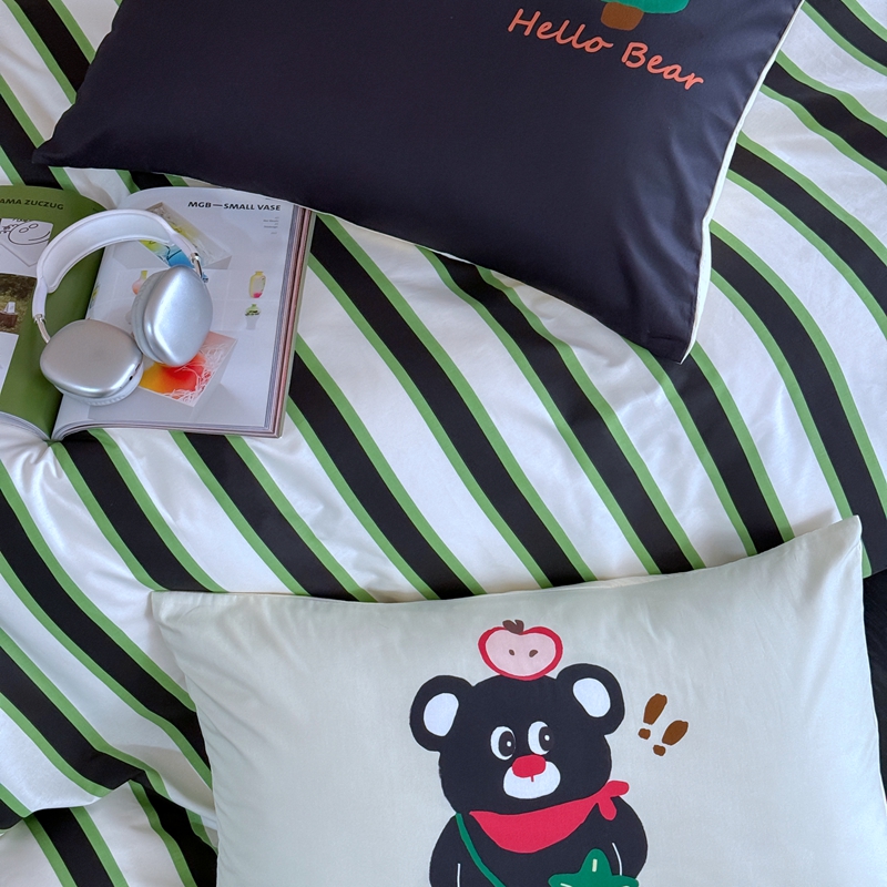 圆岛家纺 2024新款春夏40支趣味全棉数码印花四件套 惊叹熊