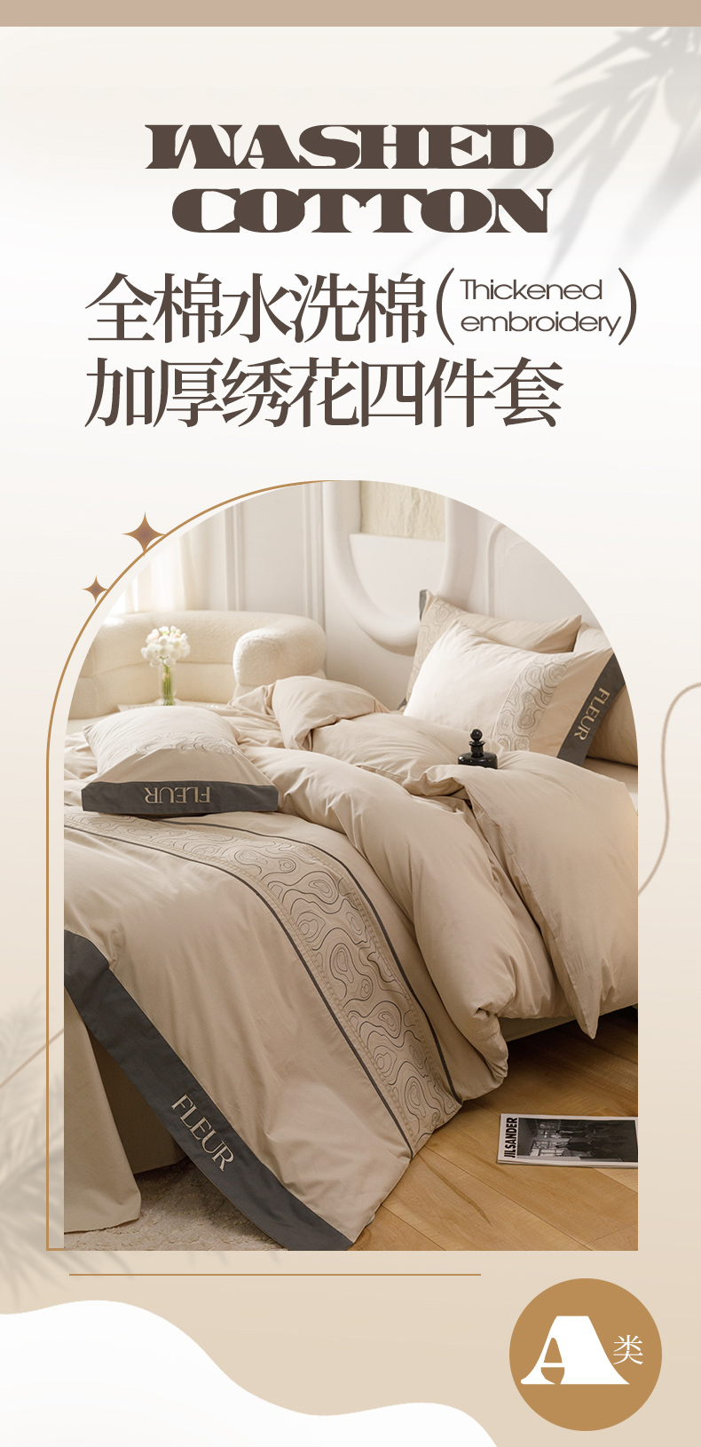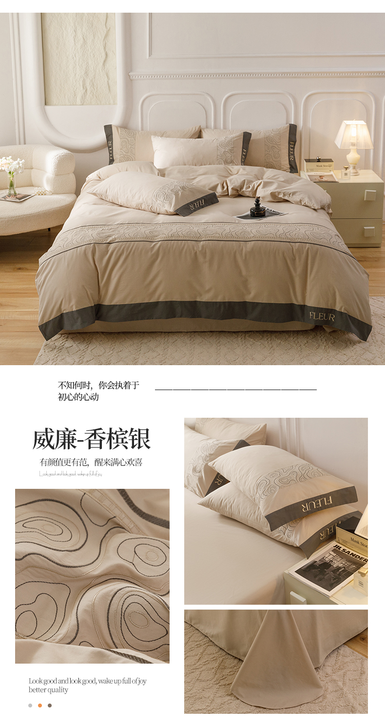 当前位置: 91家纺网 > 商品网购 > 床品套件 > 四件套 > 水洗棉四件套 > 艾莱家纺 2024新款A类全棉水洗棉加厚绣花四件套 威廉-香槟银