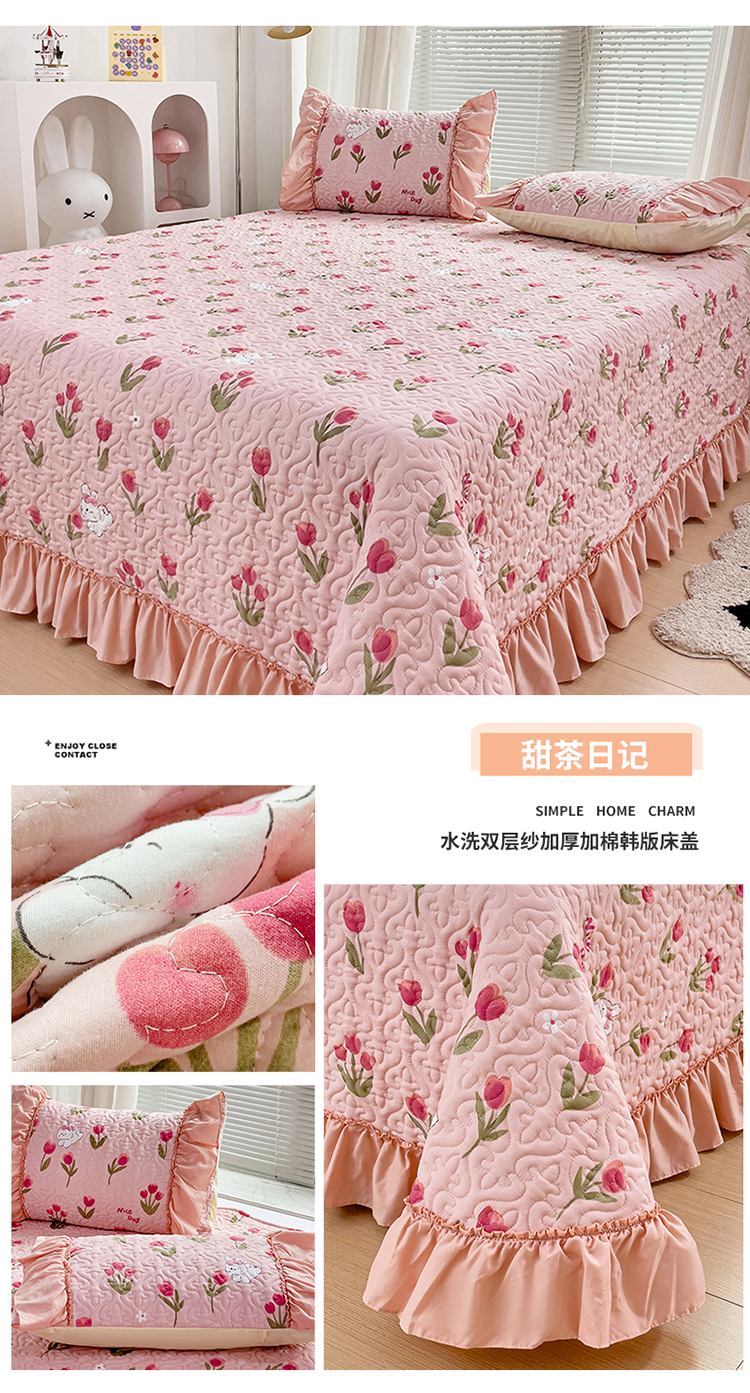 商品名称:纽缦家纺 2024水洗双层纱加厚加棉韩版床盖 甜茶日记