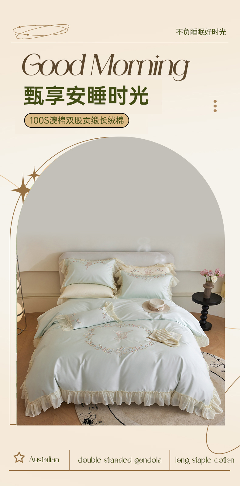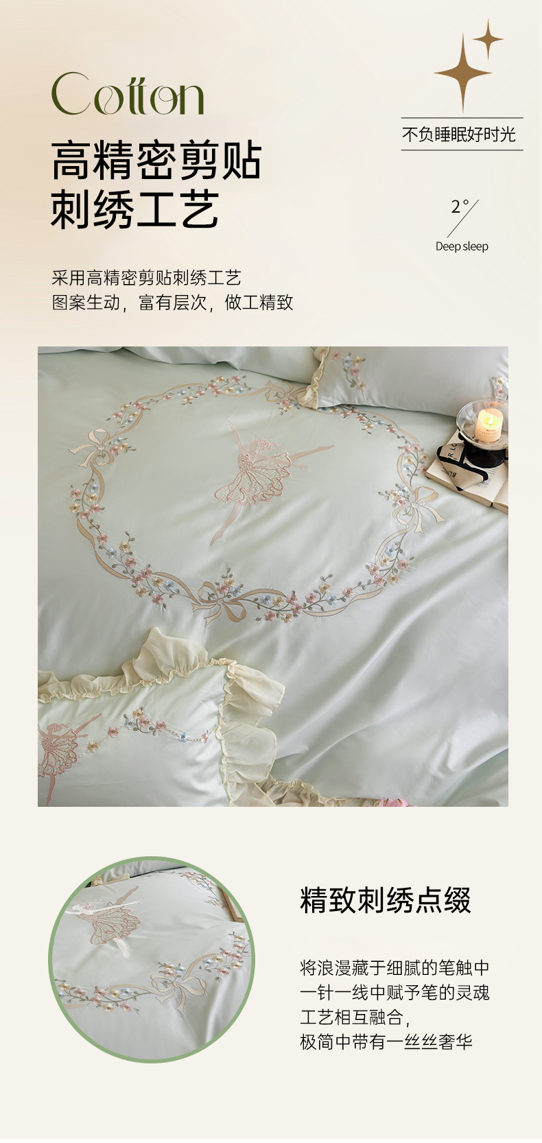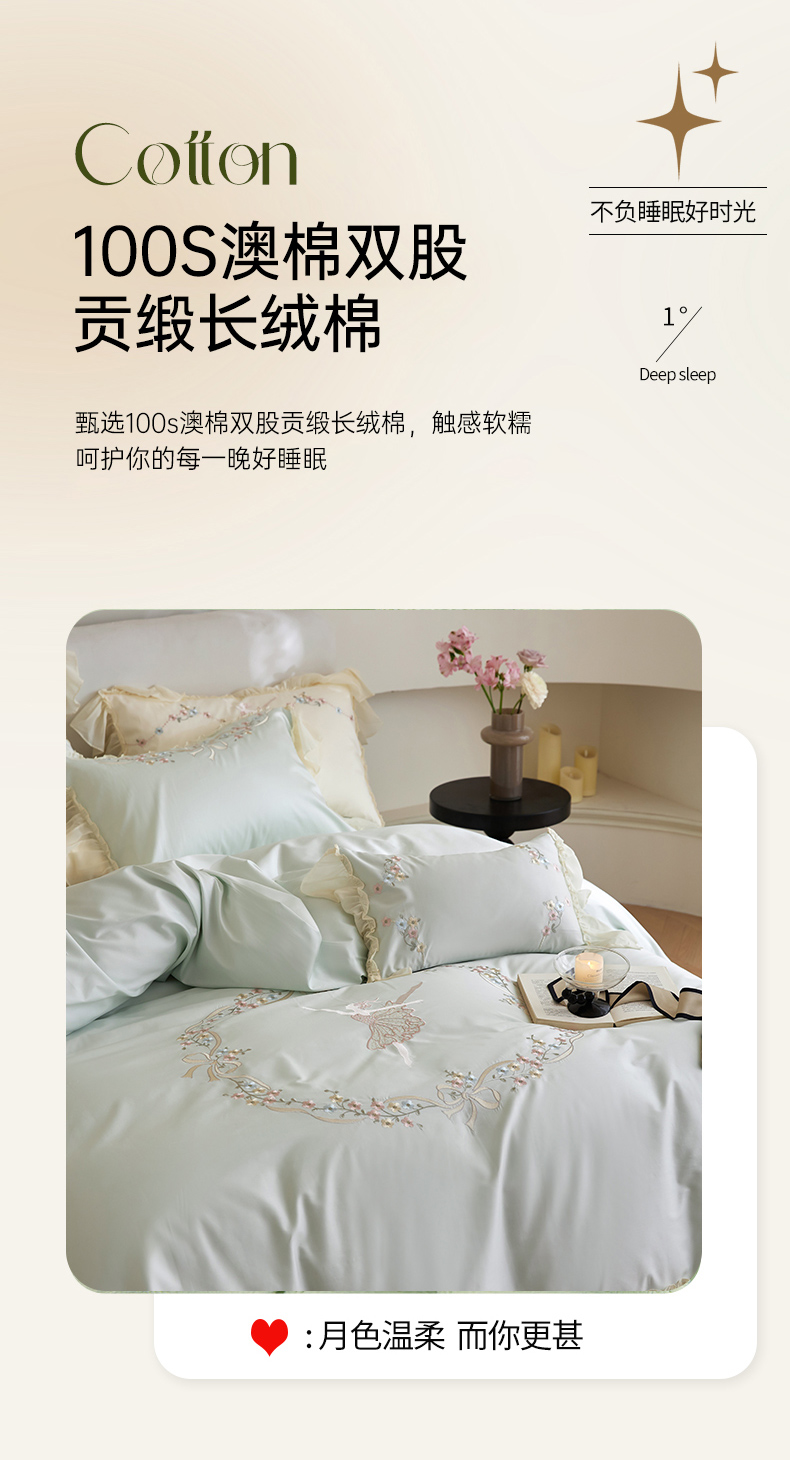 (总)2024新款100S澳棉双股贡缎长绒棉刺绣六件套-简约时光,粉,蓝,绿