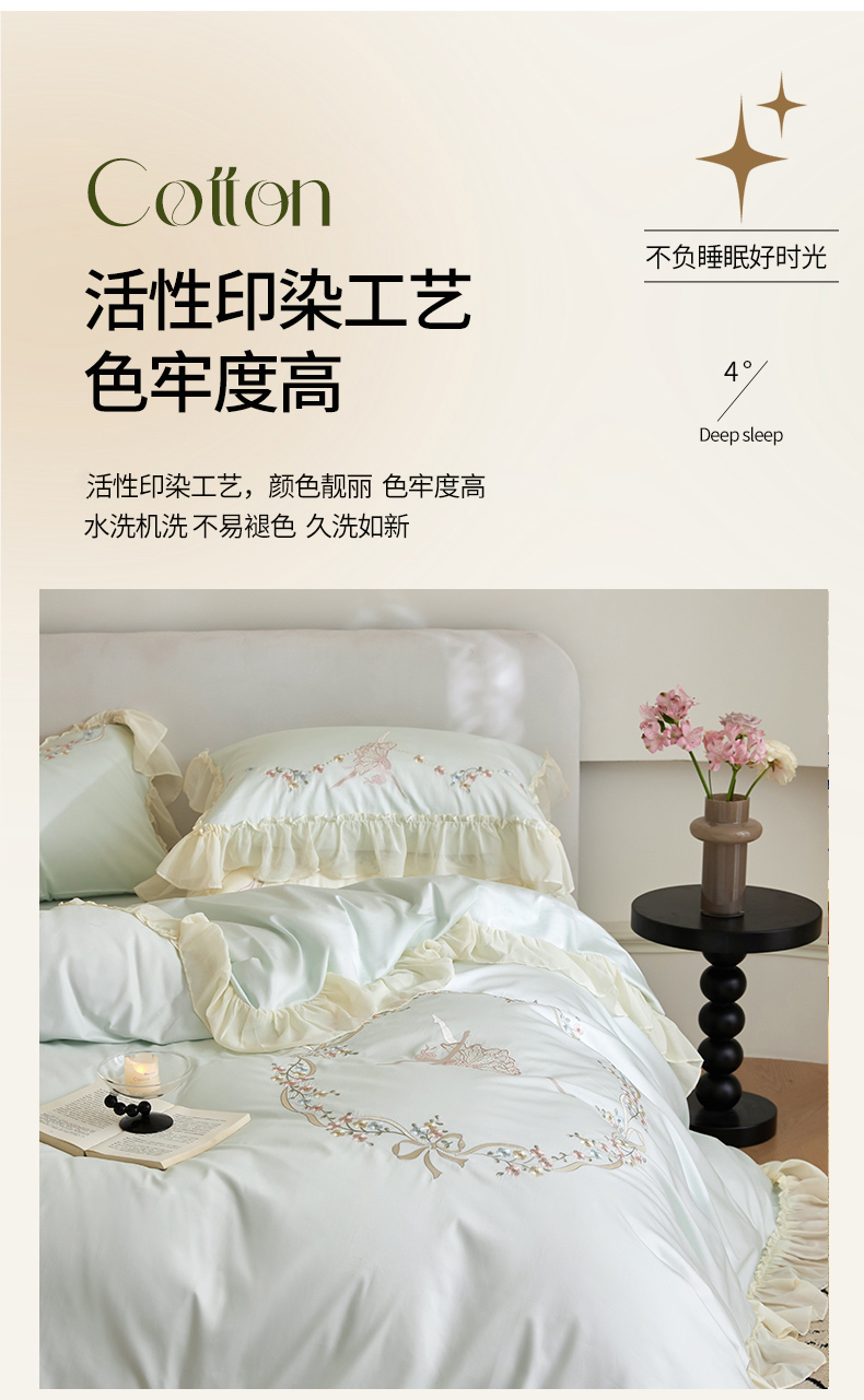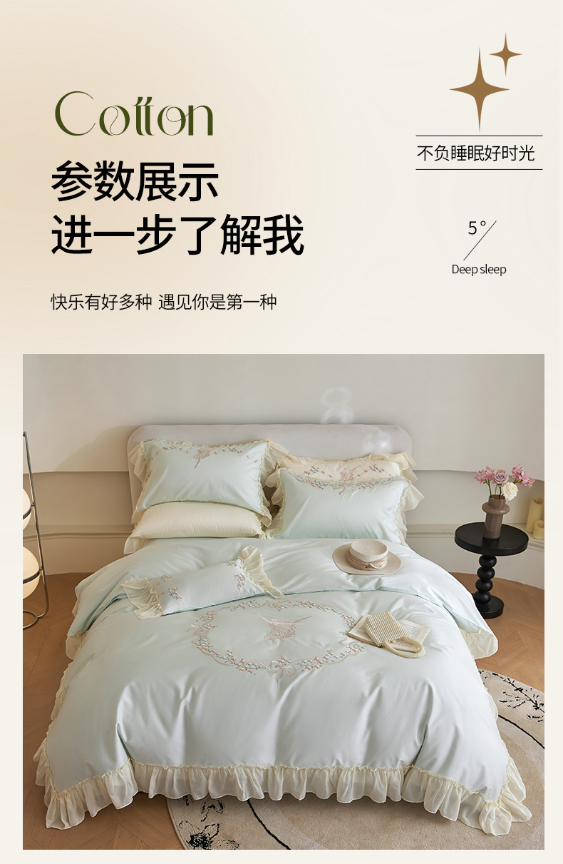 (总)嘉汀兰家居 2024新款100S长绒棉数码印花四件套系列,陌上花开-绿,纤羽-蓝