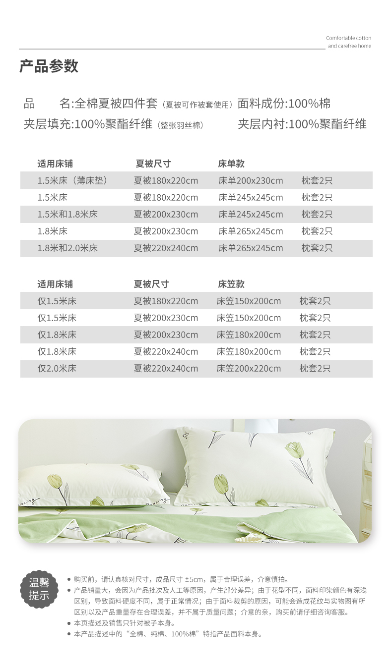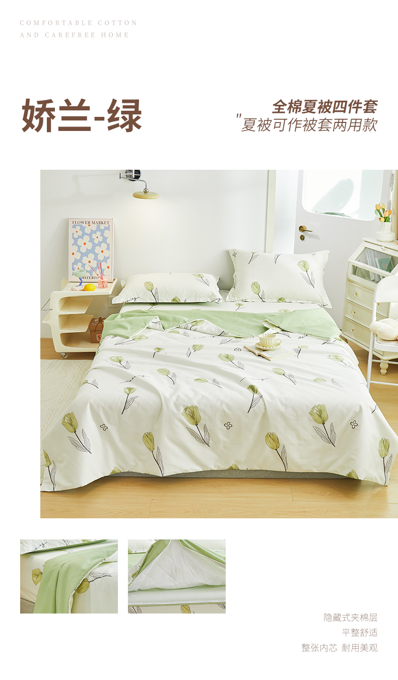 当前位置: 91家纺网 > 商品网购 > 床品套件 > 四件套 > 夏被四件套 > 元元被芯 2024新款全棉小清新夏被四件套-全棉夏被四件套 娇兰-绿