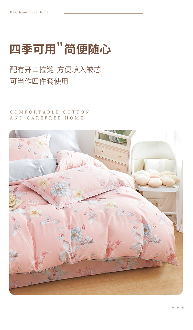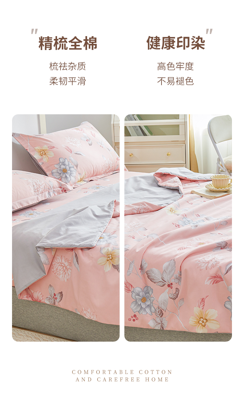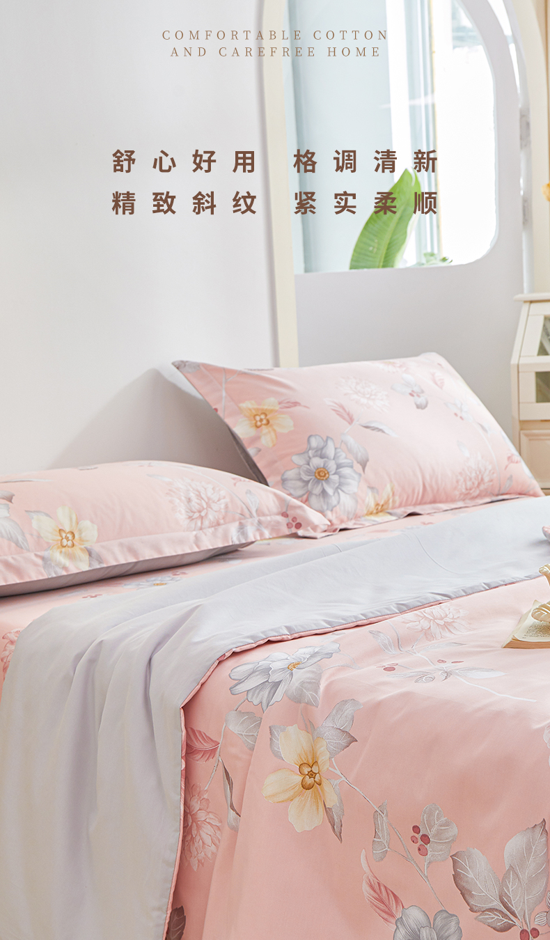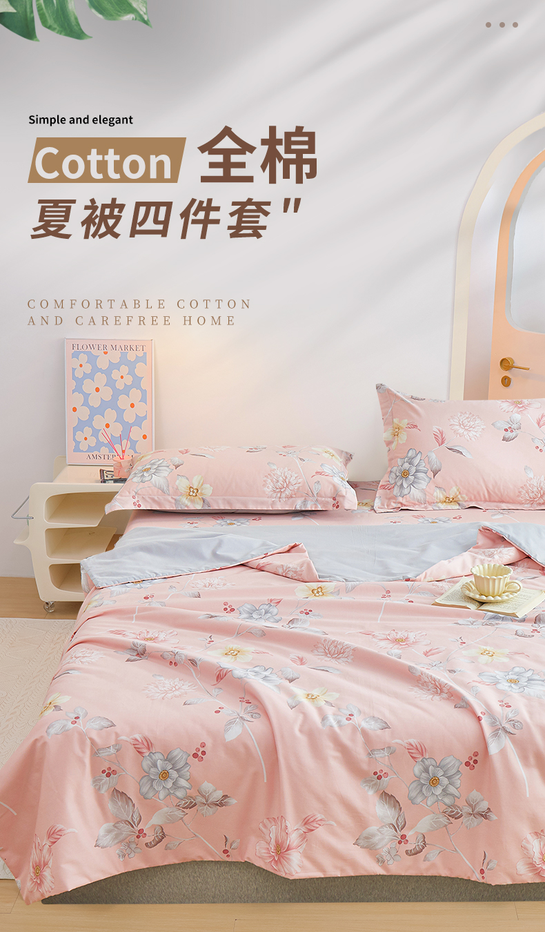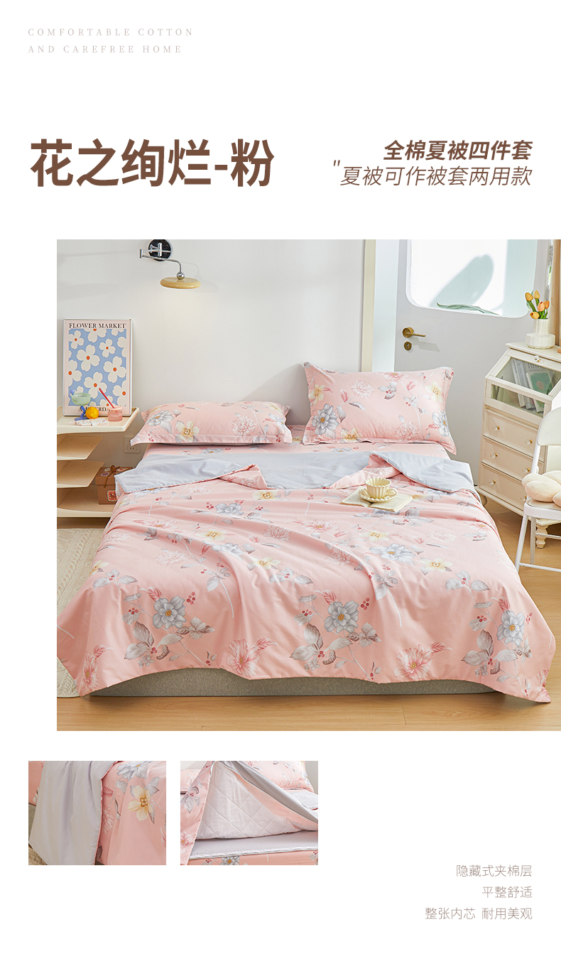 当前位置: 91家纺网 > 商品网购 > 床品套件 > 四件套 > 夏被四件套 > 元元被芯 2024新款全棉小清新夏被四件套-全棉夏被四件套 花之绚烂-粉