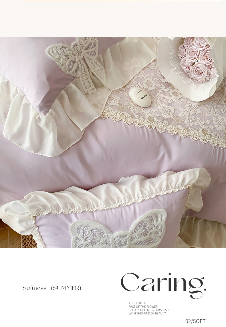 (总)吾欢心 2025新款糯小棉立体蝴蝶花边四件套-蝶恋花系列,蝶恋花白,蝶恋花粉,蝶恋花黄,蝶恋花咖,蝶恋花蓝,蝶恋花绿,蝶恋花紫