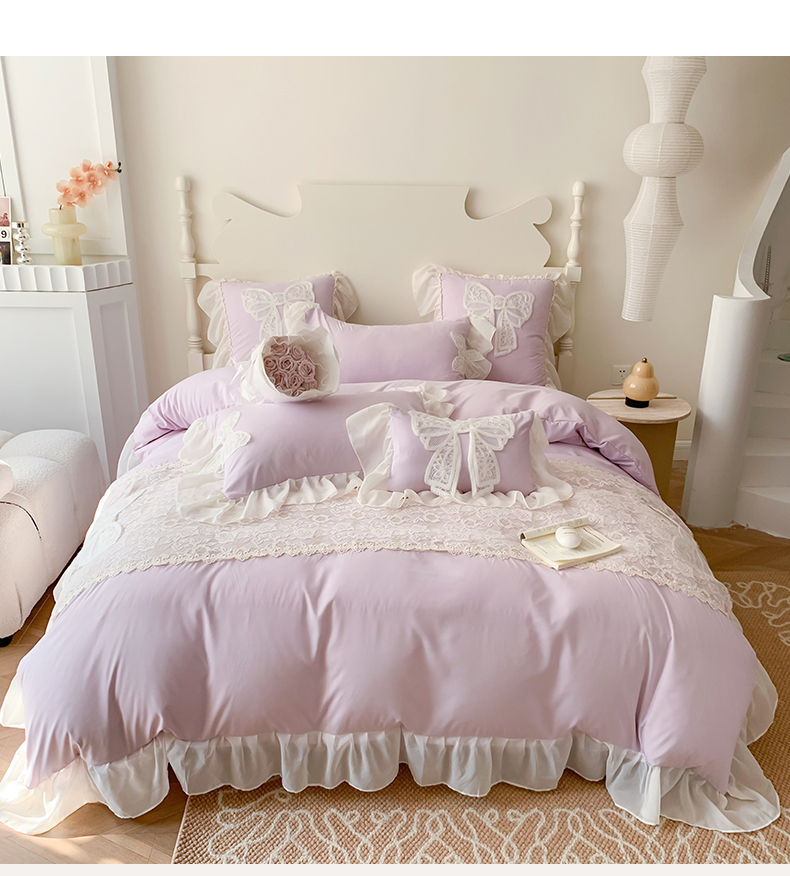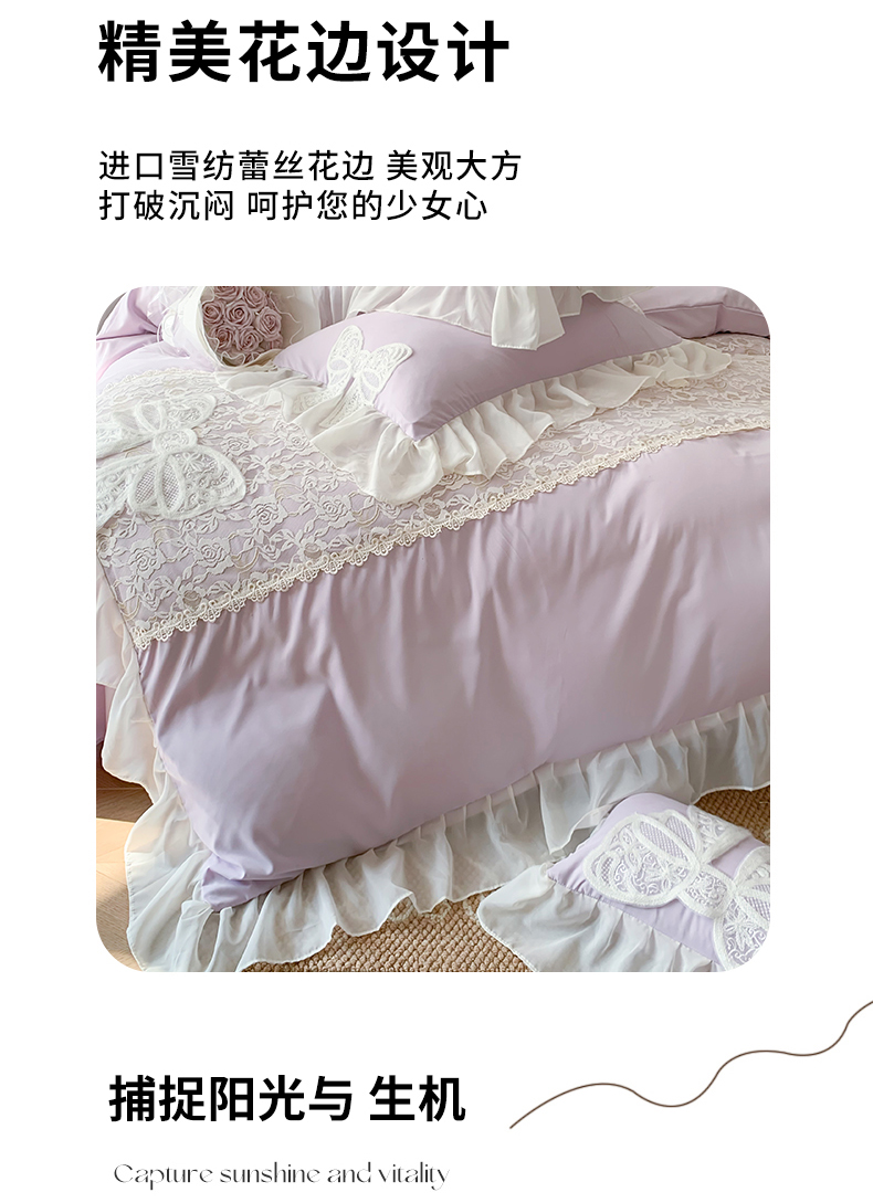 商品名称:吾欢心 2025新款蝴蝶仙子蕾丝花边四件套 蝴蝶仙子紫