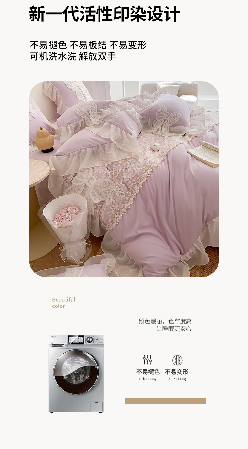 吾欢心 2025新款蝴蝶仙子蕾丝花边四件套 蝴蝶仙子紫
