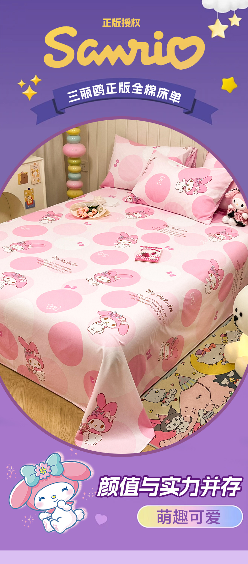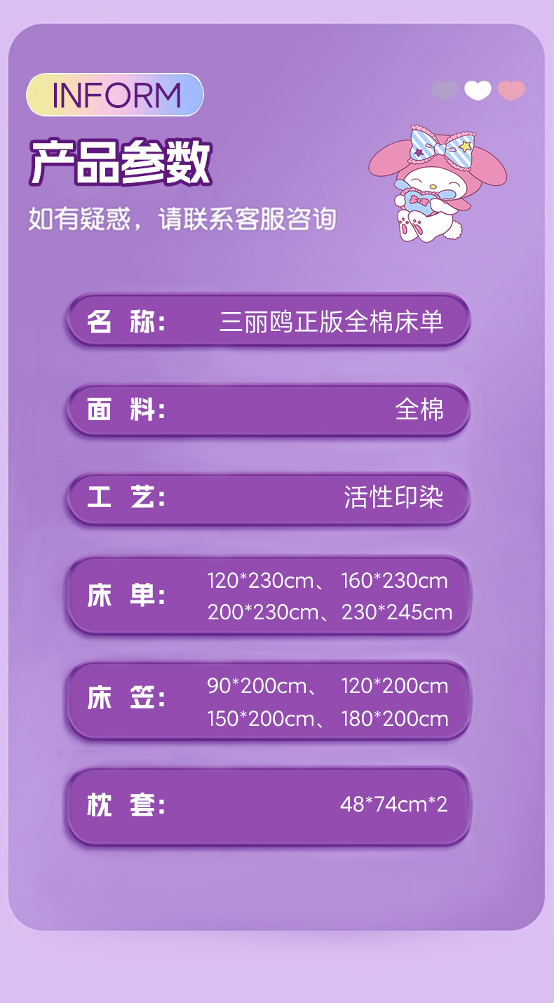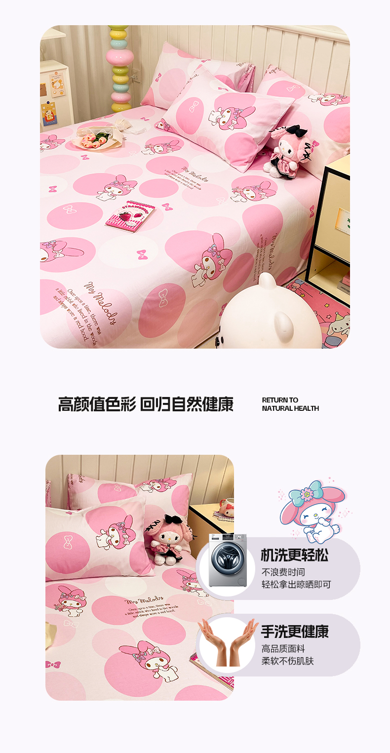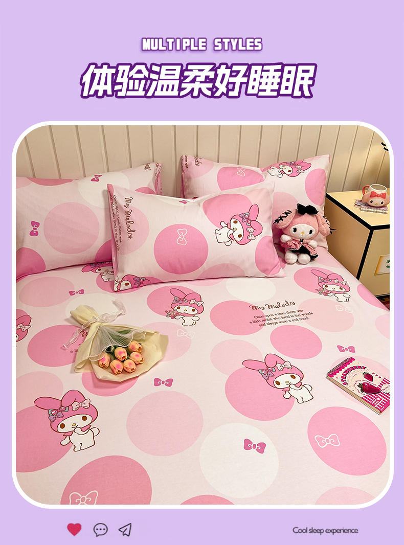 商品名称:沐辰 2024新款正版三丽鸥花型床笠 点点美乐蒂