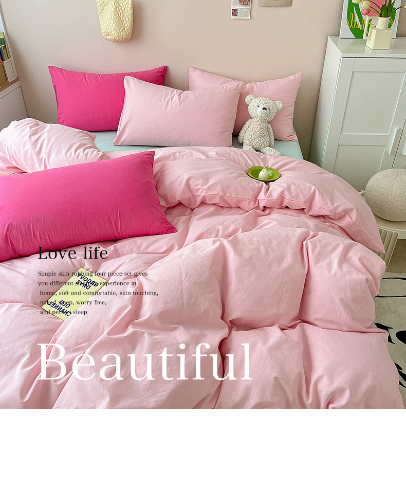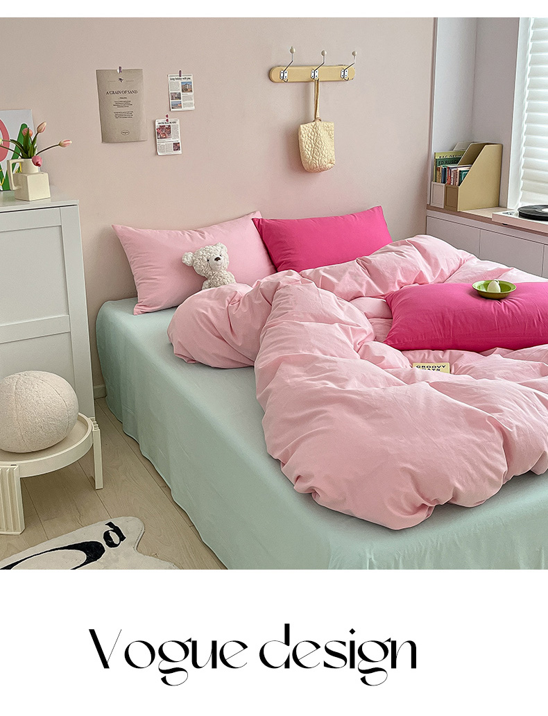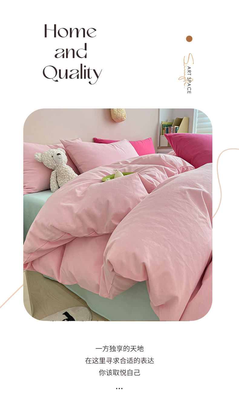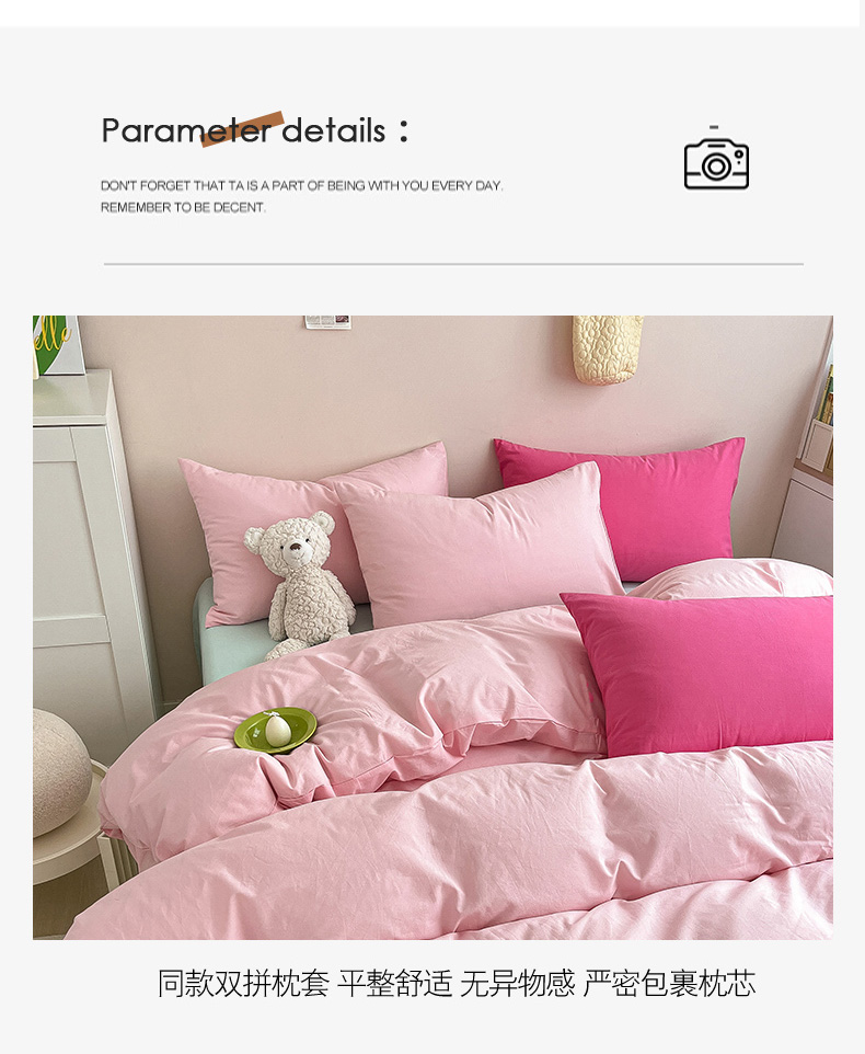 商品名称:寐居家纺 2024新款INS风全棉撞色单被套 ins风-樱花粉