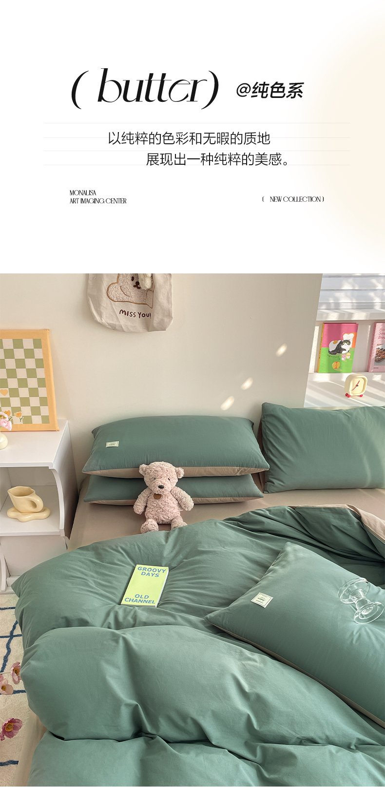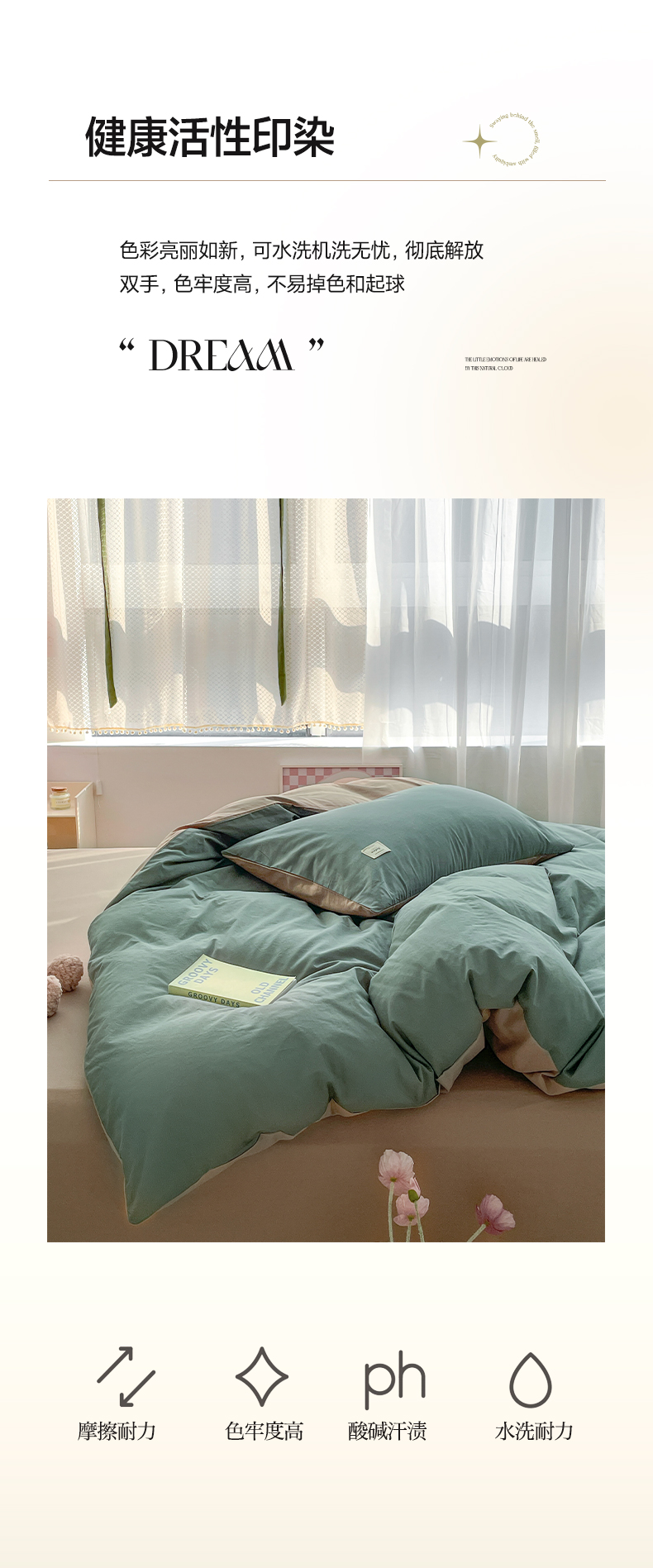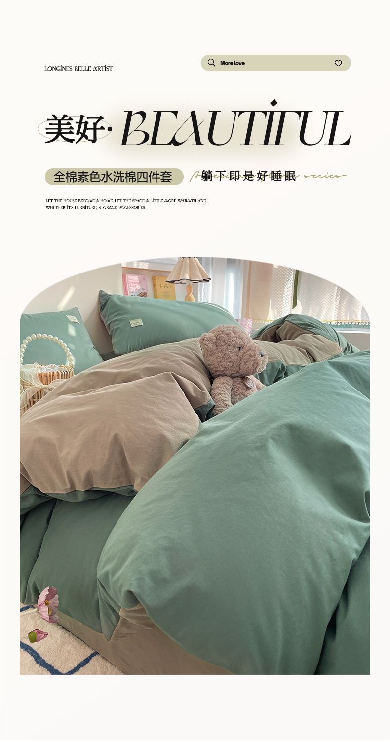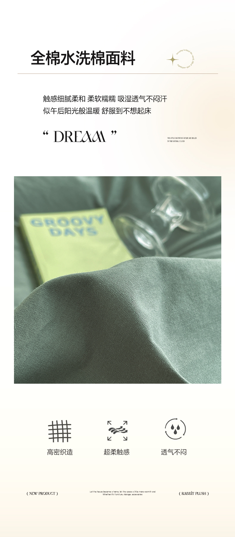 商品名称:雅居纺家纺 2024新款全棉素色水洗棉四件套 墨子绿卡其
