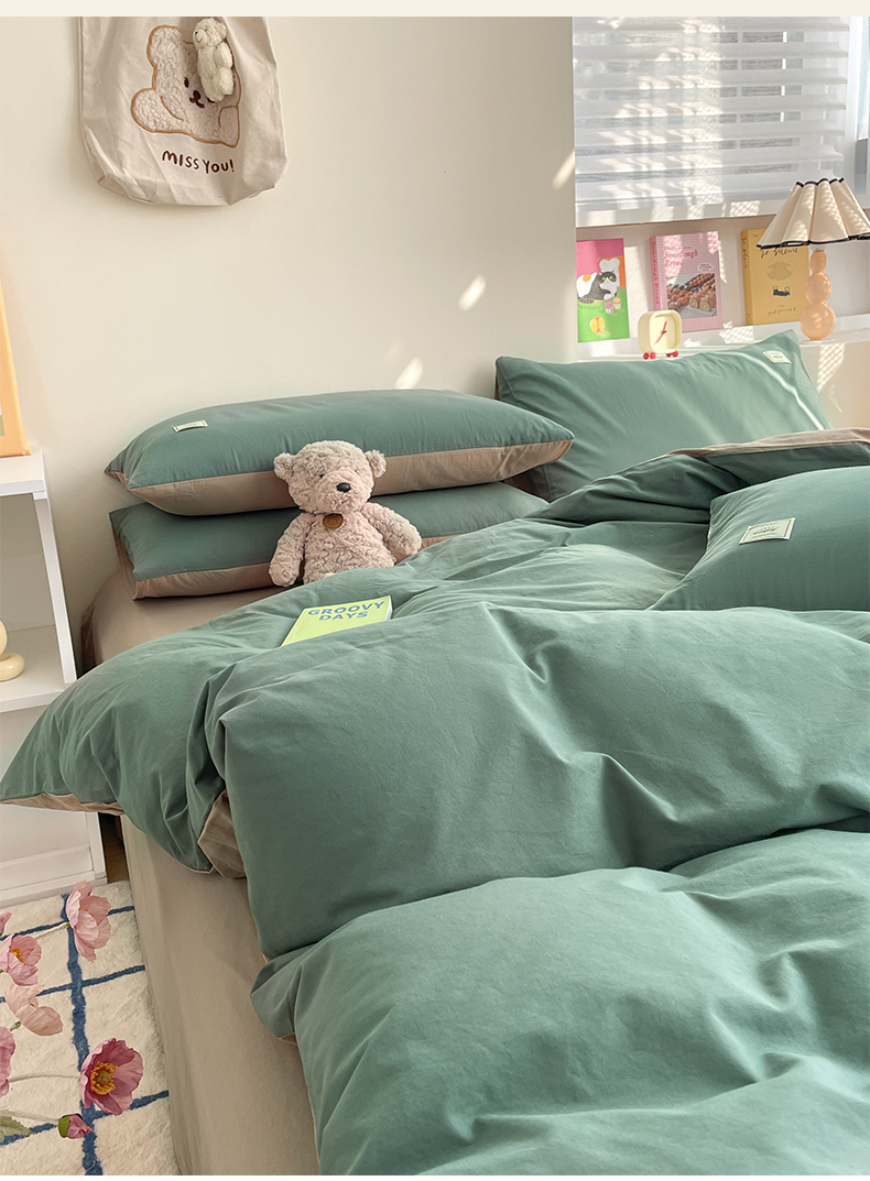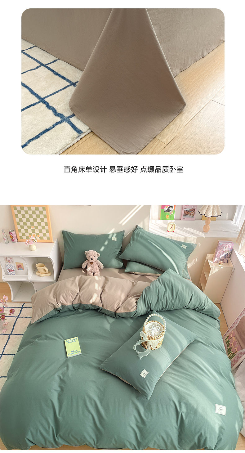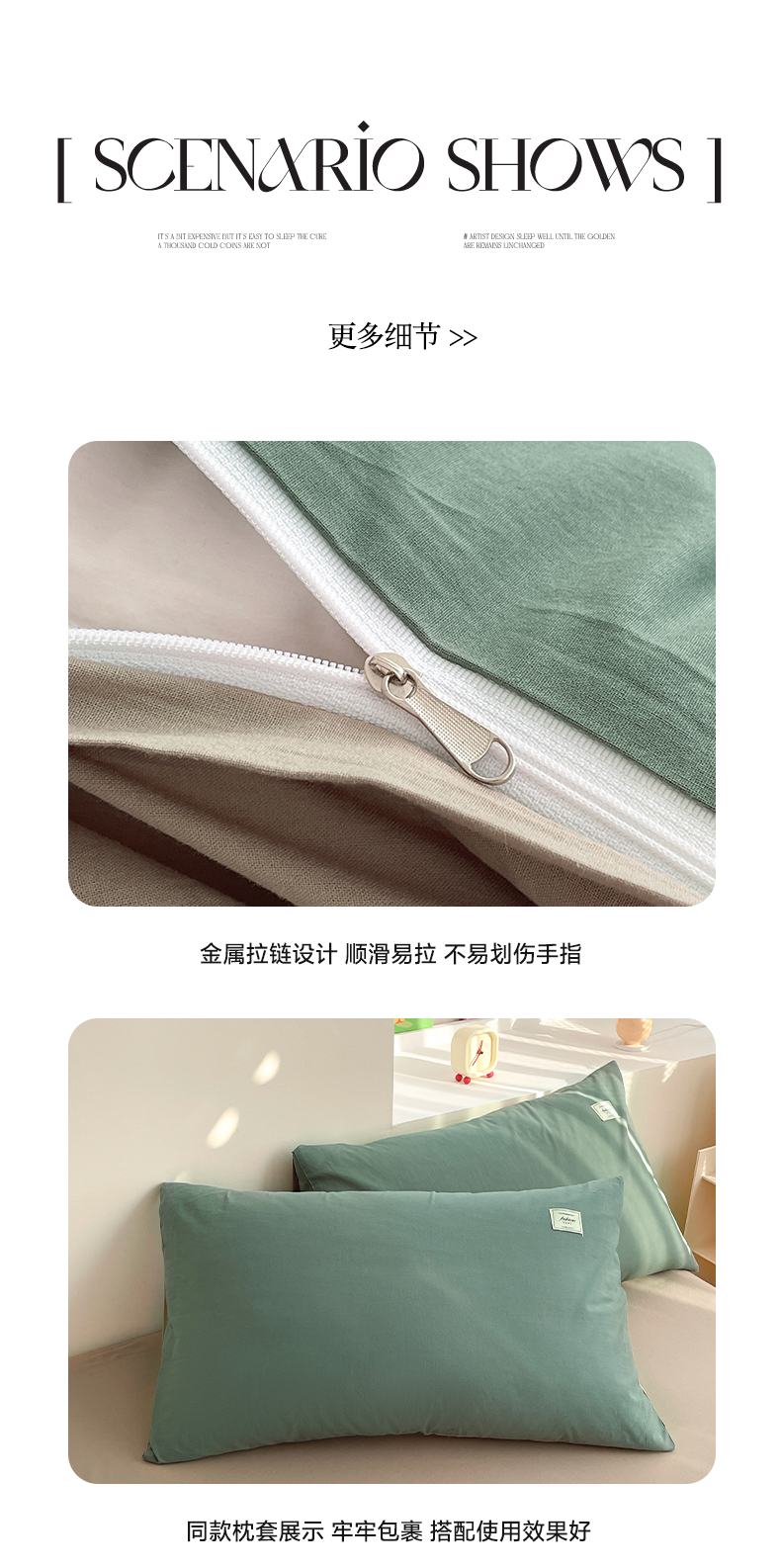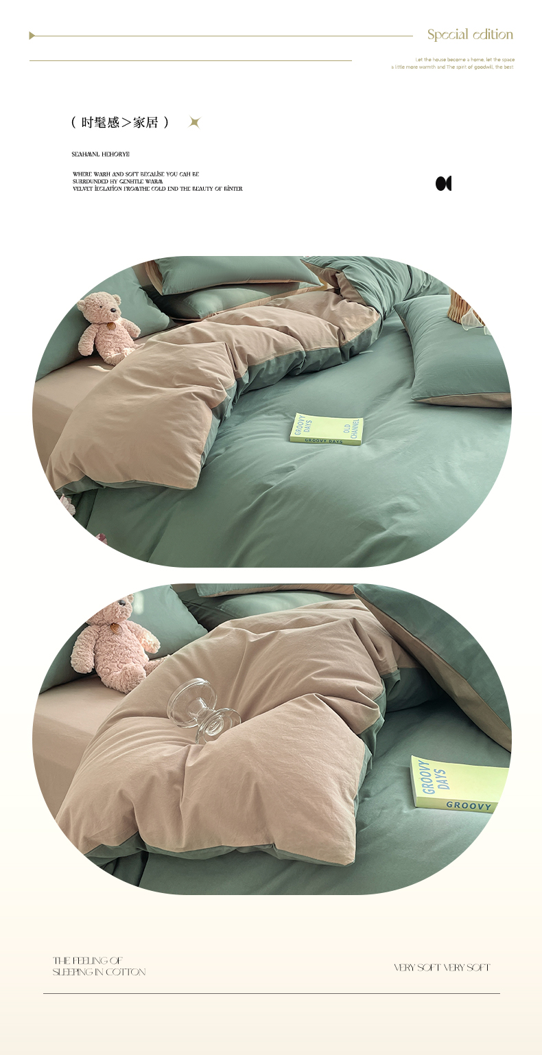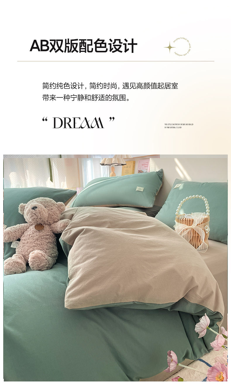商品名称:雅居纺家纺 2024新款全棉素色水洗棉四件套 墨子绿卡其