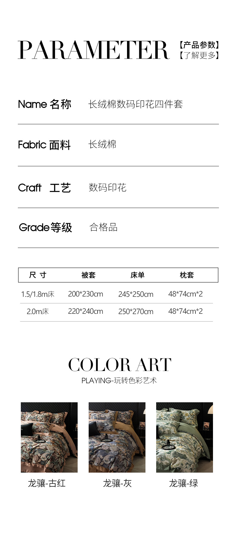 商品名称:(总)瑞雪 2024新款100S长绒棉数码印花款四件套-龙骧