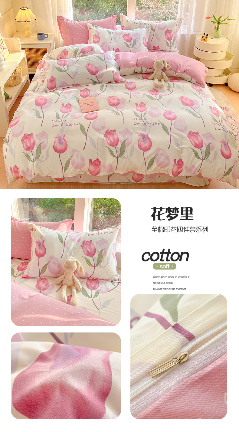 绵庭家纺 2024新款AB版全棉印花系列四件套 花梦里