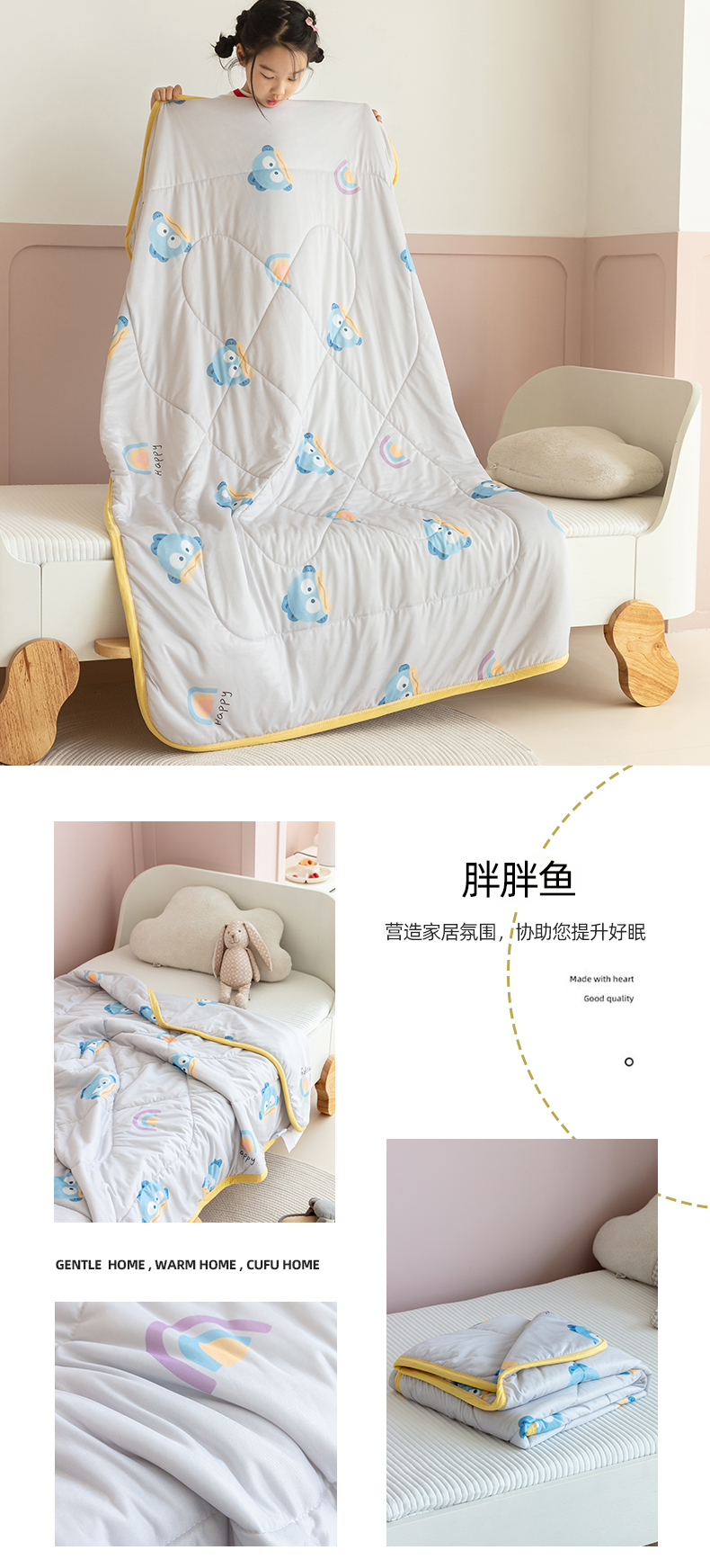 商品名称:艾佳宝贝 2024春夏凉感丝儿童糖果夏被 胖胖鱼