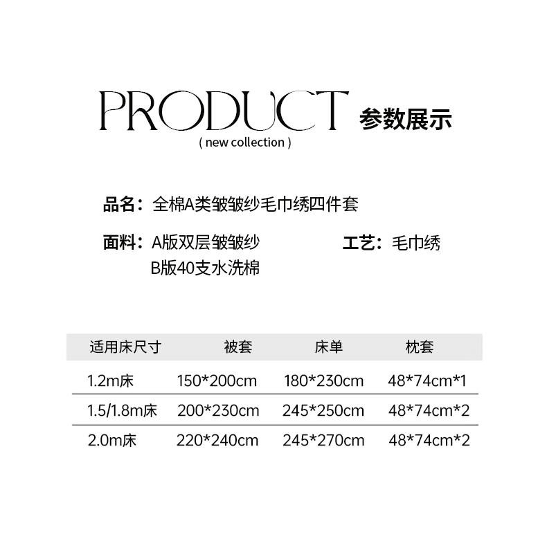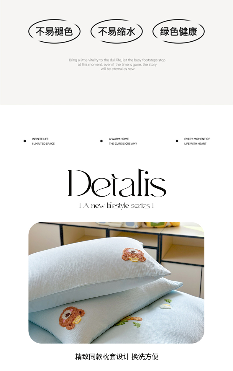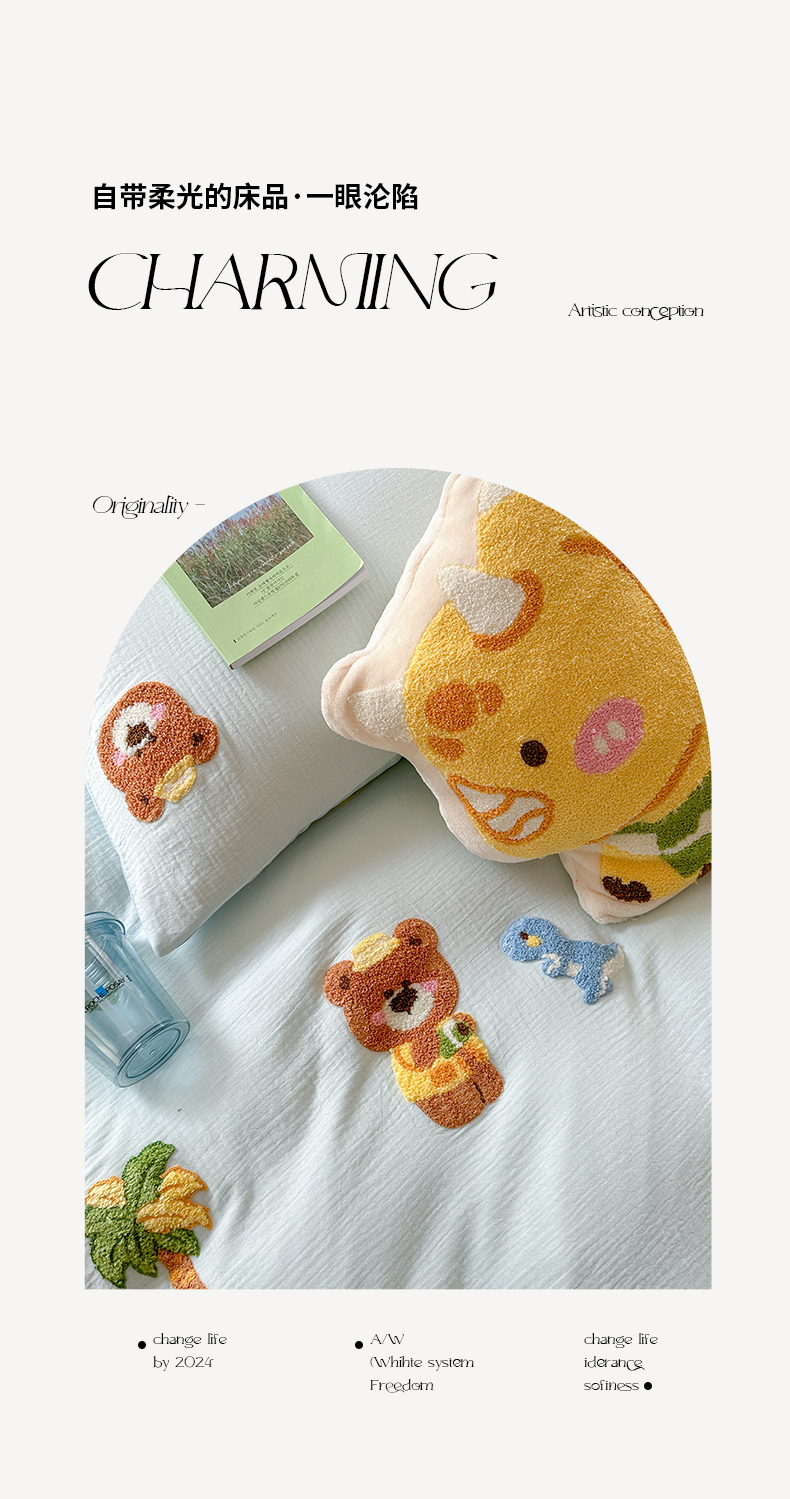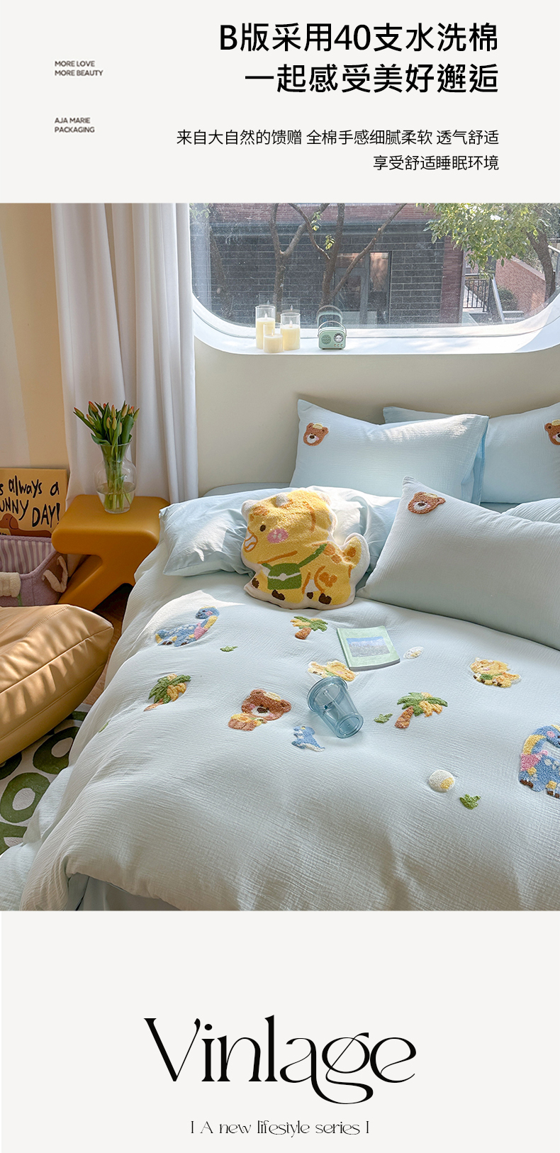 商品名称:眠屿 2024全棉A类皱皱纱毛巾绣四件套 恐龙熊熊