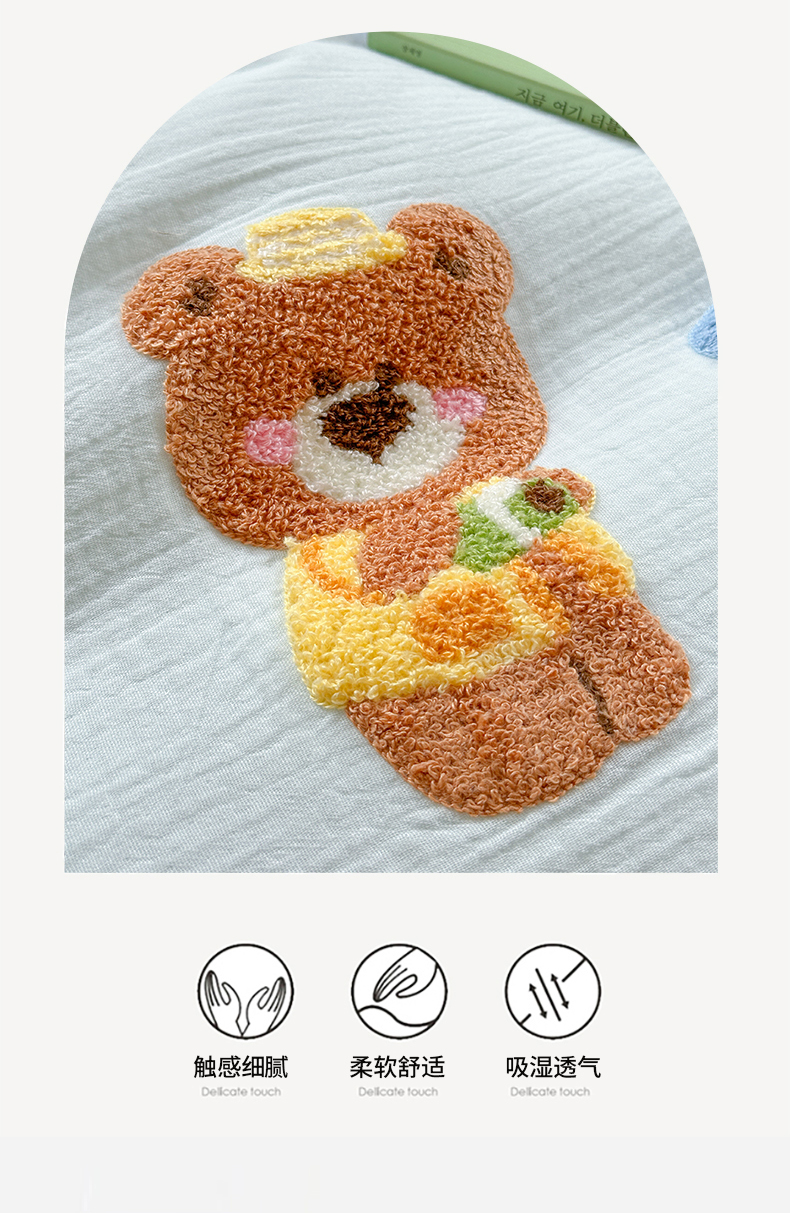 眠屿 2024全棉A类皱皱纱毛巾绣四件套 恐龙熊熊