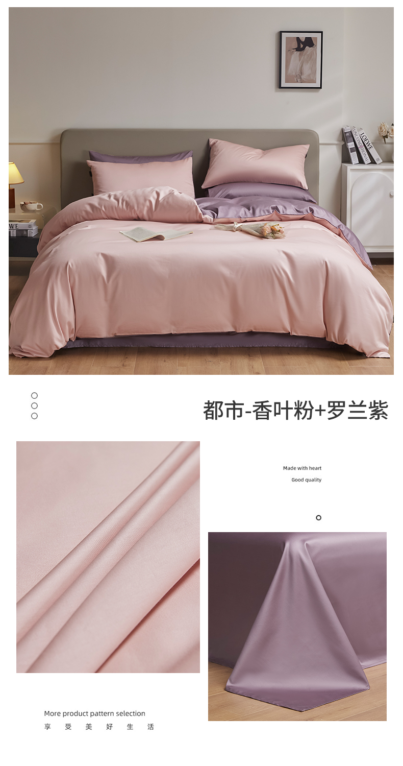 当前位置: 91家纺网 > 商品网购 > 床品套件 > 四件套 > 全棉普通四件套 > 慕色家纺 2024新款都市系列全棉纯色四件套 都市-香叶粉+罗兰紫