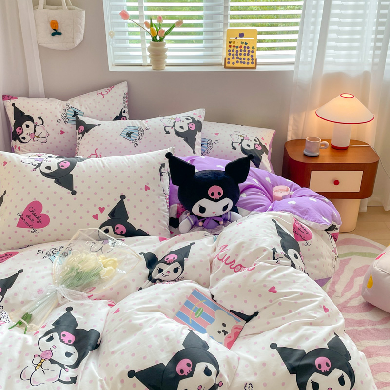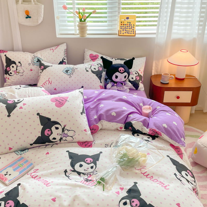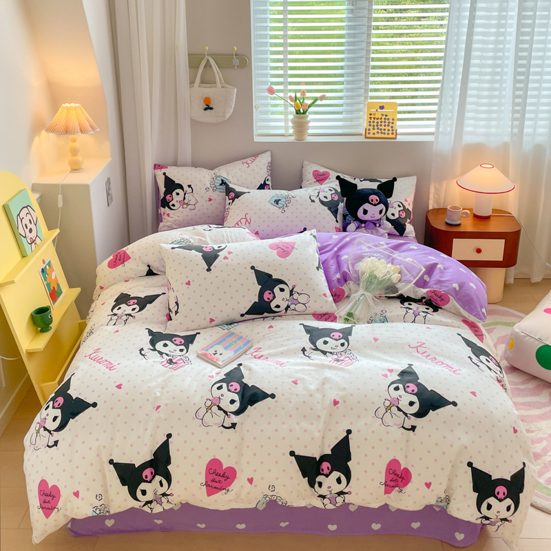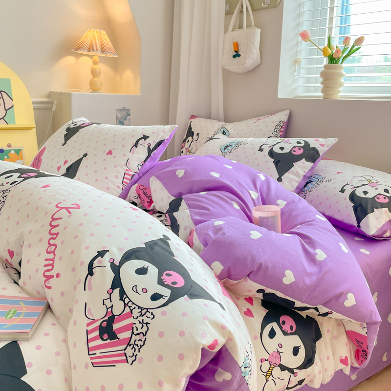 当前位置: 91家纺网 > 商品网购 > 床品套件 > 四件套 > 全棉普通四件套 > 博雅 2024新款全棉三丽鸥AB版活性印花四件套 甜筒库洛米