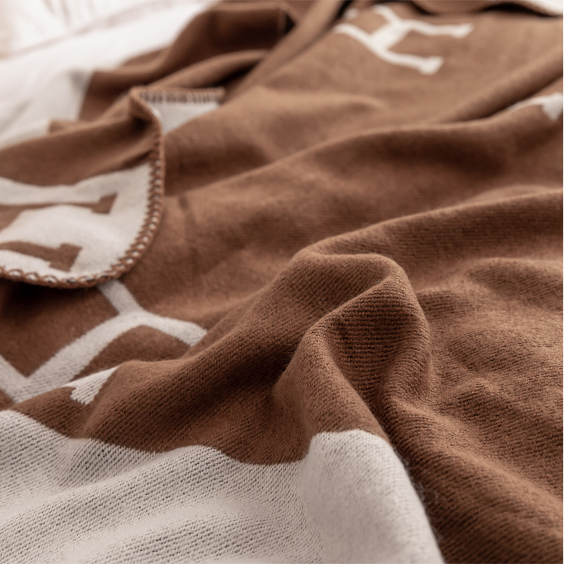 朴尔家纺-毛巾被 2024新款国际时尚风防羊毛手工缝制针织毯 摩卡咖啡