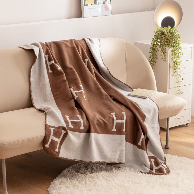 商品名称:朴尔家纺-毛巾被 2024新款国际时尚风防羊毛手工缝制针织毯 摩卡咖啡