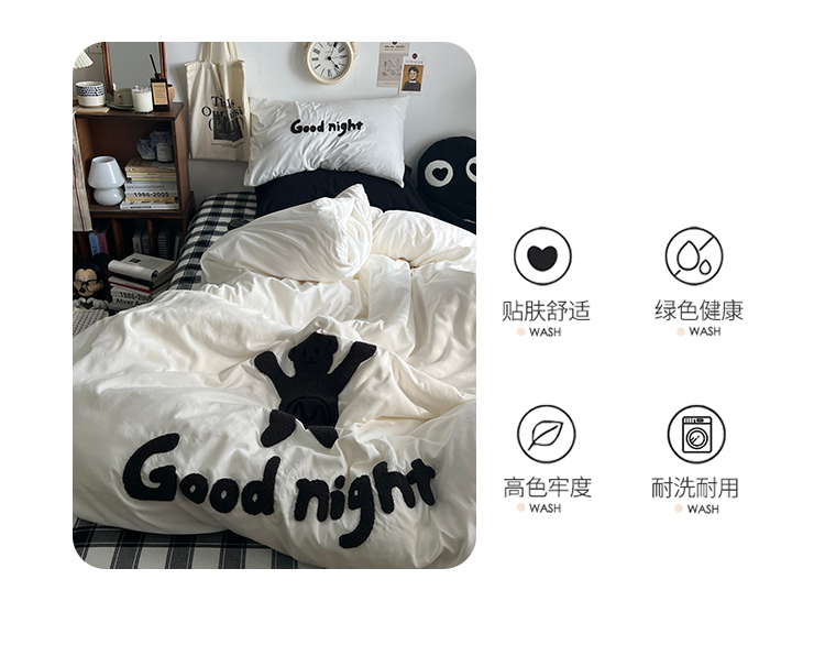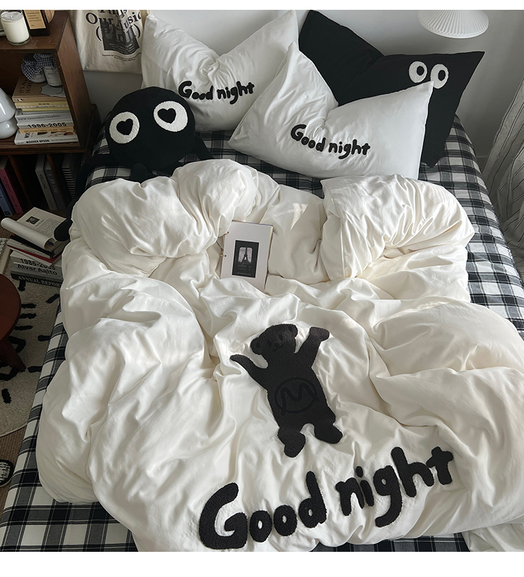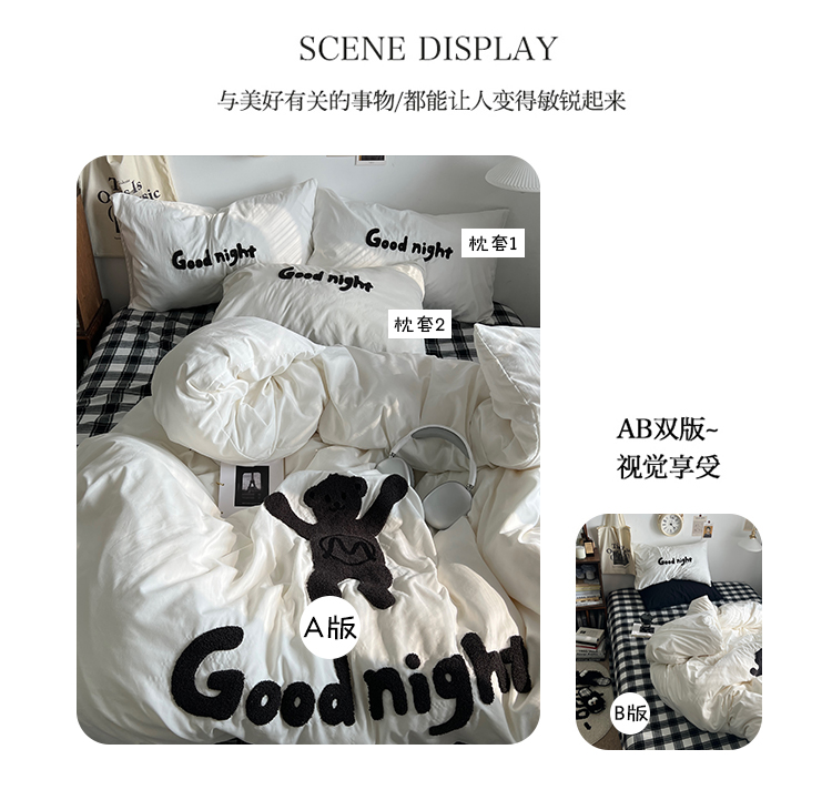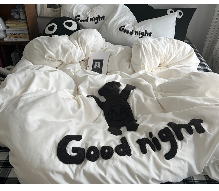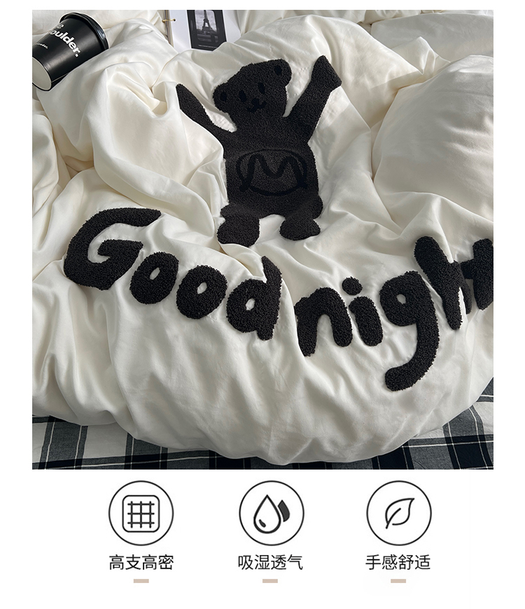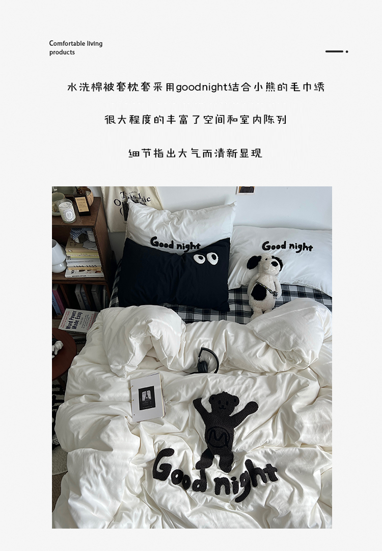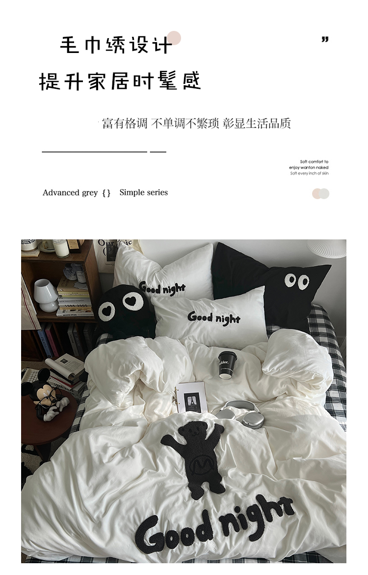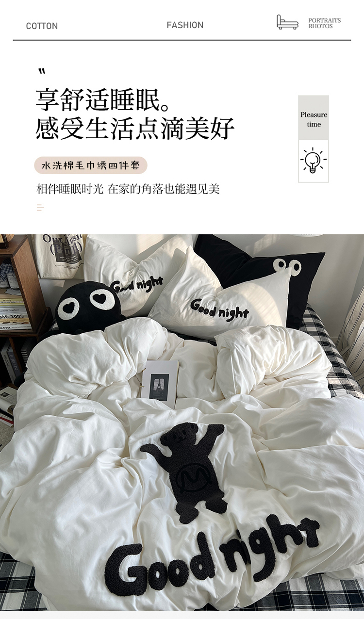 当前位置: 91家纺网 > 商品网购 > 床品套件 > 四件套 > 毛巾绣四件套 > 原素2024潮牌同款小熊大版毛巾绣四件套 Good night熊白格