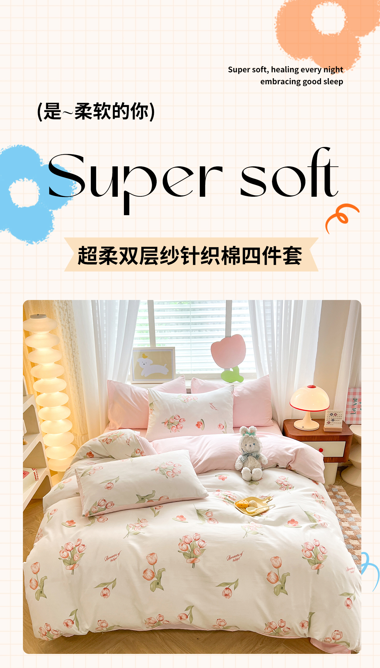 当前位置: 91家纺网 > 商品网购 > 床品套件 > 四件套 > 水洗棉四件套 > 妖妖家纺 2024新款超柔软糯水洗云朵棉印花四季款四件套 浪漫花开