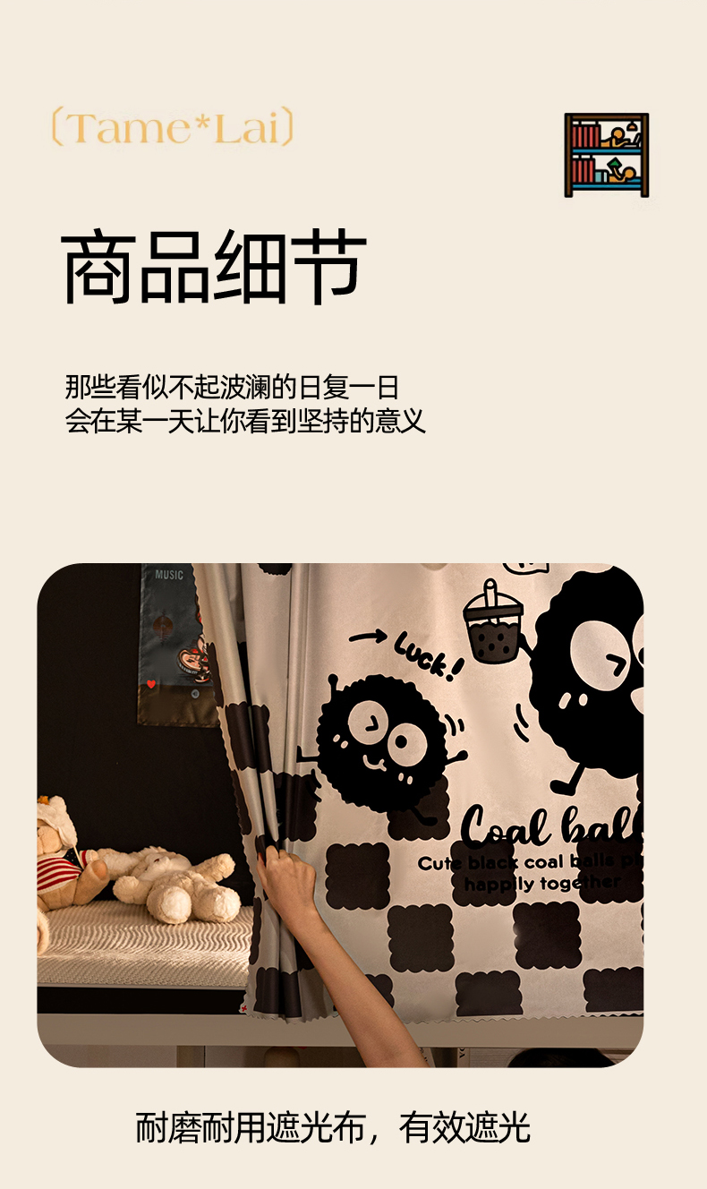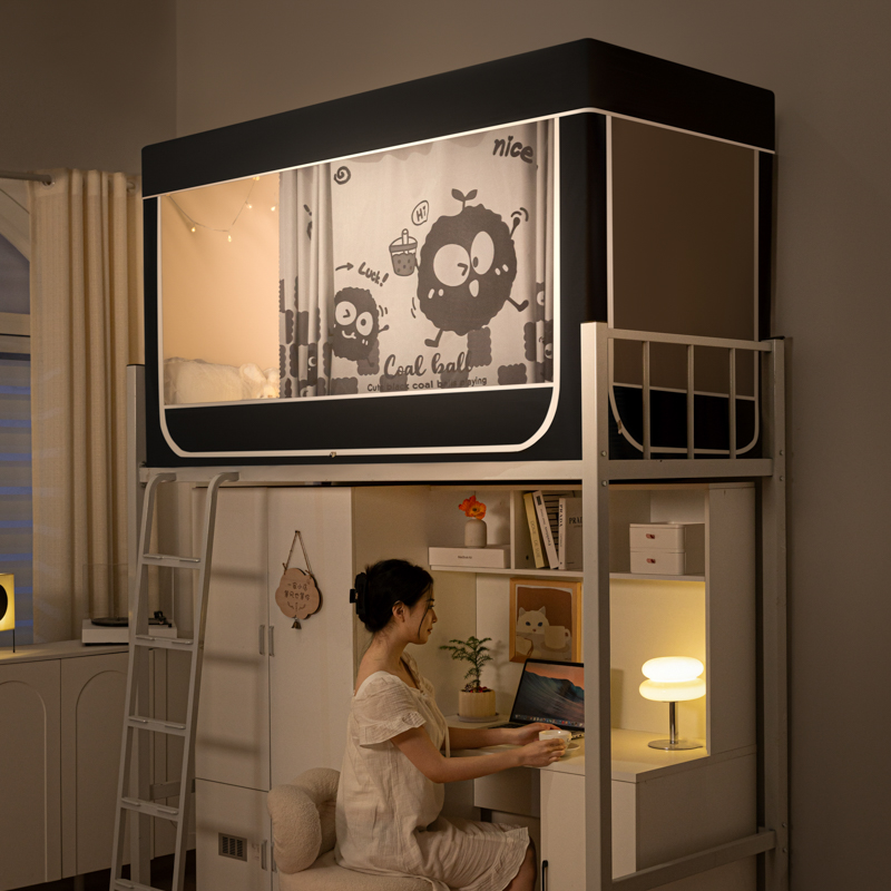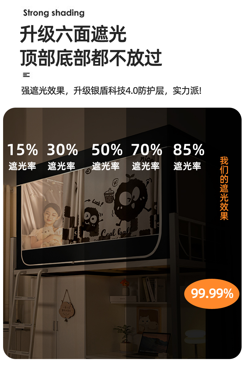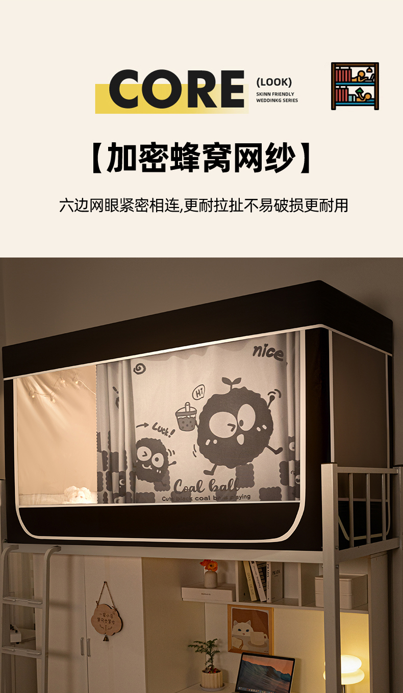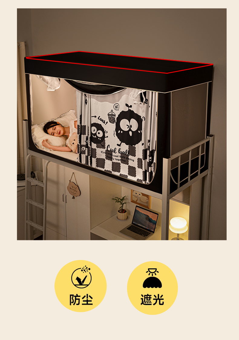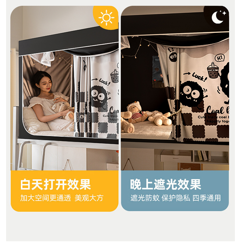 商品名称:博诺 2024新款99%加厚涂银层遮光卡通学生蚊帐 小煤球