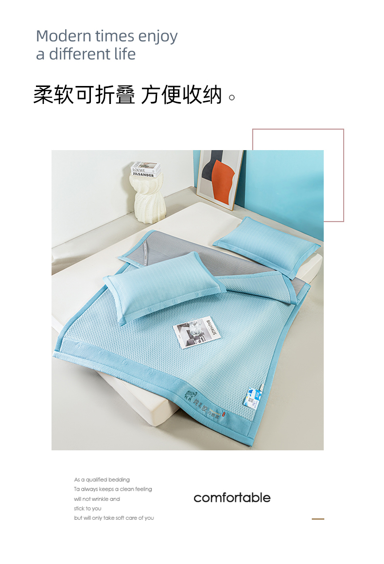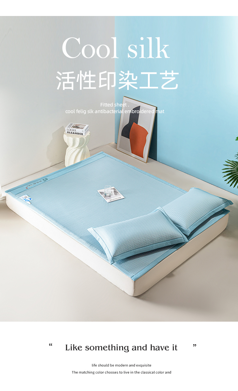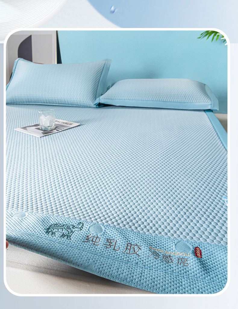 (总)凉百百 2024新款凉豆豆乳胶凉席冰丝席直播电商优选,蓝,粉,灰,绿