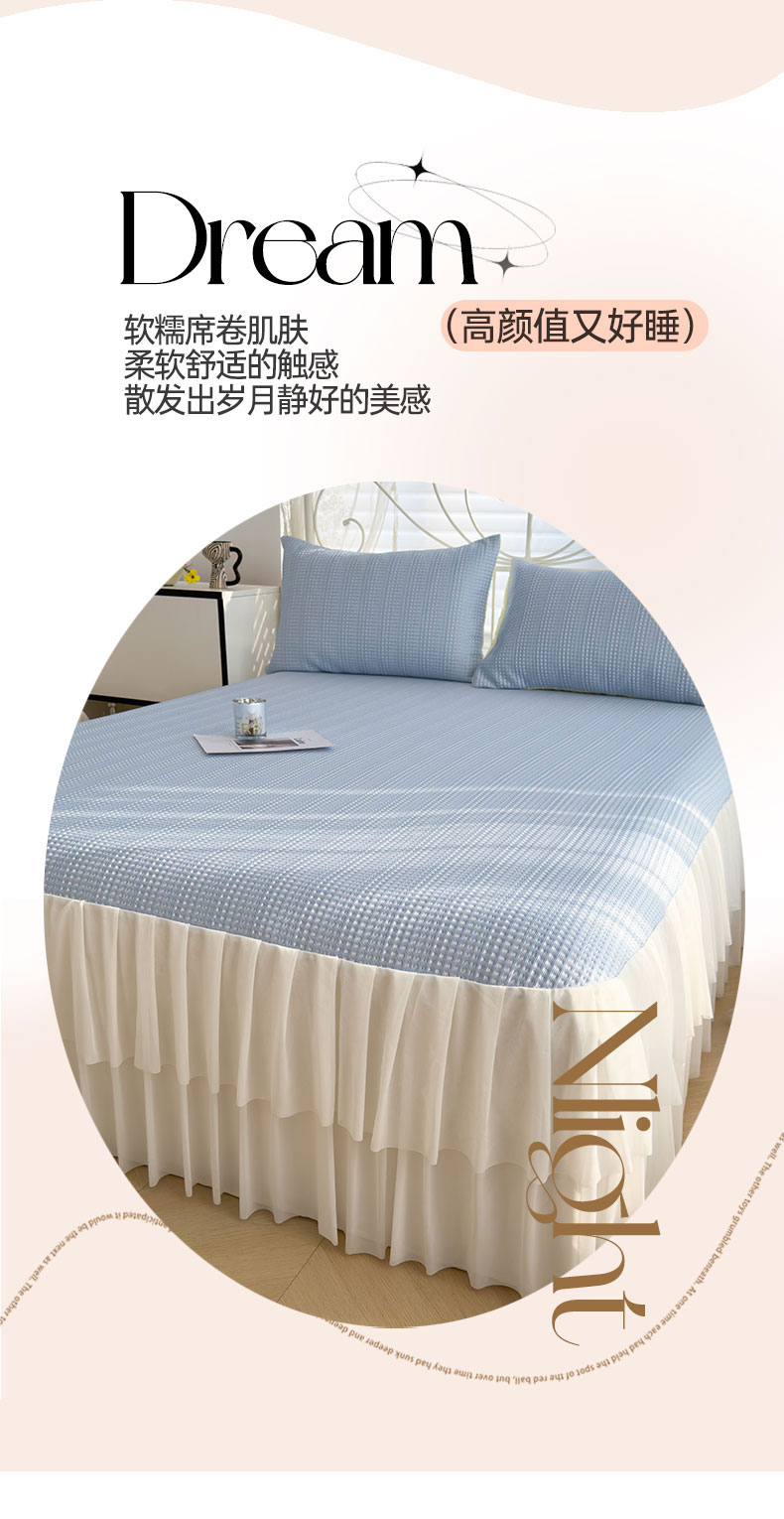 当前位置: 91家纺网 > 商品网购 > 床上用品 > 凉席 > 其他凉席 > 灰鲸 2025新款A类舒适凉豆豆华夫格床裙款凉席 华夫格-克莱因蓝床裙款