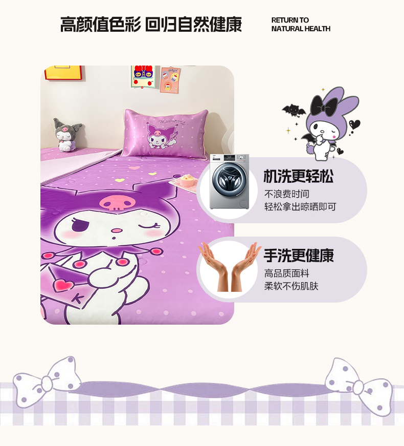 当前位置: 91家纺网 > 商品网购 > 床上用品 > 凉席 > 凉席套件 > 博雅 2024新款三丽鸥凉感丝凉席夏被套件 大版-信封库洛米