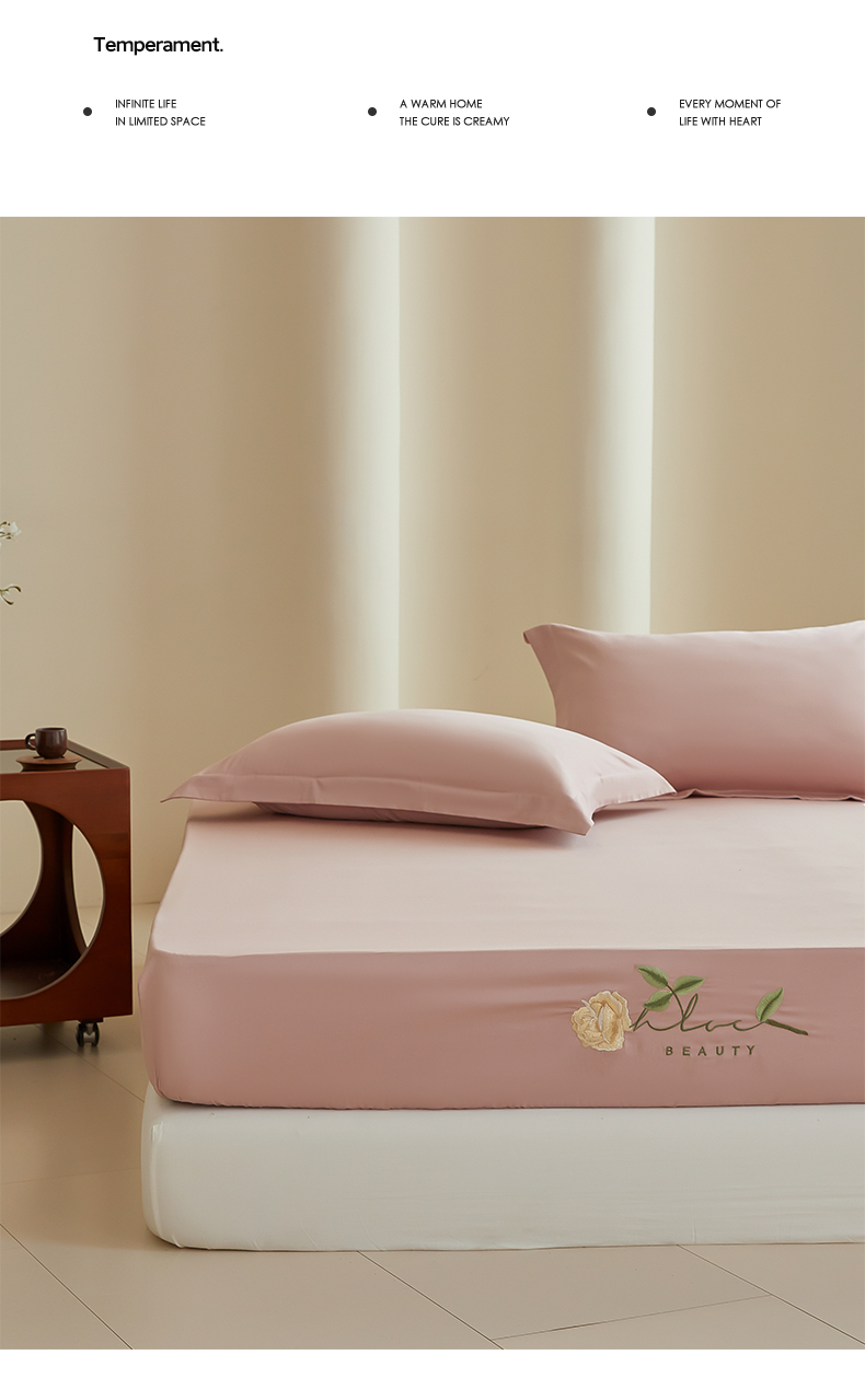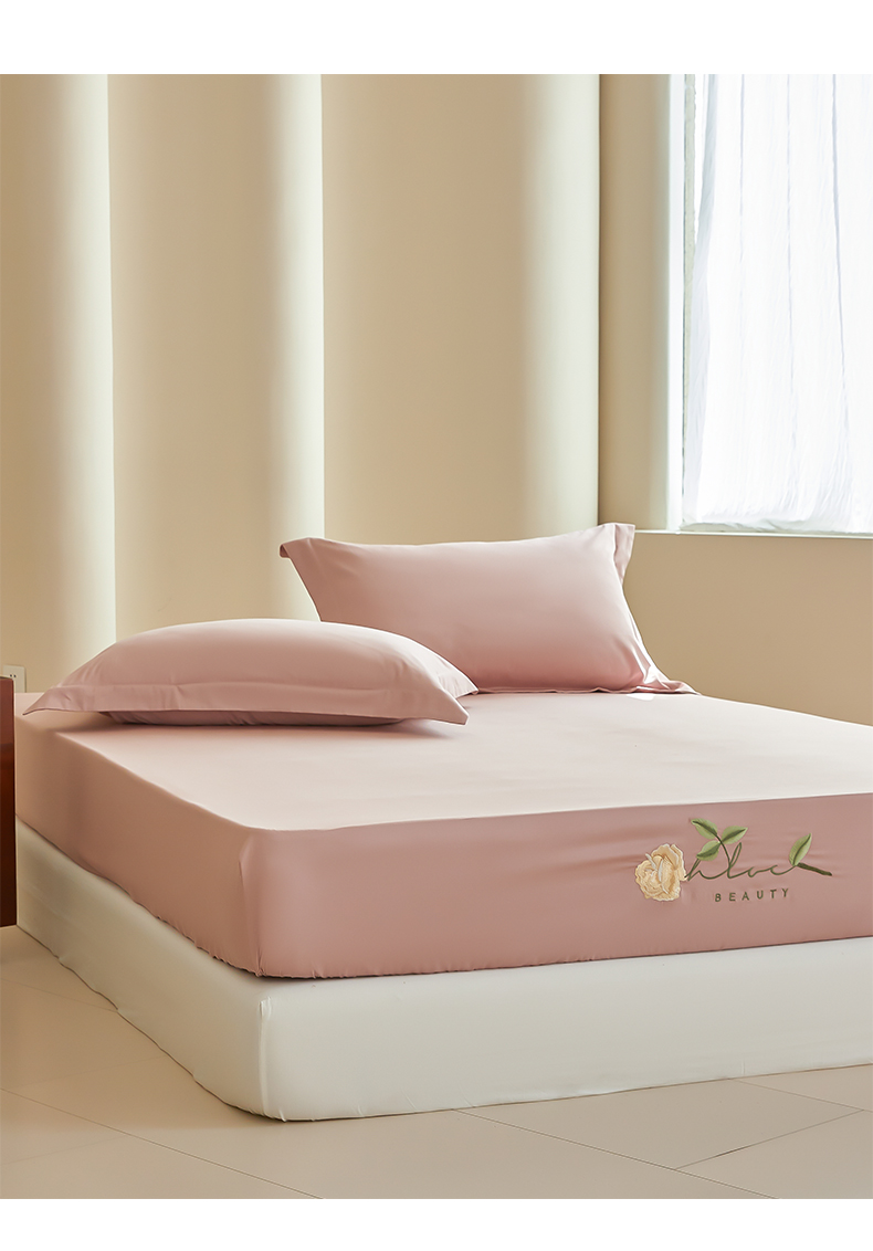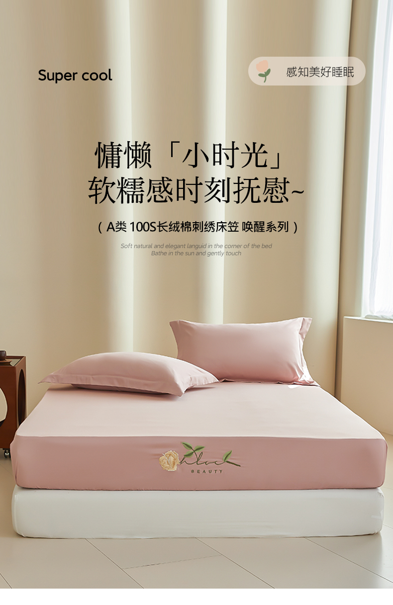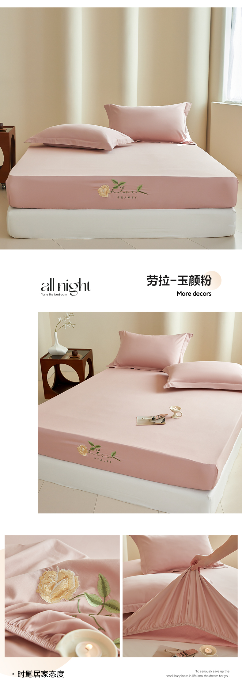 秀色家纺 2025新款A类50支贡缎长绒棉刺绣床笠 唤醒系列-劳拉 劳拉-玉颜粉