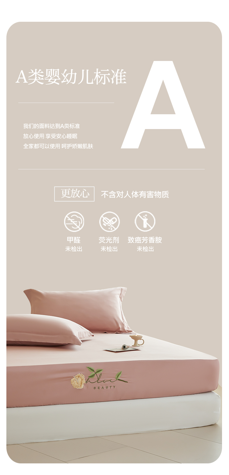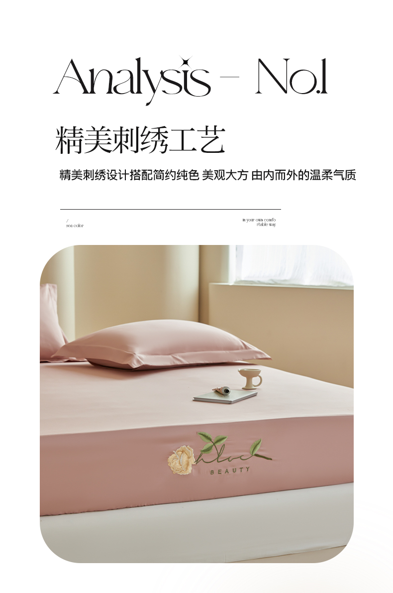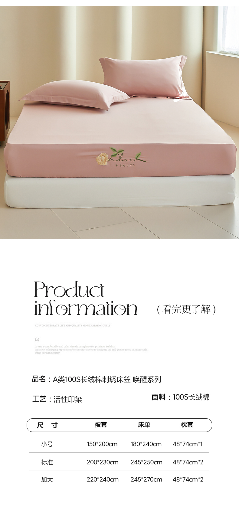 商品名称:秀色家纺 2025新款A类50支贡缎长绒棉刺绣床笠 唤醒系列-劳拉 劳拉-玉颜粉