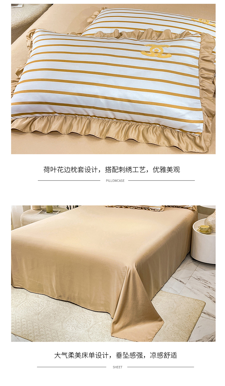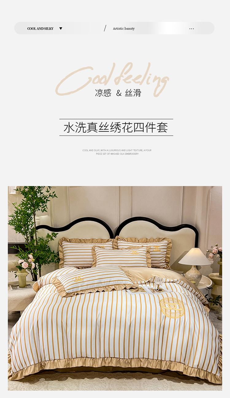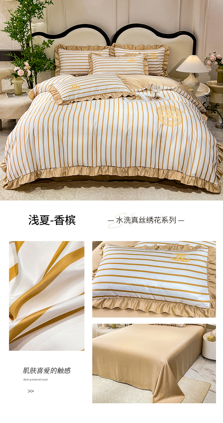 商品名称:新21 经年2025年 水洗真丝韩版四件套浅夏系列 浅夏-香槟