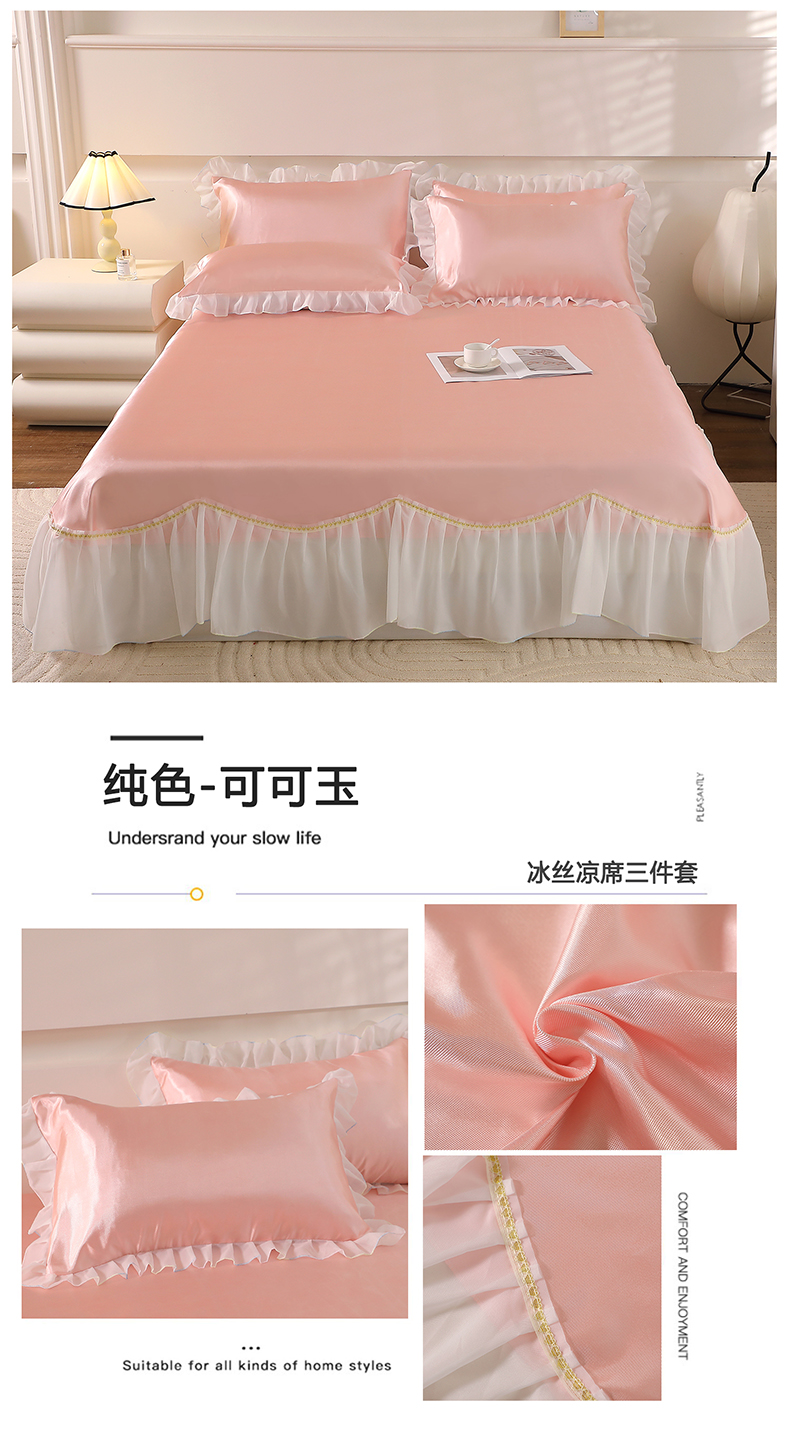 商品名称:雪夫人 2024新款冰丝凉席床裙三件套 可可玉