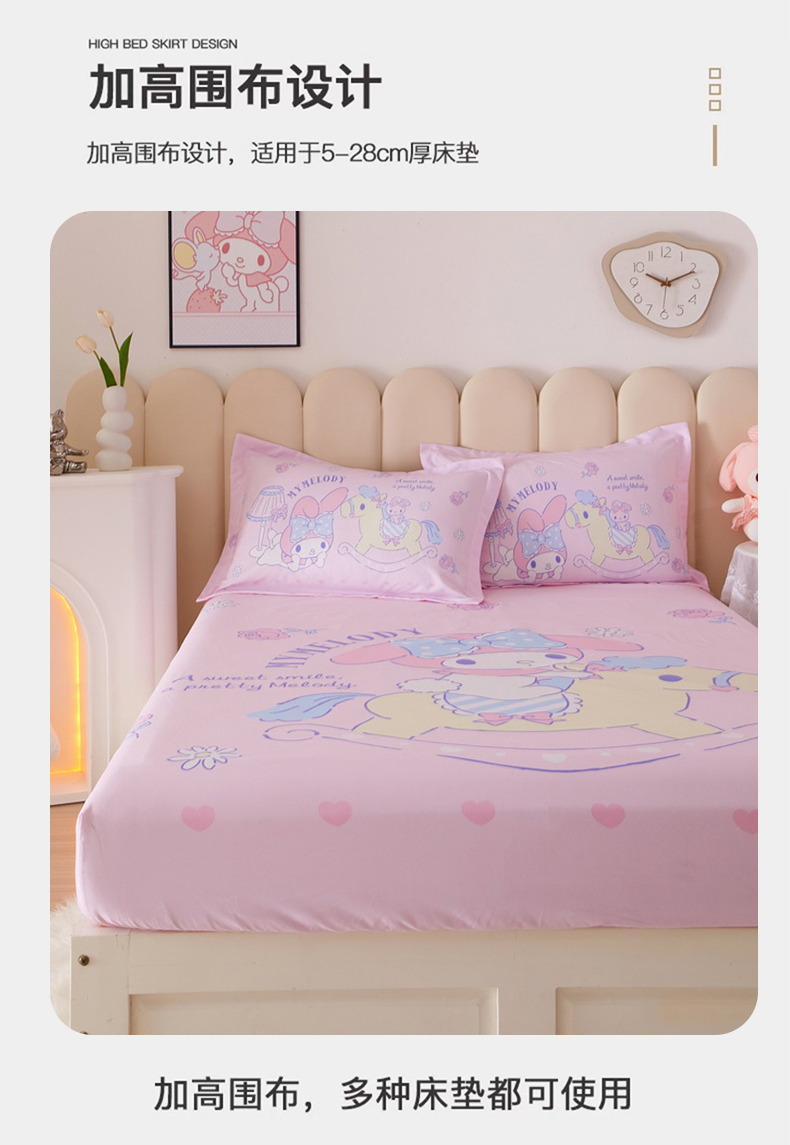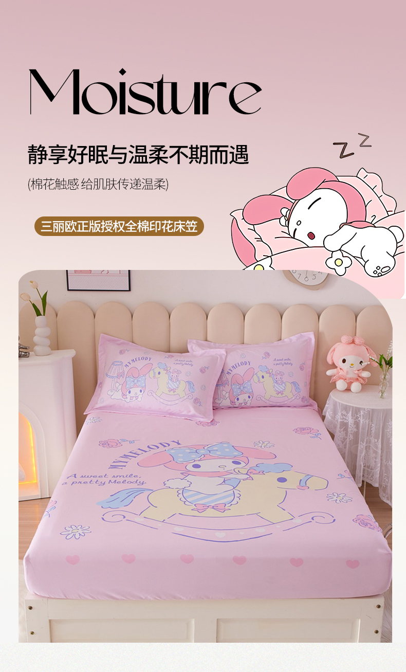 • 91家纺网 家纺一手货源 找家纺 蘭菲家纺 2024新款全棉大版三丽鸥卡通单床笠 小乐乐