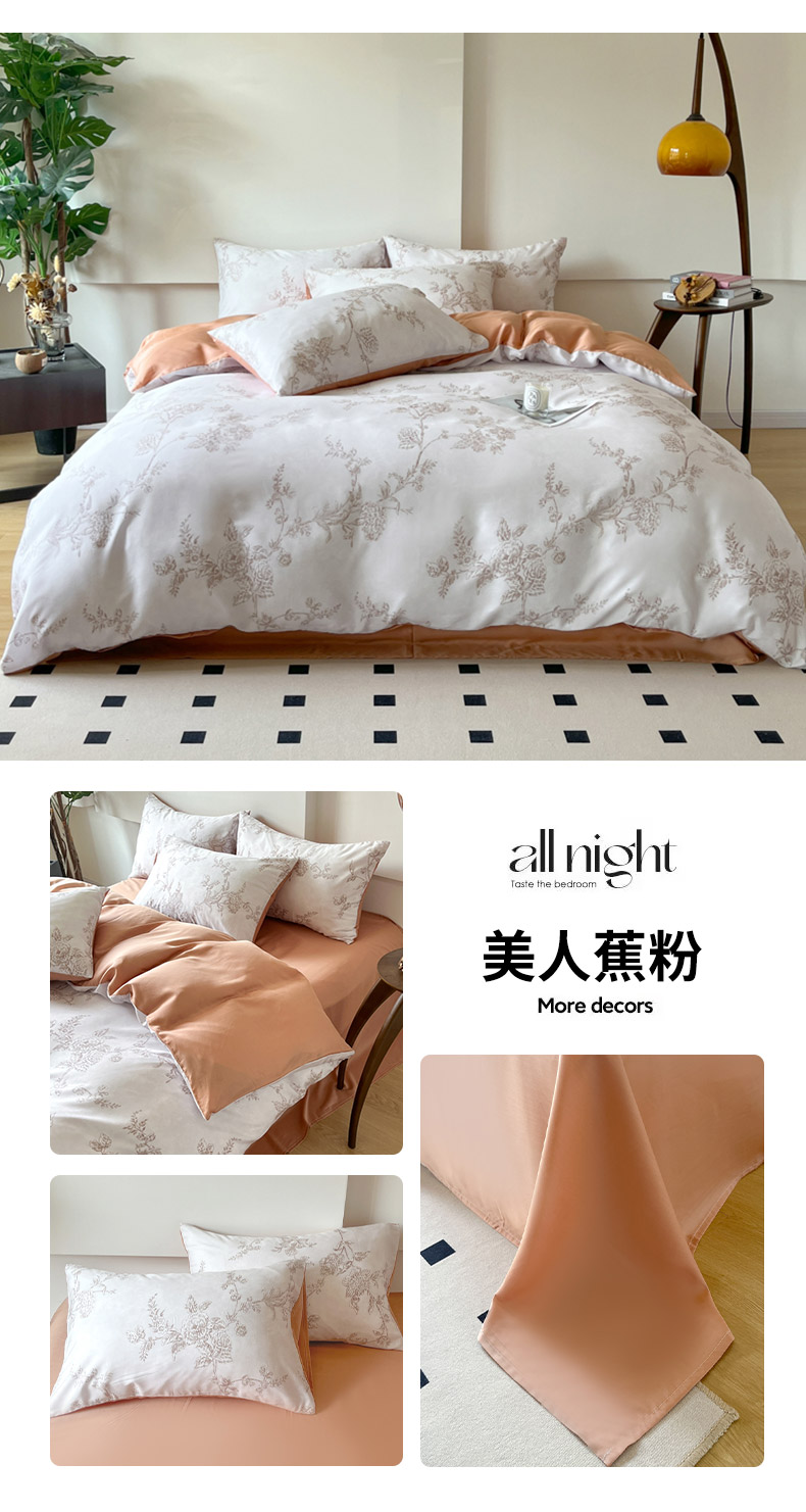 商品名称:千朵 2024新款莱赛尔天丝四件套 美人蕉粉
