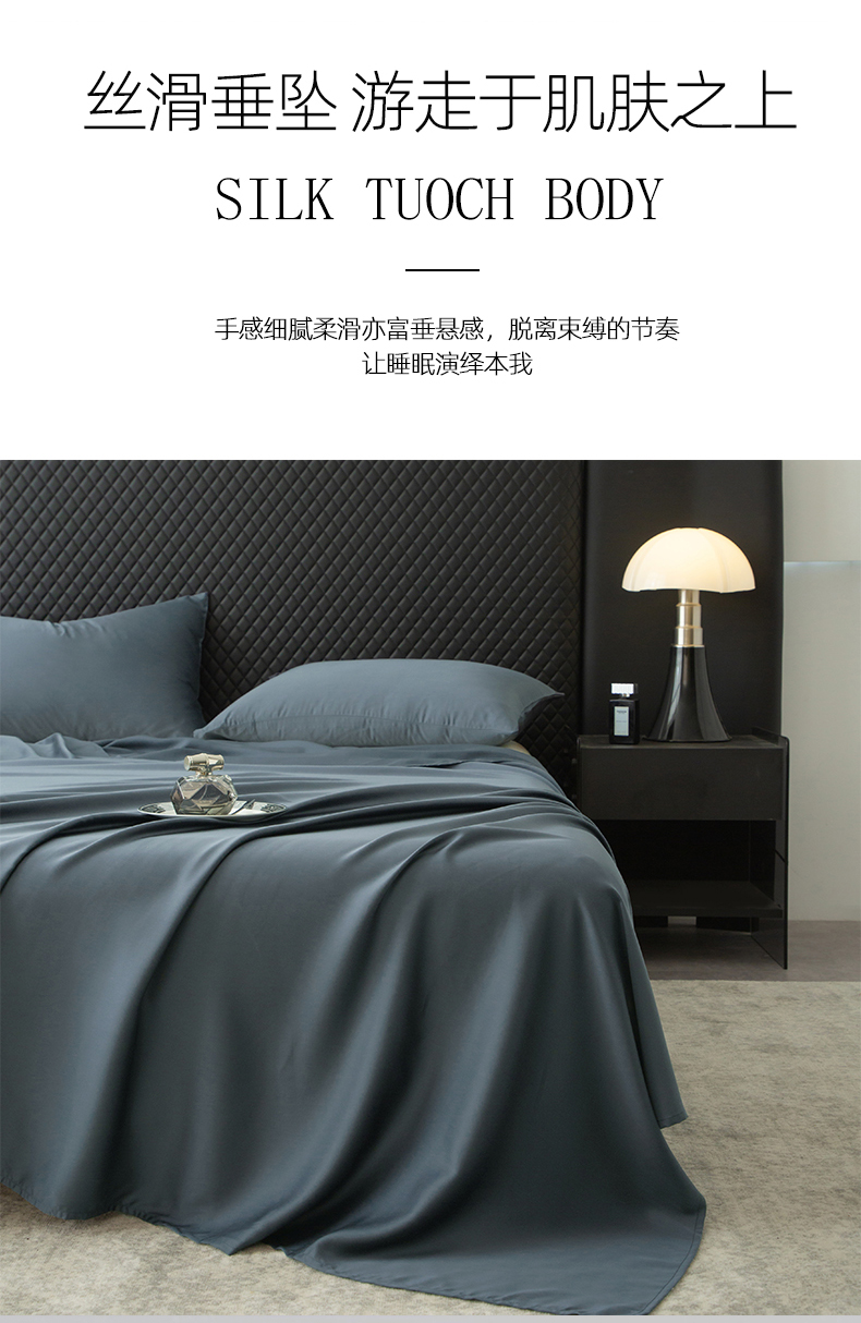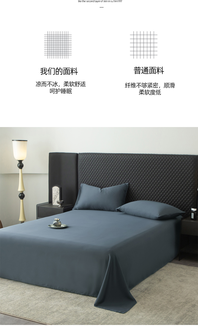 • 91家纺网 家纺一手货源 找家纺 简宜家居 2025新款60支兰精天丝单品床单 柔肌-蓝灰